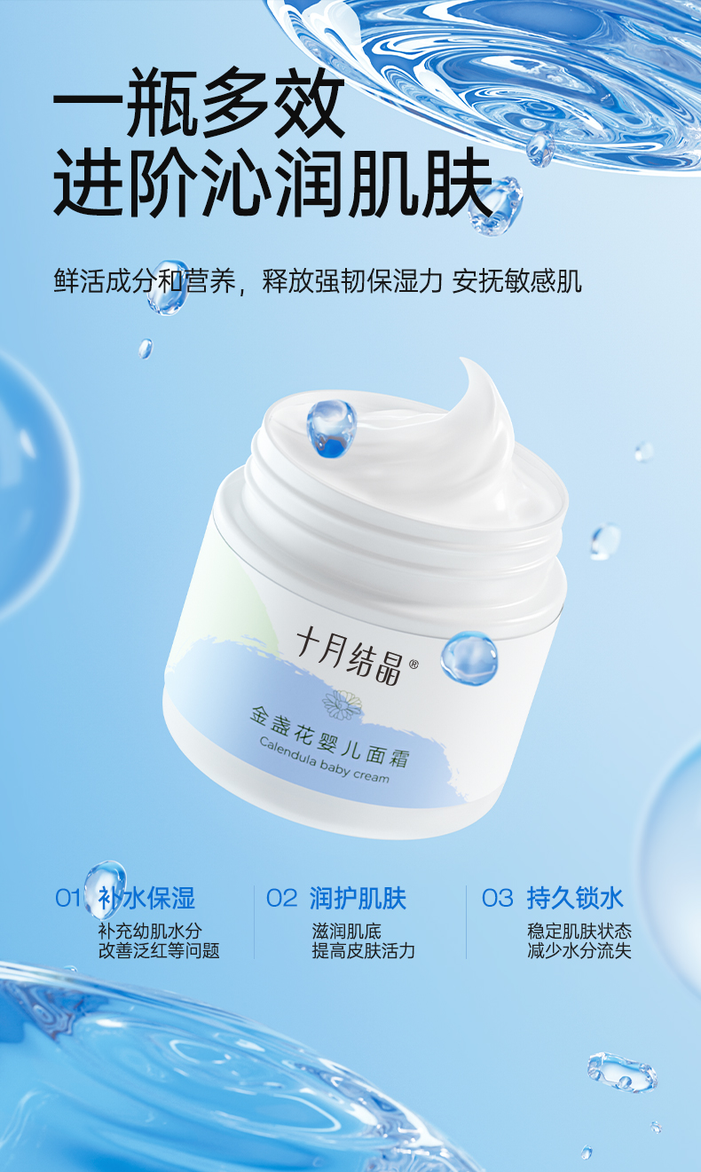 婴幼儿天然补水润肤金盏花面霜2瓶 赠【身体润肤露1瓶】