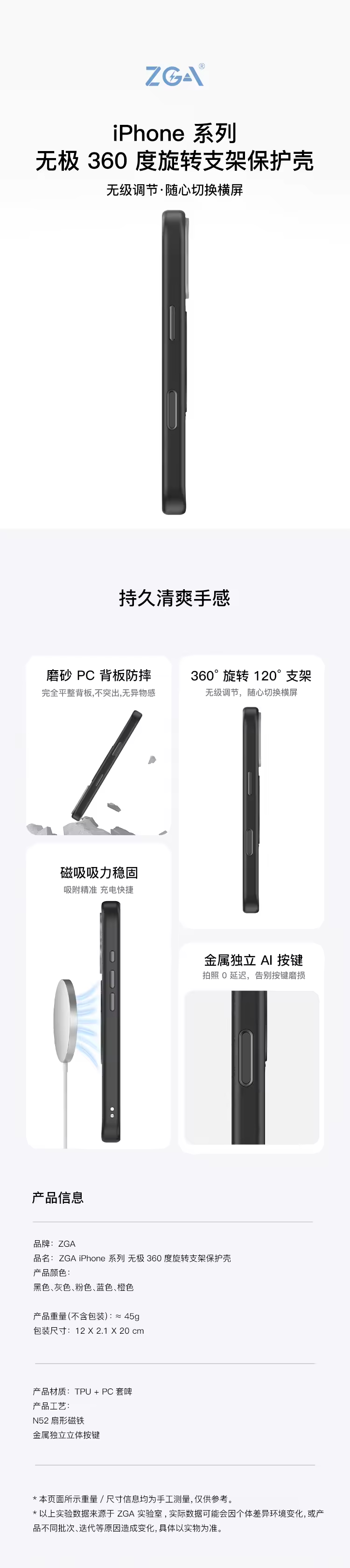 ZGA iPhone 系列 无极 360 度旋转支架保护壳-17 系列