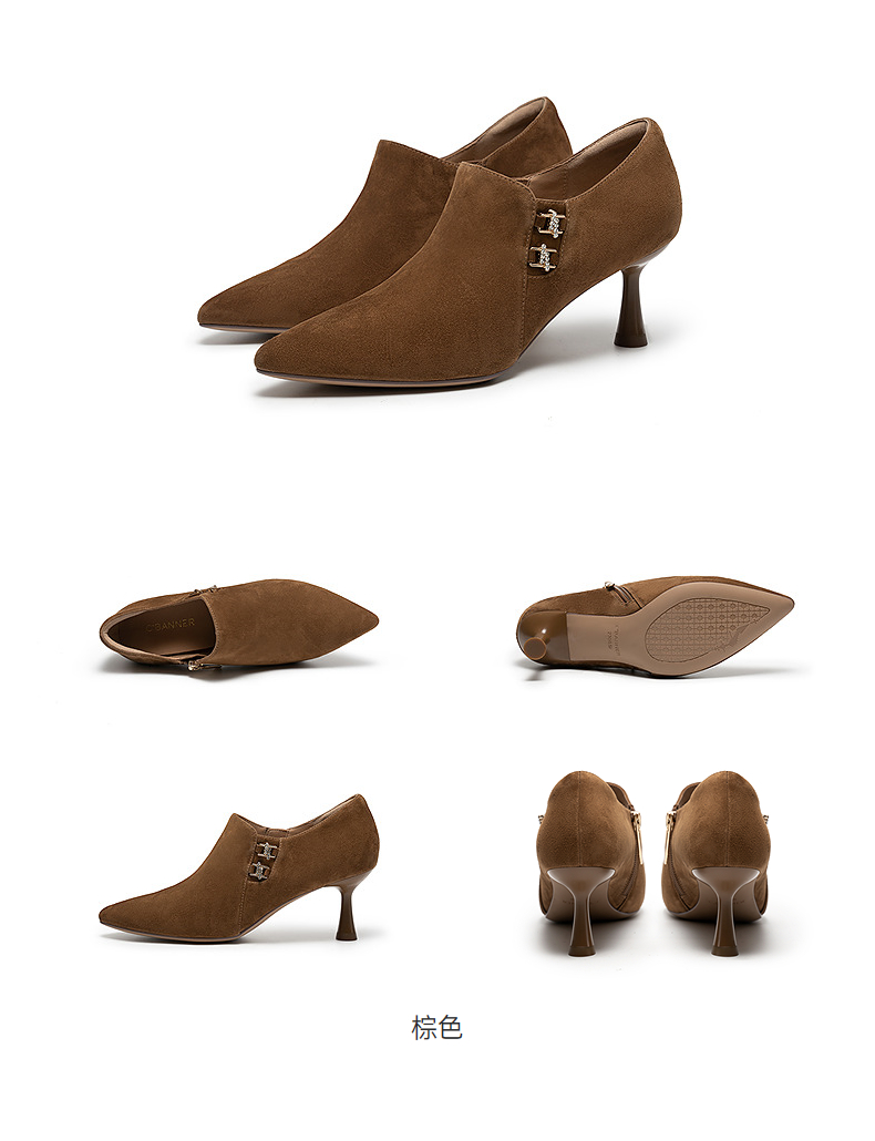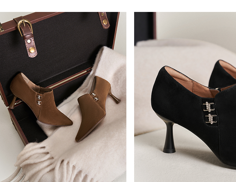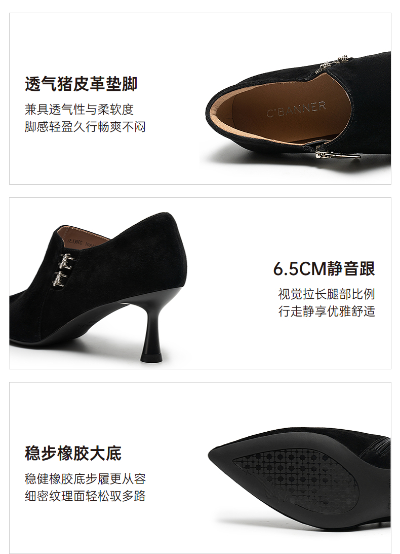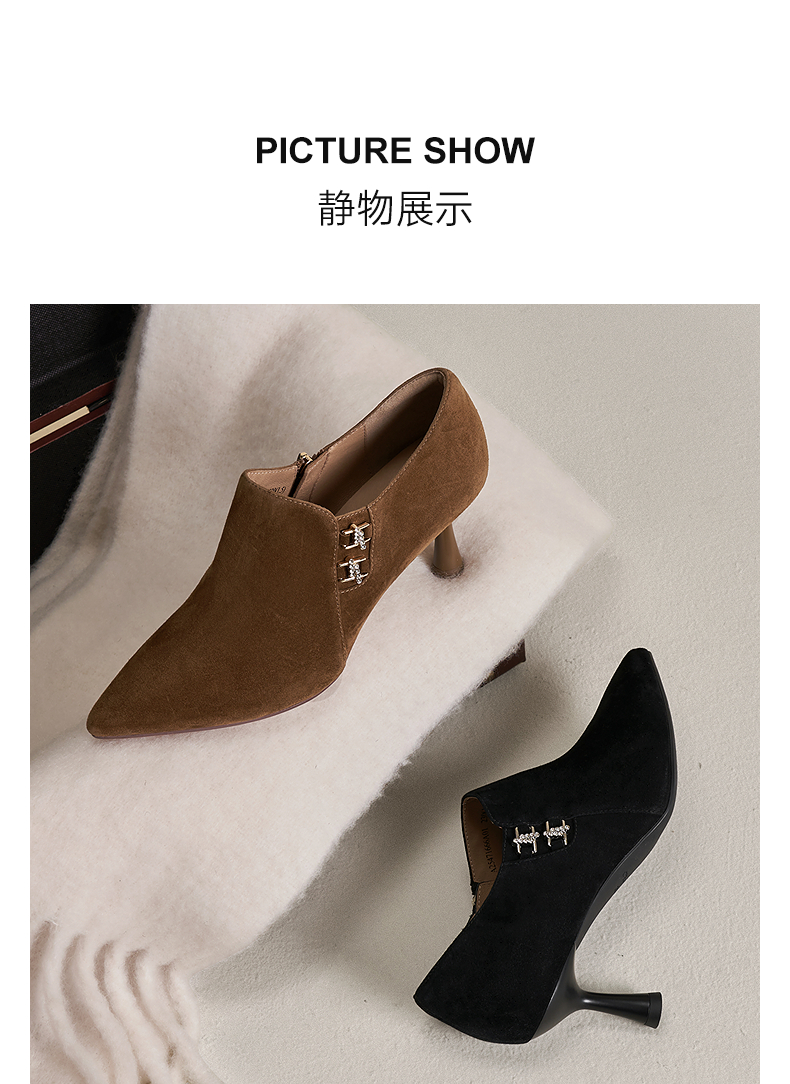 【静音系列】千百度细高跟时装靴女踝靴水钻扣饰短靴A25471666