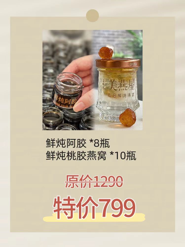 鲜炖阿胶8瓶+鲜炖桃胶燕窝10瓶 组合特价