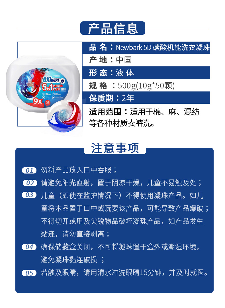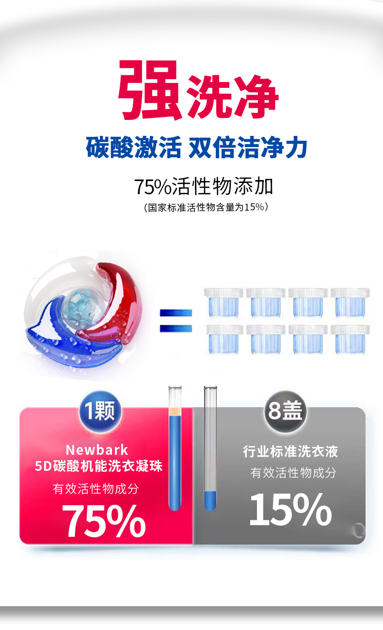 1颗解决洗衣难题!又香又干净 !Newbark 5D 碳酸机能洗衣凝珠 50颗/罐 多效除污除螨持久留香