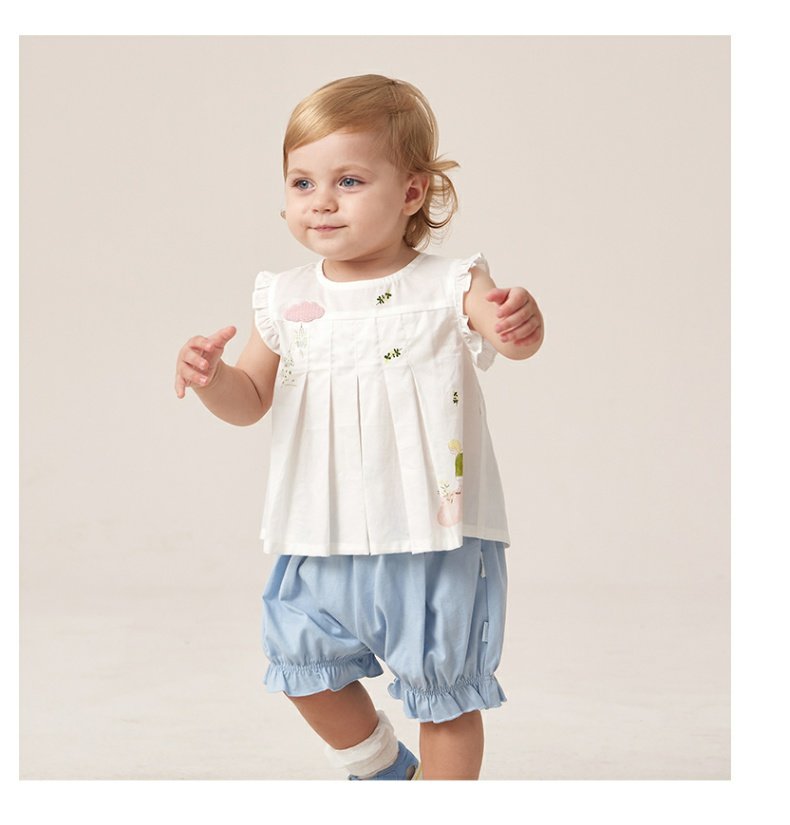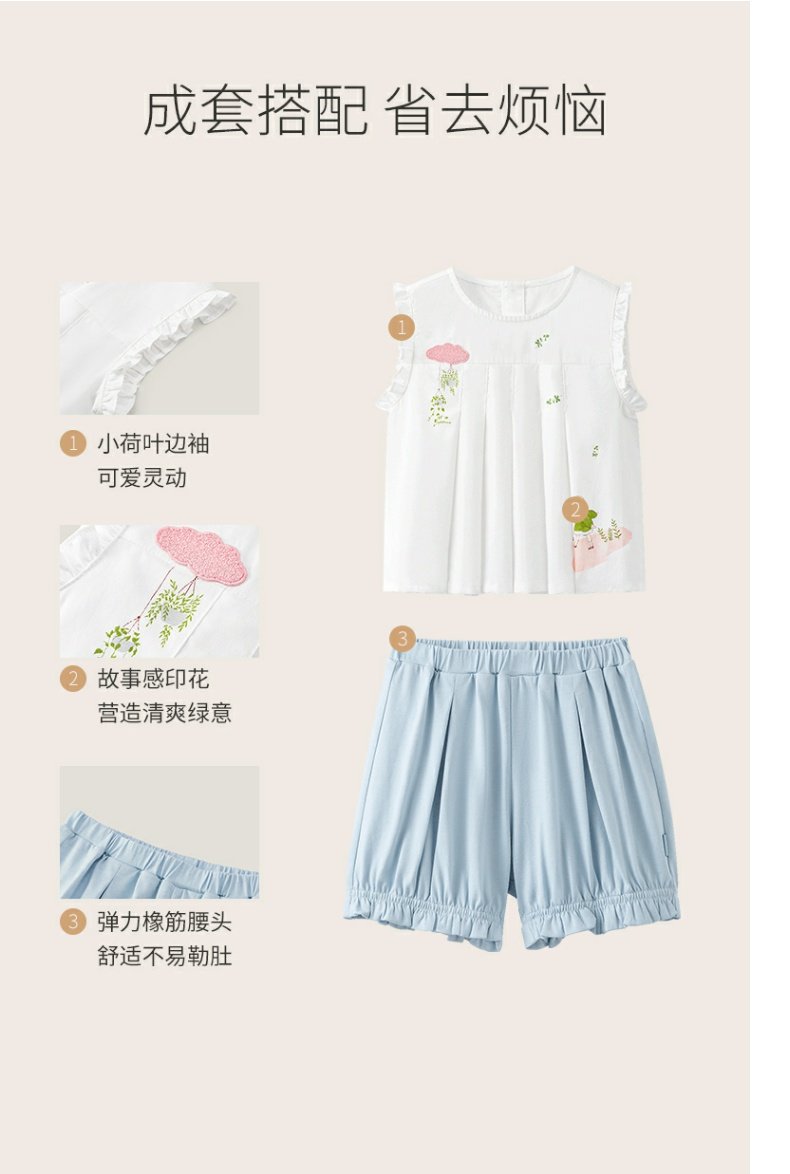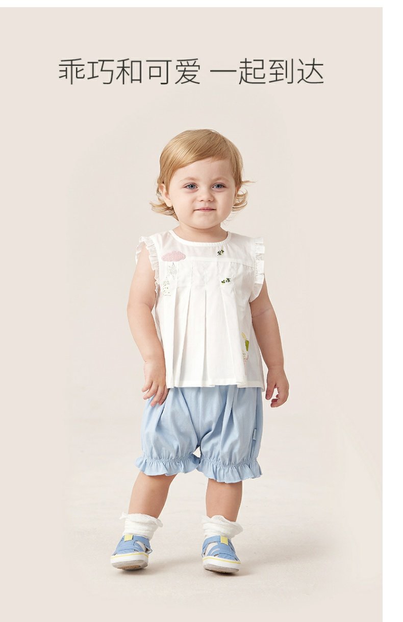英氏女童套装夏季新品无袖背心灯笼裤纯棉两件套YRABJ2P294A