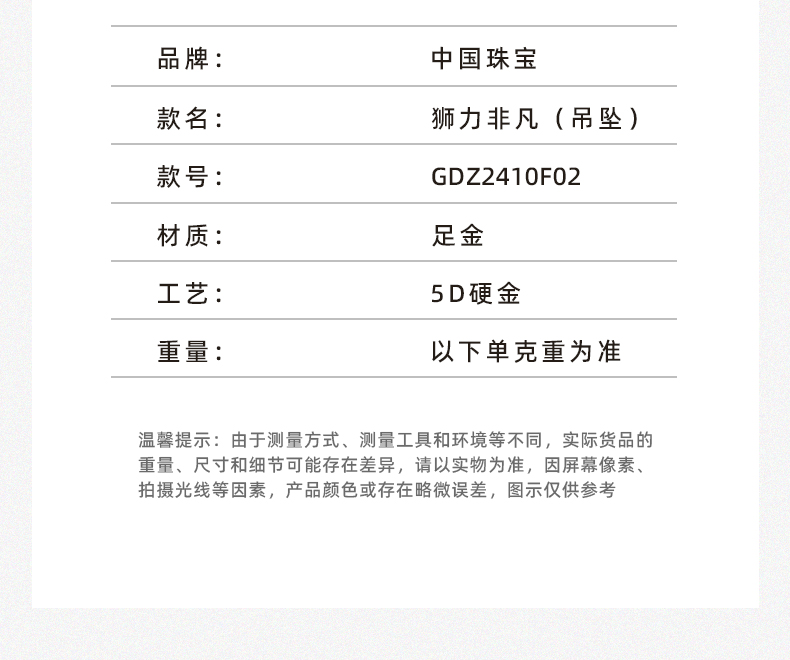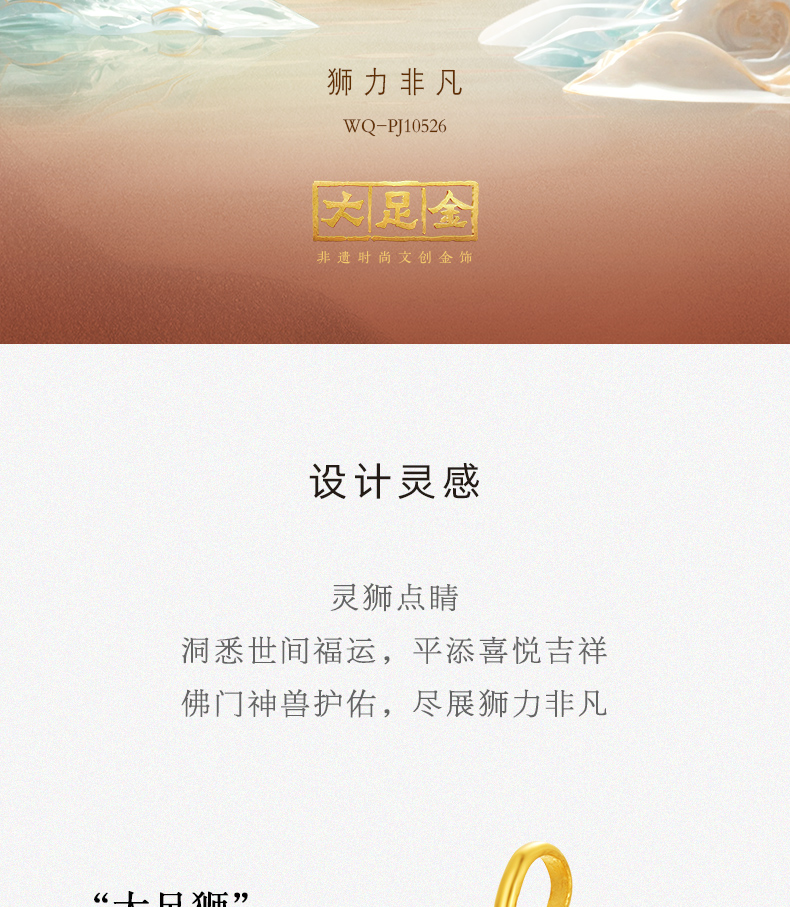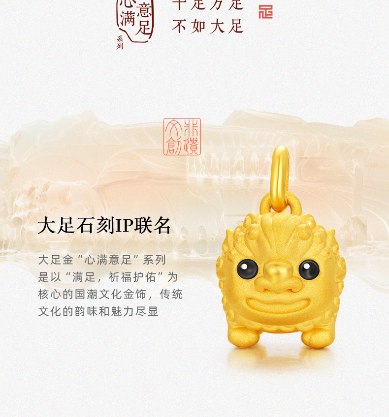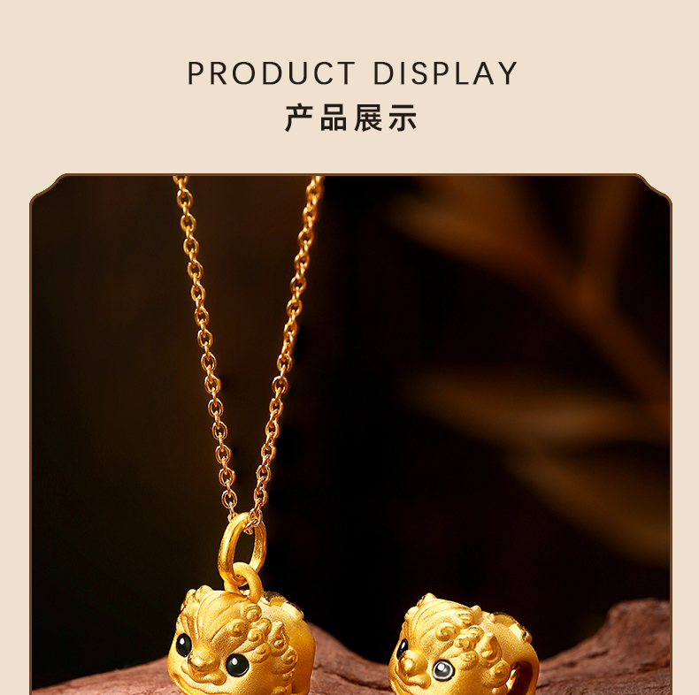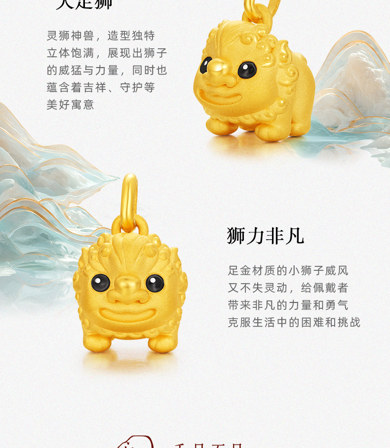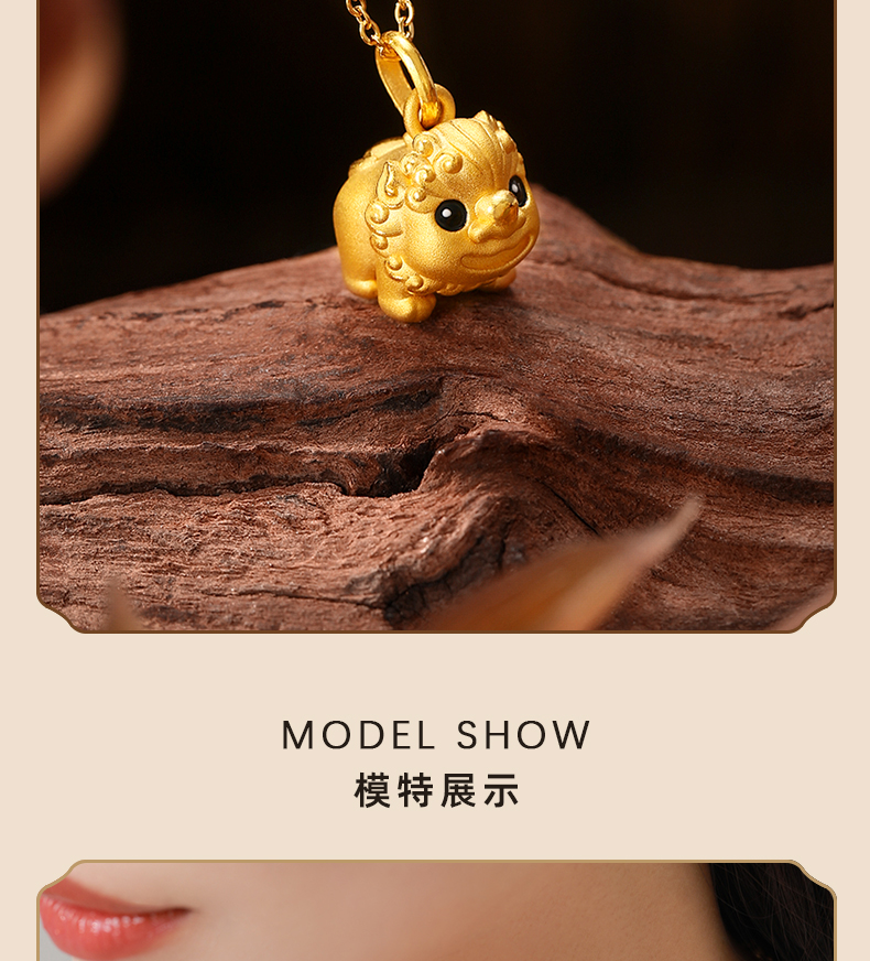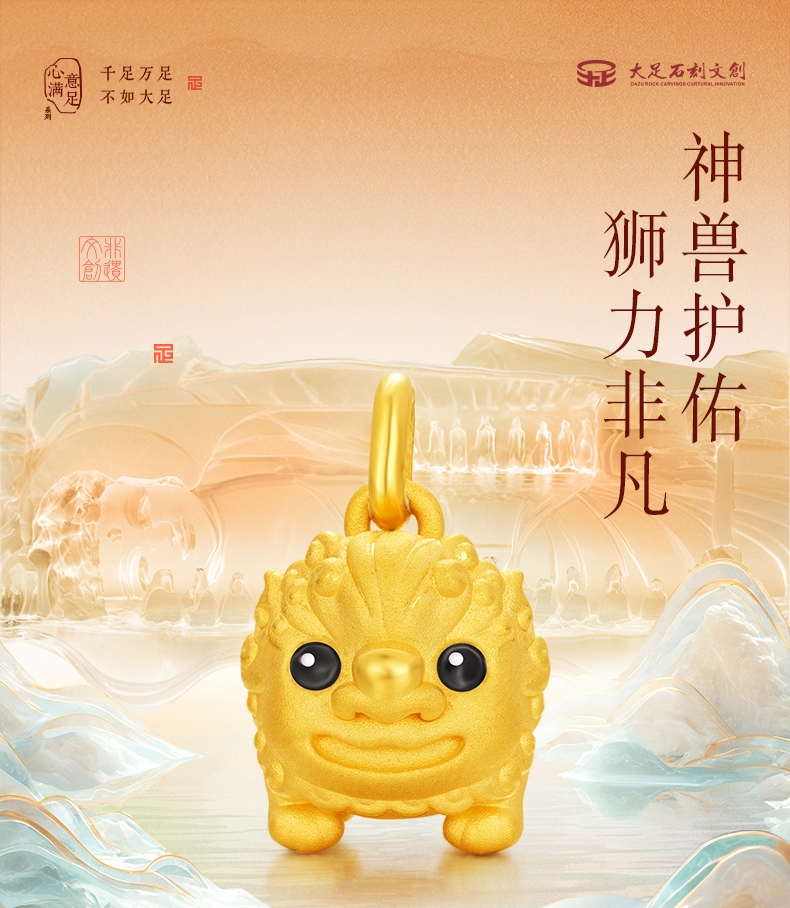 「大足石刻」黄金狮力非凡吊坠 小狮子5D硬金足金挂饰【Y】