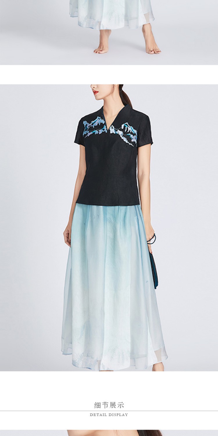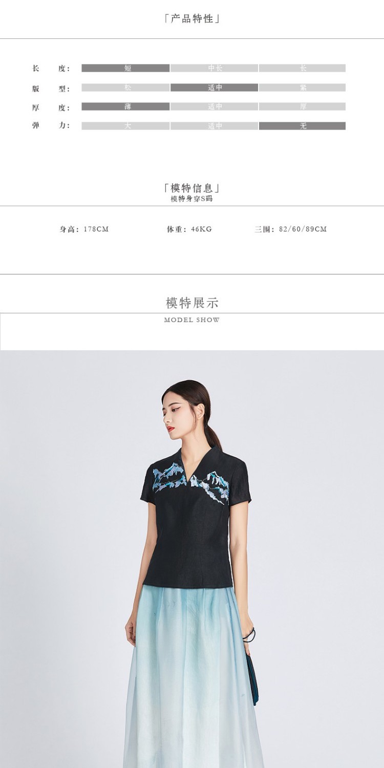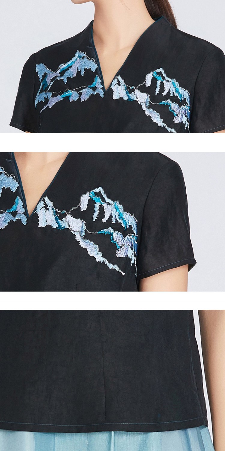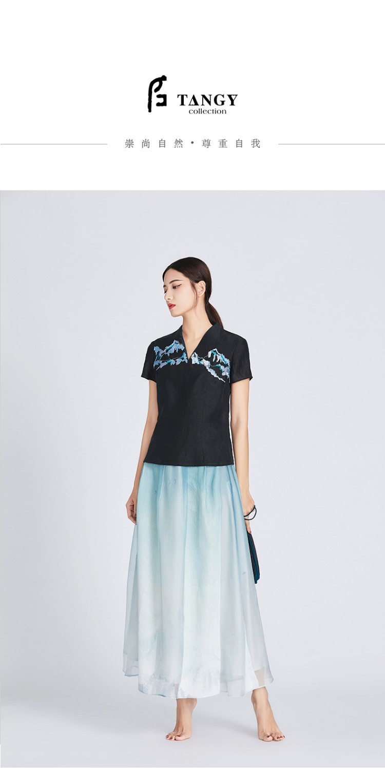 TANGY/天意雪傍系列莨绸绣花收腰上衣