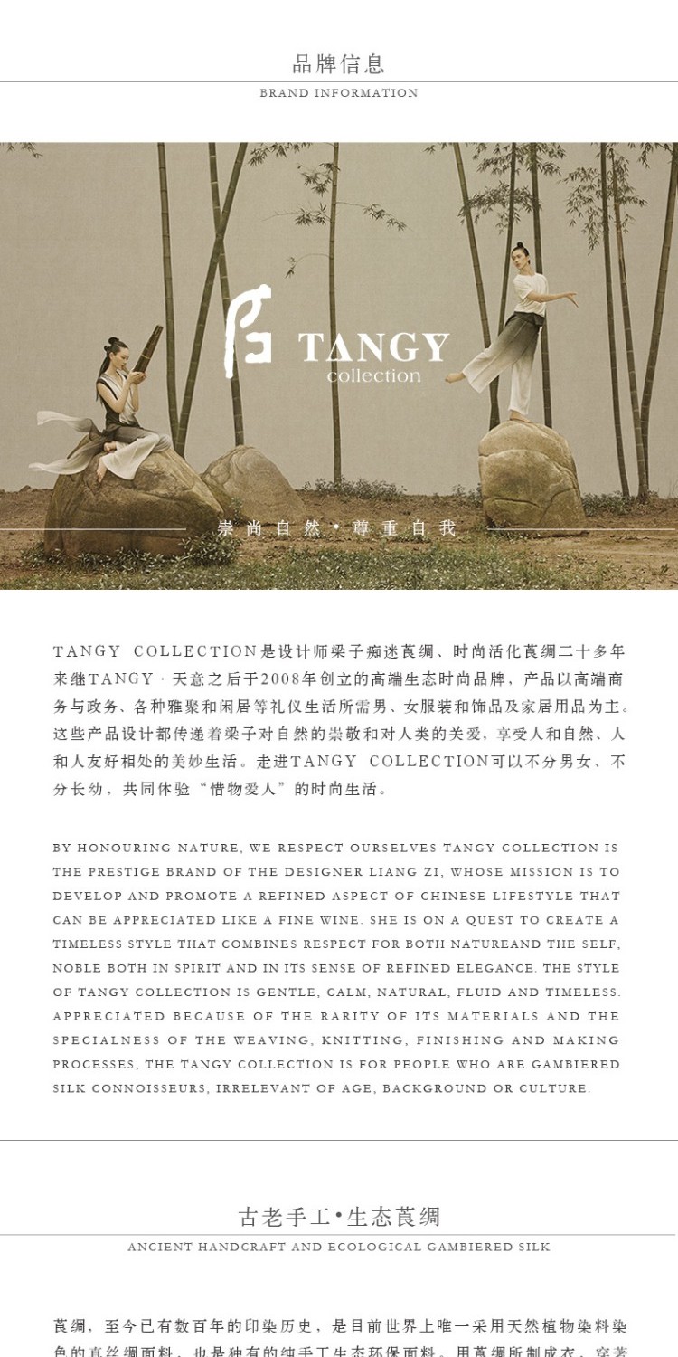 TANGY Collection/天意精品2021年秋冬新品真丝拼撞莨绸香云纱T恤