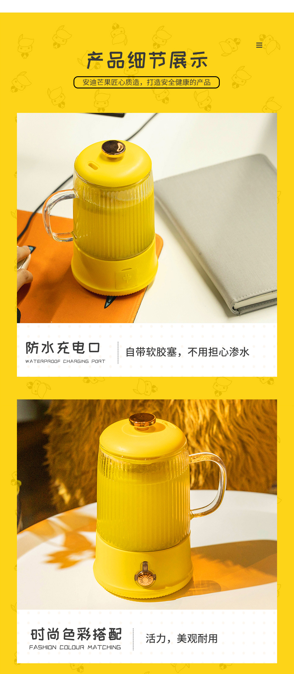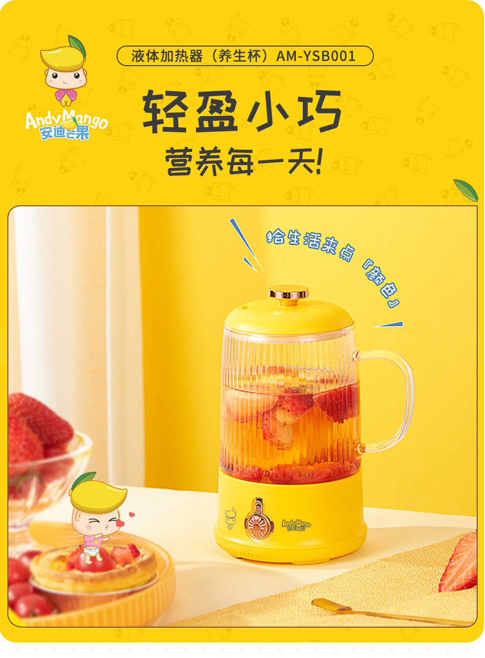 安迪芒果yMango养生杯玻璃炖盅迷你小容量养生壶保温杯迷你小容量养生壶 AM-YSB001