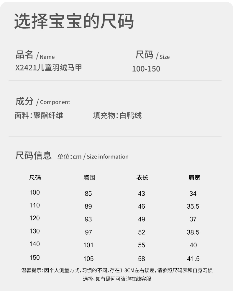 【亏清39.9元/件】2024秋冬新款儿童羽绒马甲洋气男童女童羽绒背心宝宝外穿马夹聚【任选商品需单独购买,不可跨链接合并付款⭐️