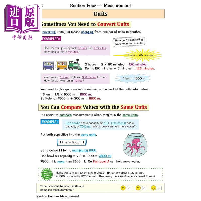 This friendly, colourful book explains every topic Key Stage Two pupils will cover in Year 4 (ages 8-9) . For each topic, there are clear study notes covering all the important skills, plus plenty of worked examples. Two pages of practice questions are included at the end of each section - these progress in difficulty to give pupils' understanding a thorough workout (answers are included at the back of the book).
