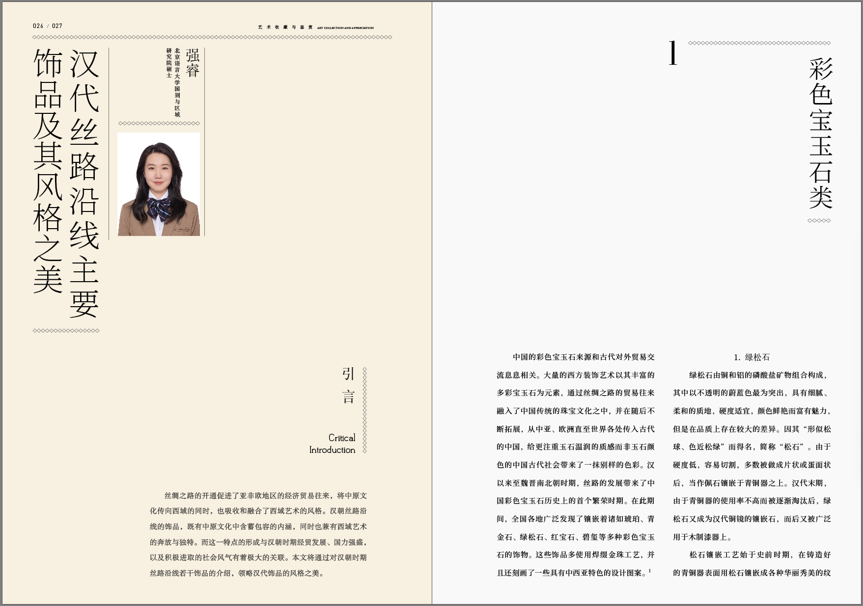 本期以“丝路艺术:交流与融汇”为主题,邀请国内外11位作者撰稿,另加笔者的1篇文字访谈,共12篇。作者队伍中既有资深的文博工作者,也有经验丰富的收藏家;既有献身于丝路艺术实践的画家,也有思维活跃的年轻学者,他们从自己的视角和经验出发,从不同的专业角度带领读者深入、细致地解读丝路艺术的丰富内涵,感受丝路艺术的鲜活生命力。遗憾的是,由于组稿时间仓促,丝路艺术交流的某些领域如钱币艺术、墓葬壁画、金属器制作等未囊括进来或涉及不多。当然,最令笔者遗憾的是珠宝艺术交流未能在本期反映出来。珠宝是文化中的文化,是艺术中的艺术,既是物质,也是文化,是“物质文化”的最典型载体,是富含多维历史信息的“时间胶囊”。
