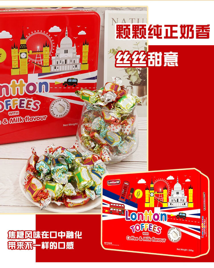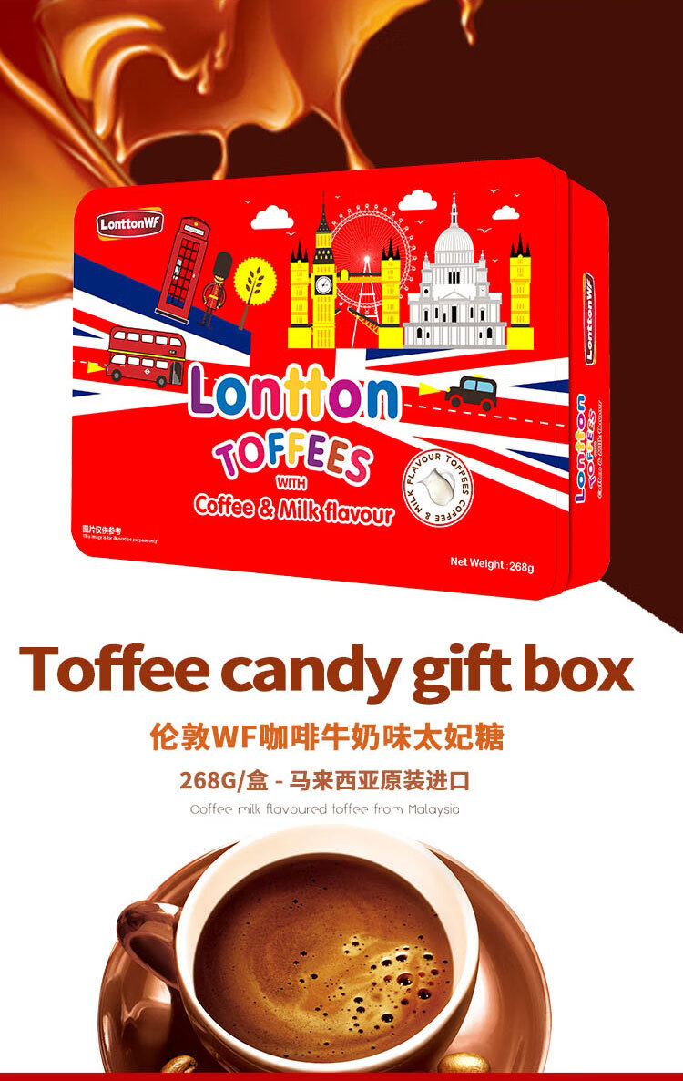 马来西亚伦敦WF铁盒装糖果268g 混合糖果/混合果味软糖/咖啡牛奶味太妃糖 好食材更美味 060430/060431/064013