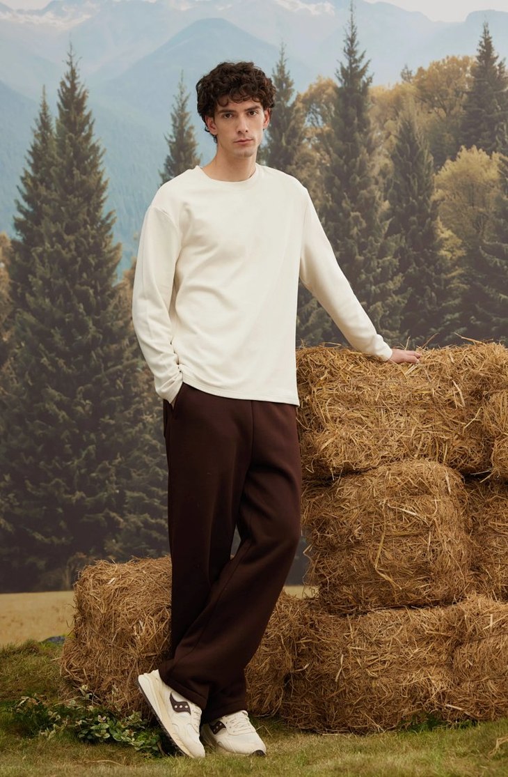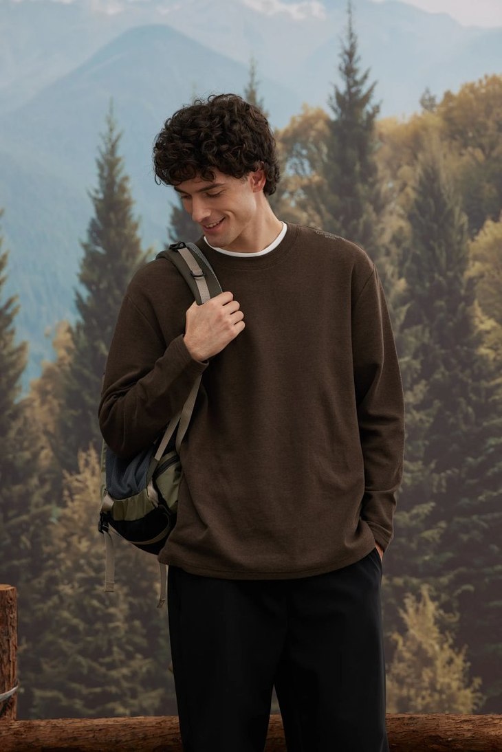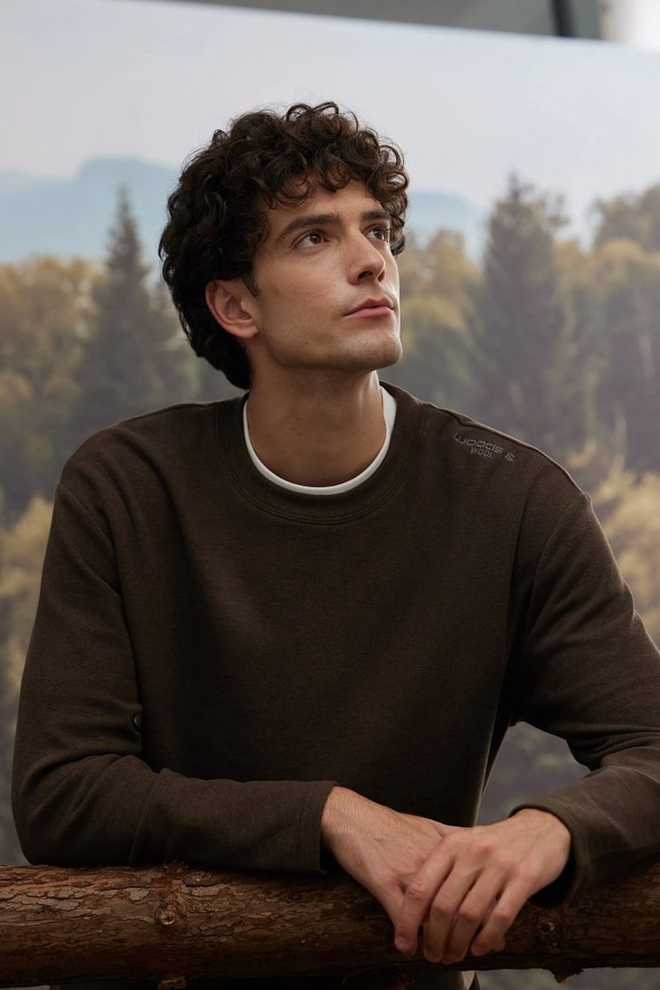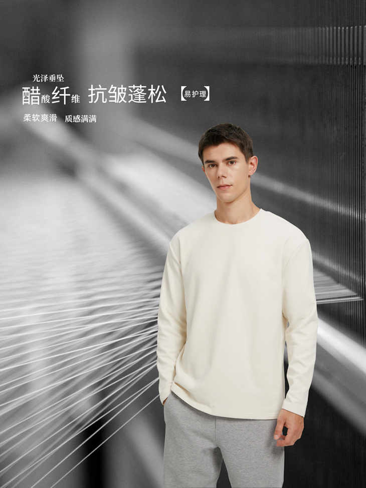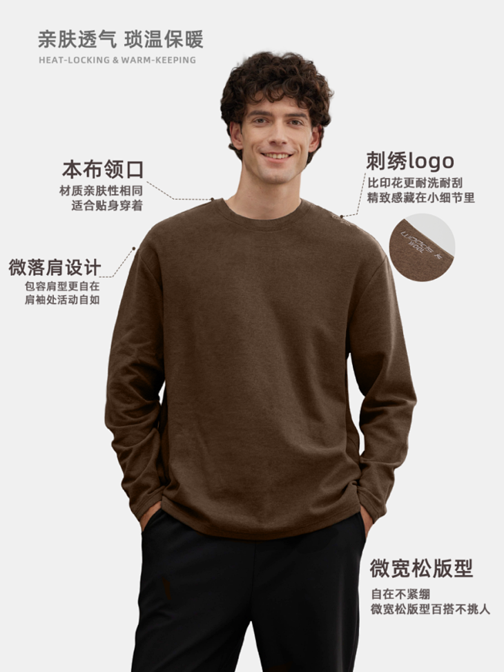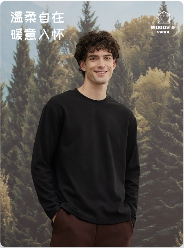 ² 清仓59元【男士维斯醋酸羊毛圆领长袖打底衫】加绒长袖T恤 双面绒感基础百搭 HM02-CRMM-MJN