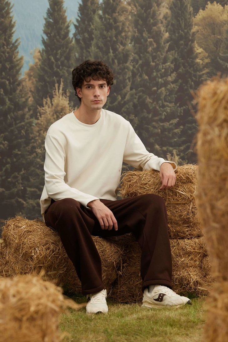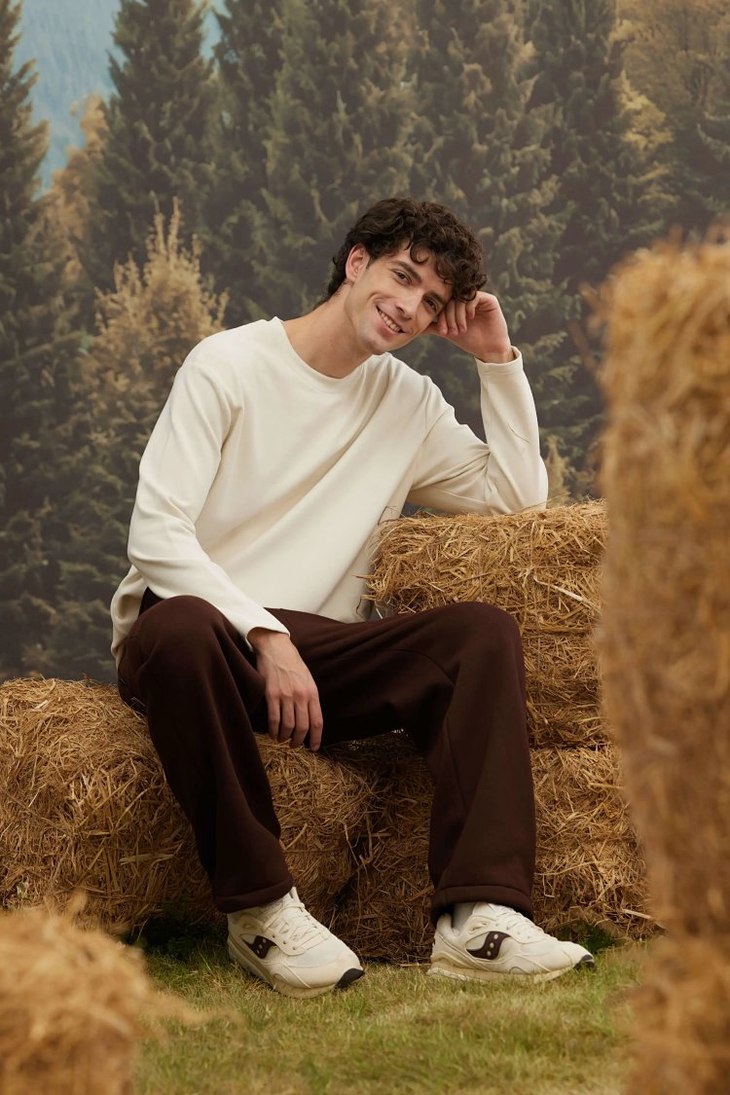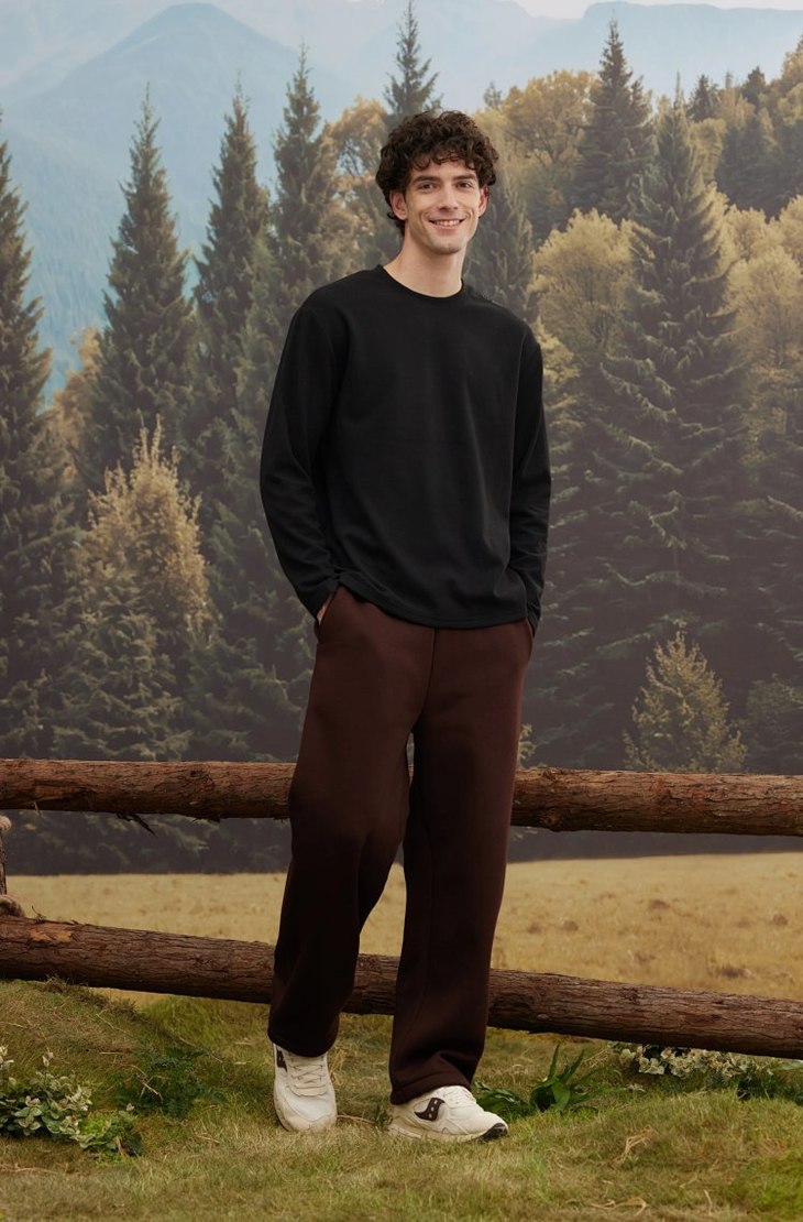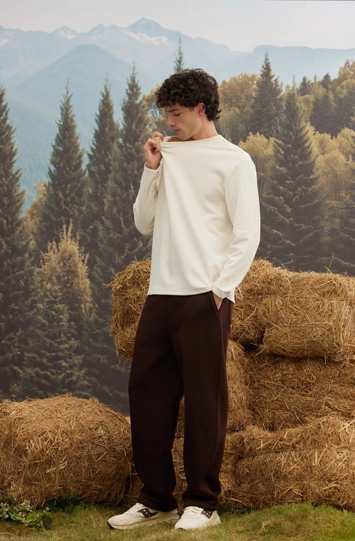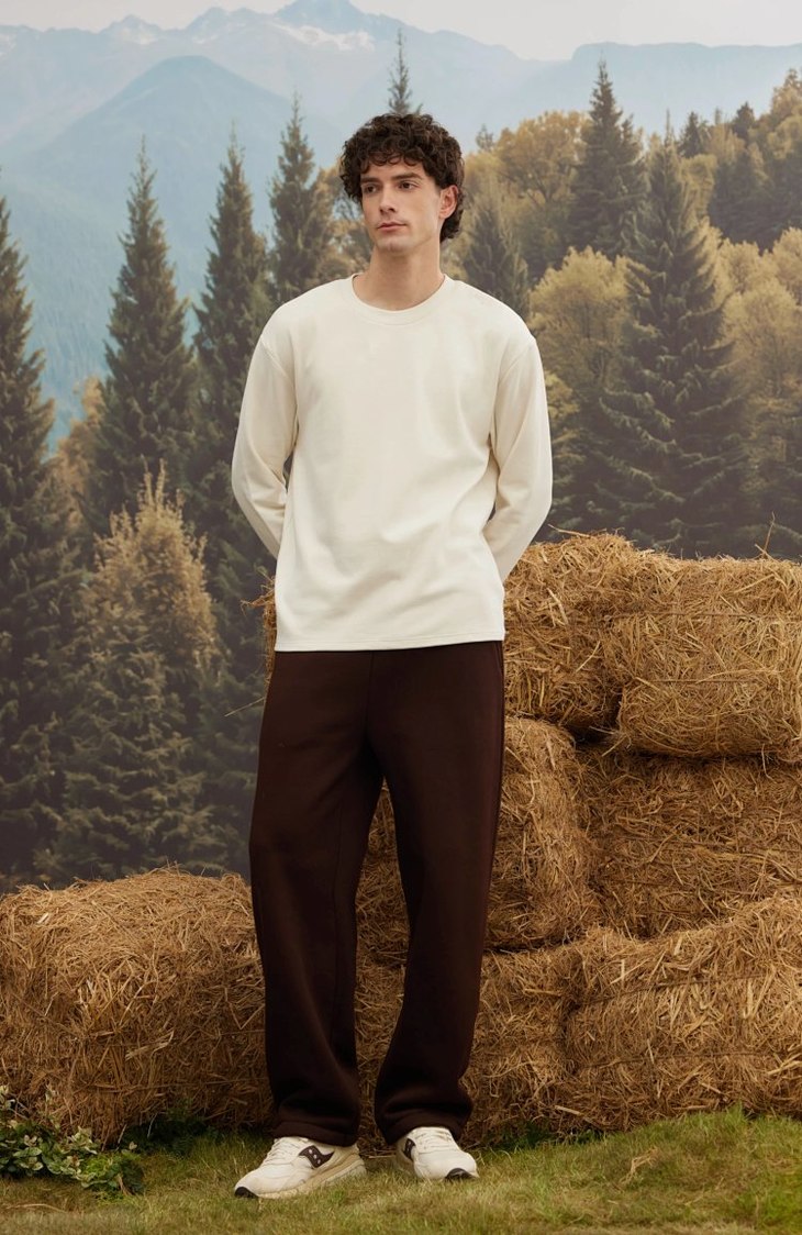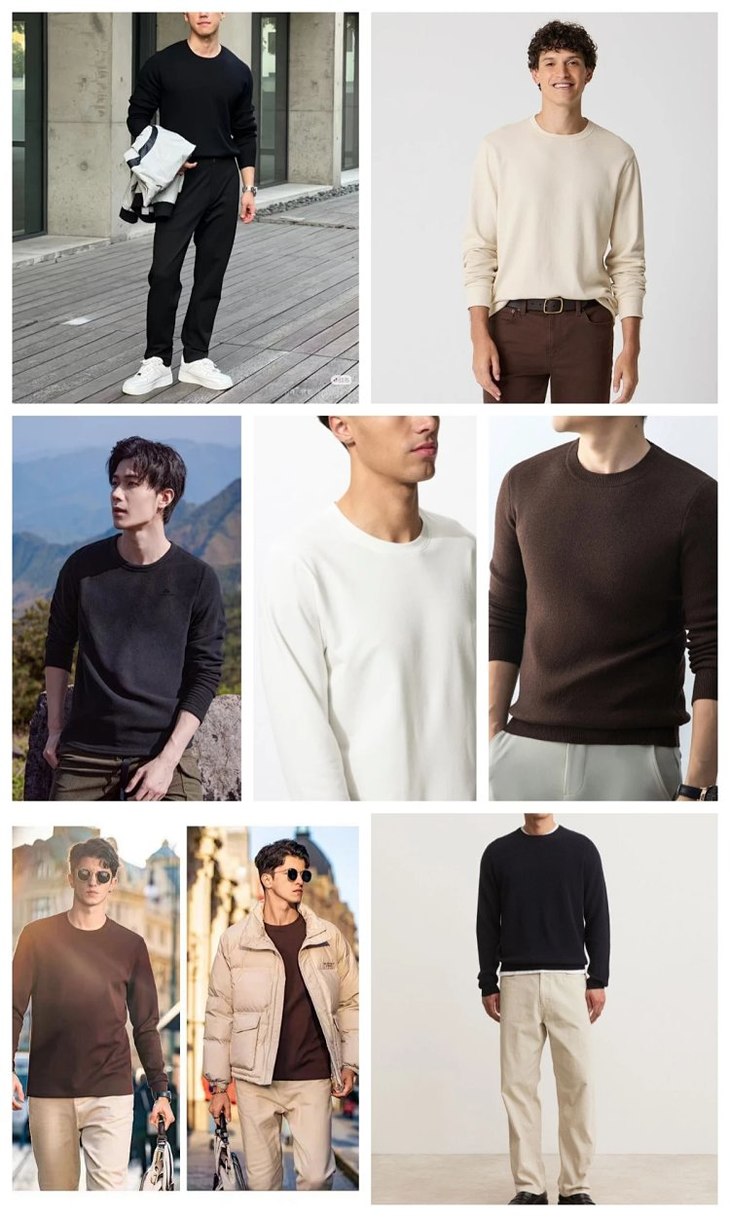 ² 清仓59元【男士维斯醋酸羊毛圆领长袖打底衫】加绒长袖T恤 双面绒感基础百搭 HM02-CRMM-MJN
