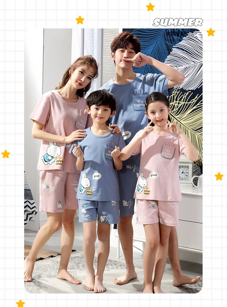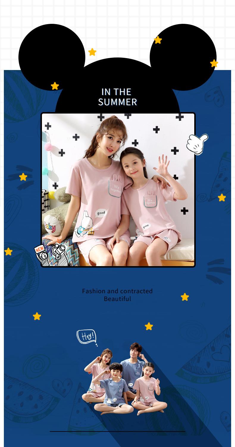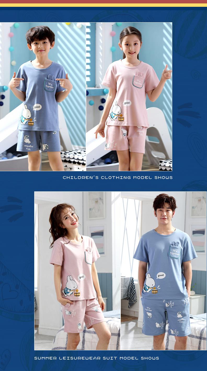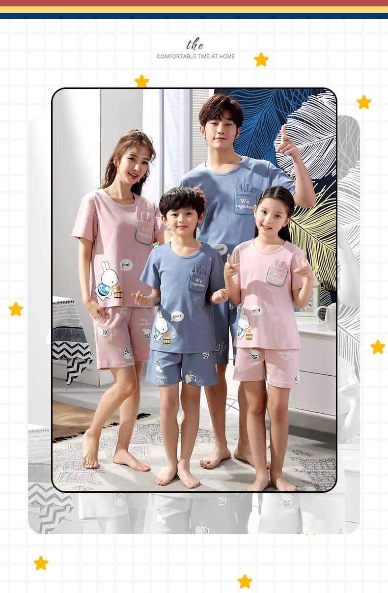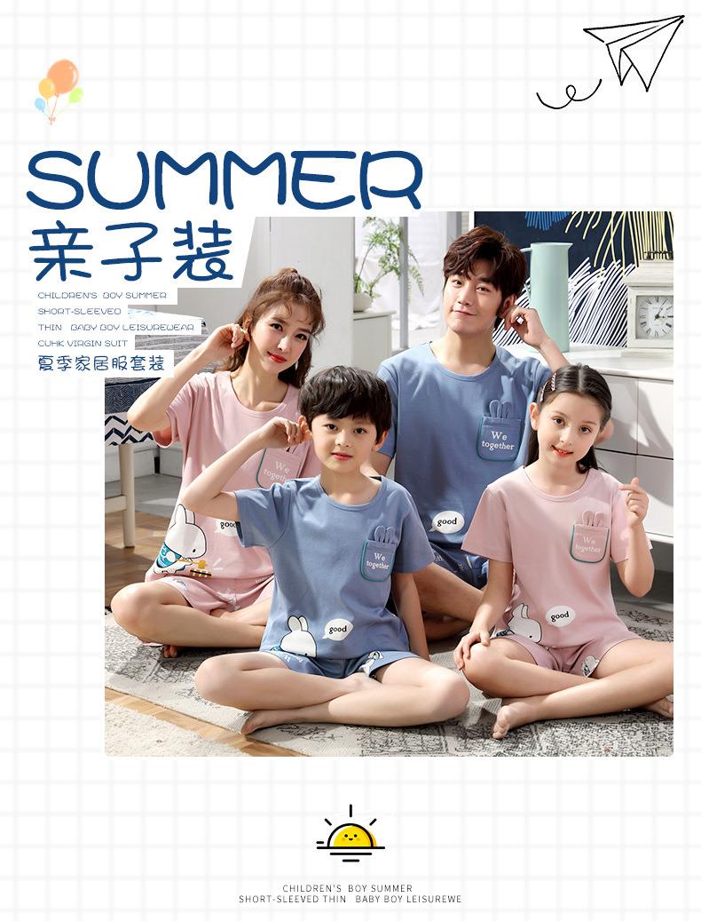 亲子睡衣夏季短袖纯棉薄款一家三口家庭装男孩女童睡衣儿童家居服