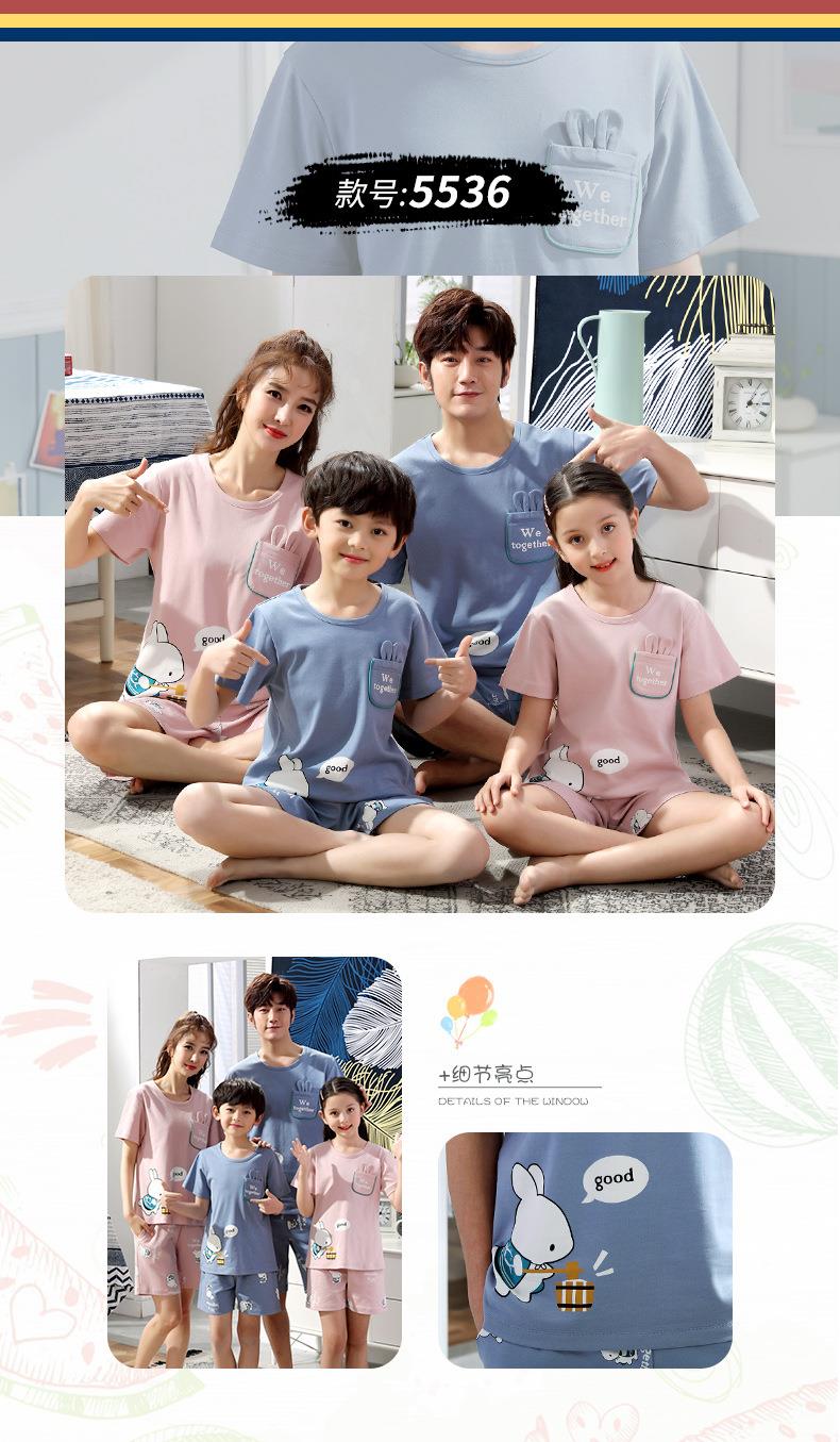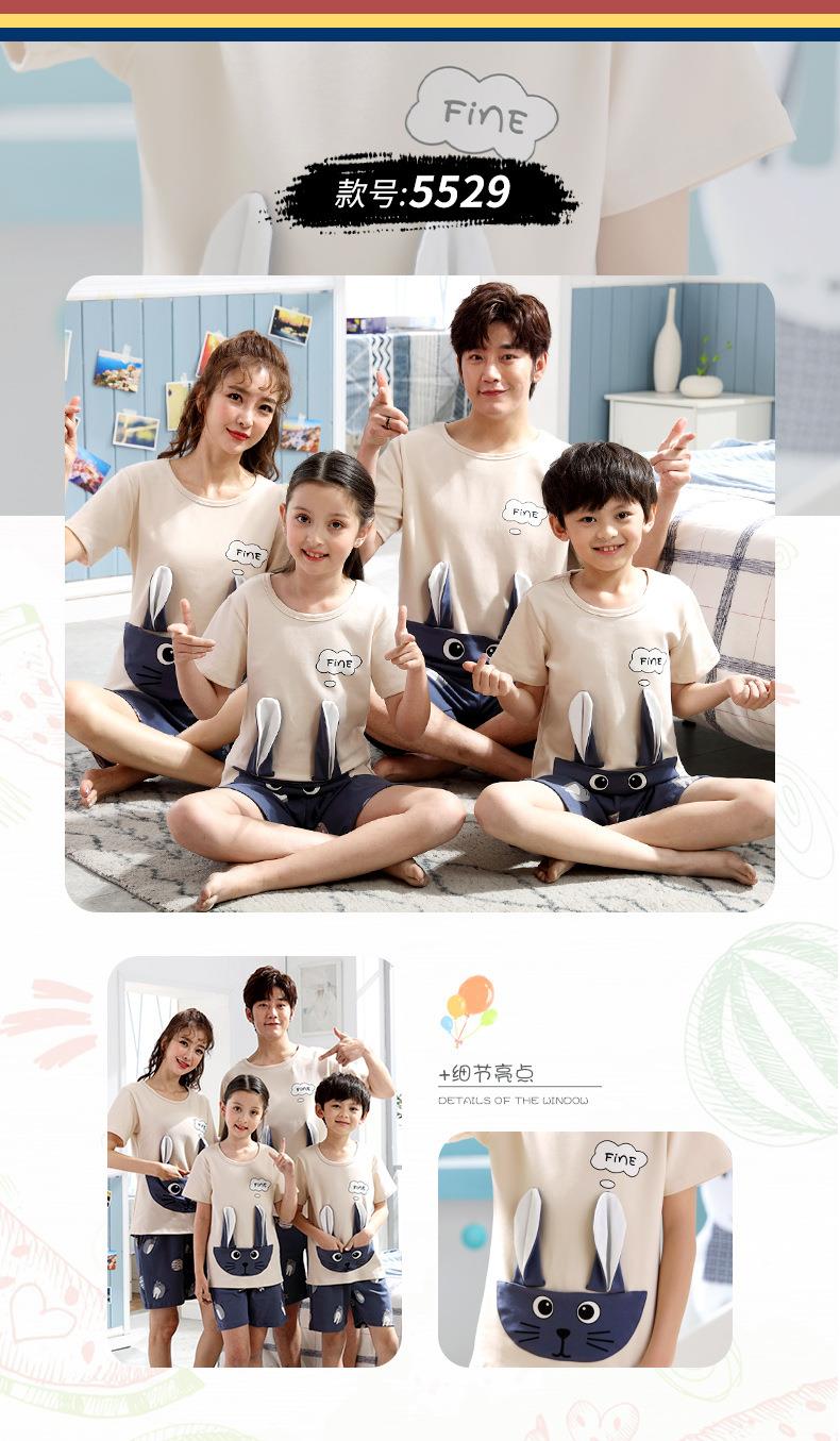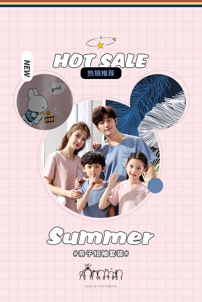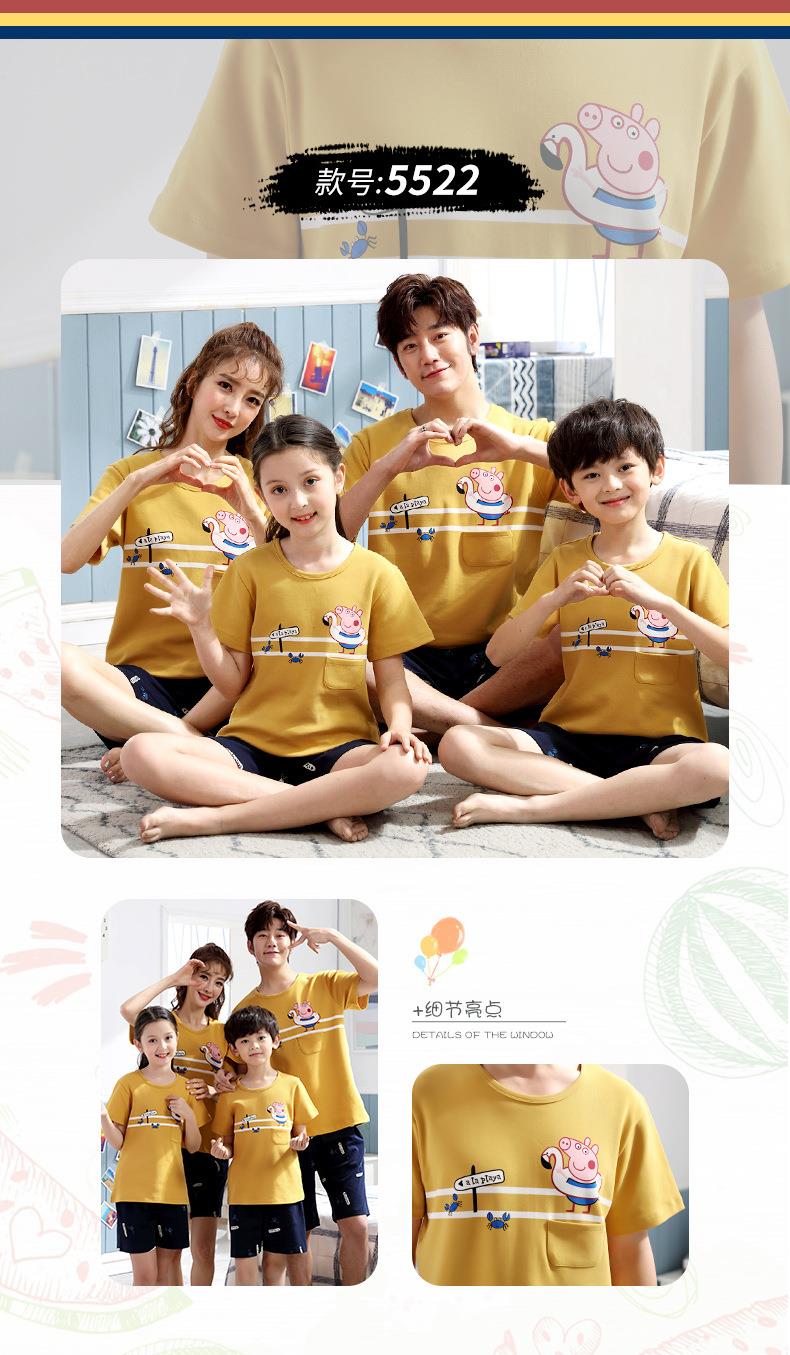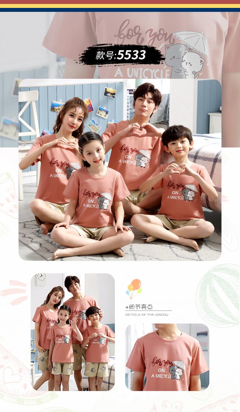 亲子睡衣夏季短袖纯棉薄款一家三口家庭装男孩女童睡衣儿童家居服