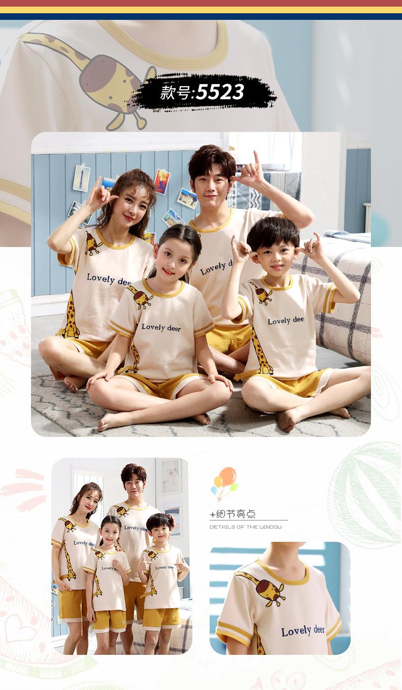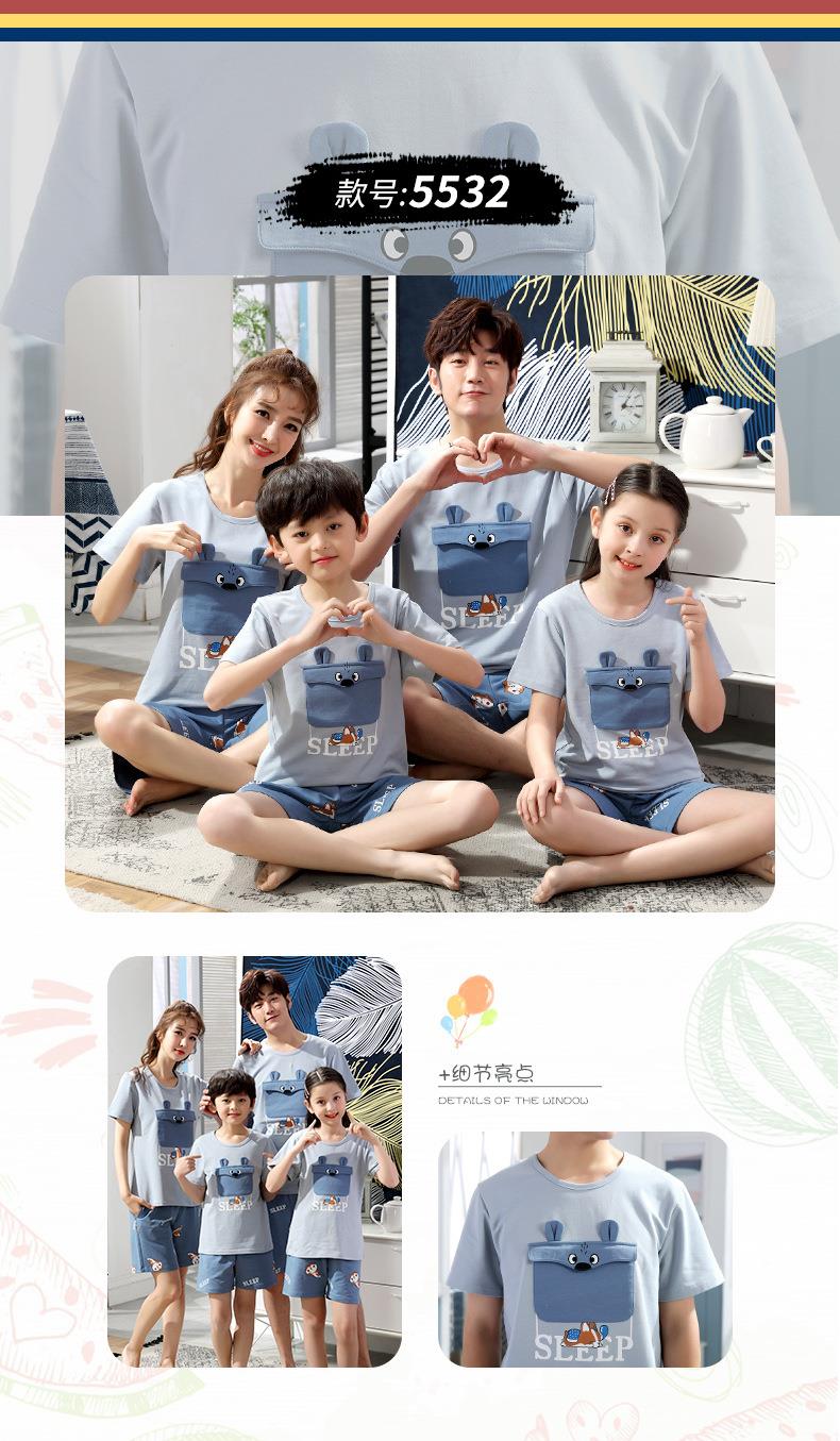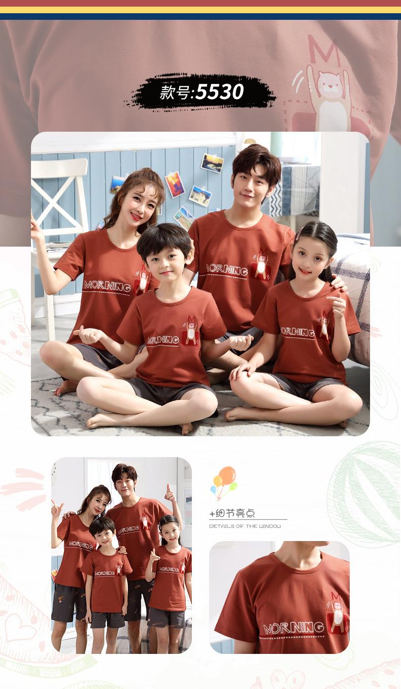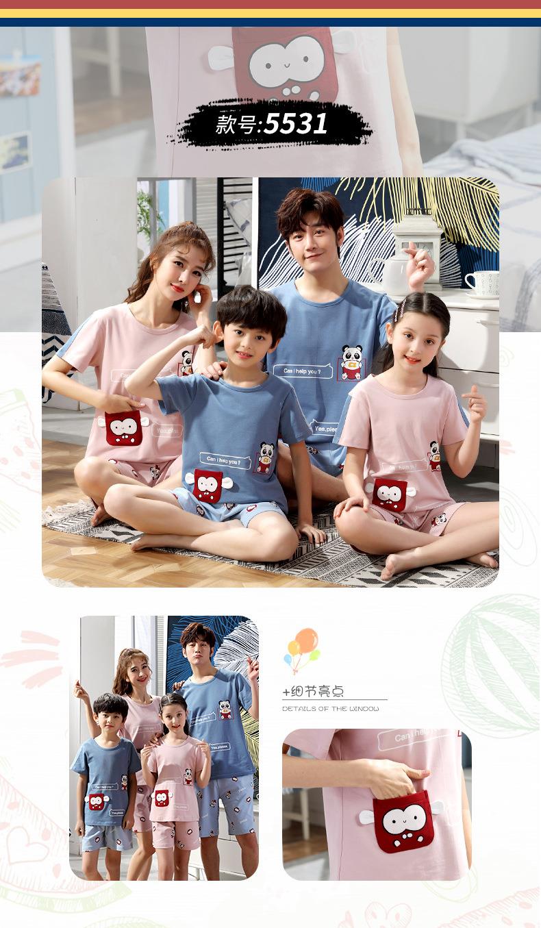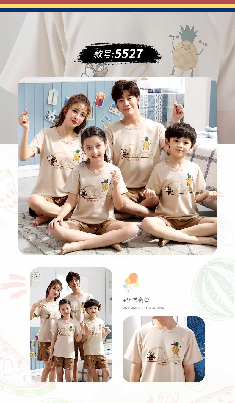 亲子睡衣夏季短袖纯棉薄款一家三口家庭装男孩女童睡衣儿童家居服