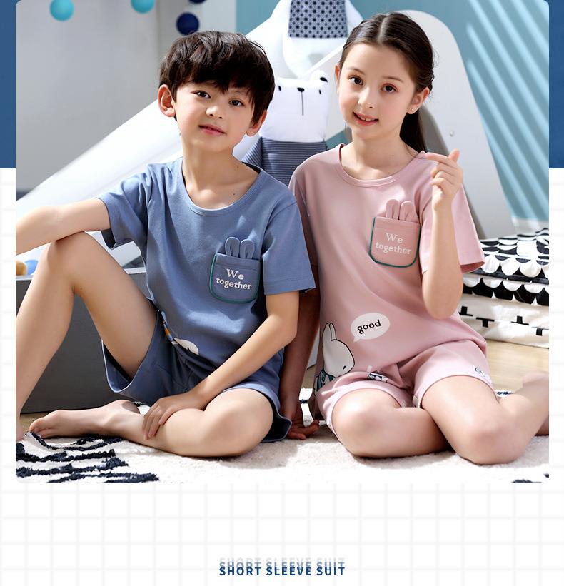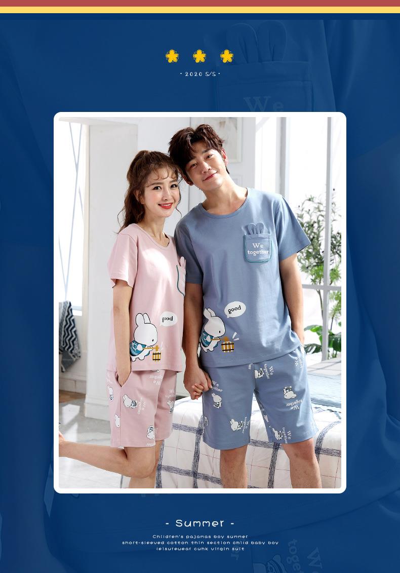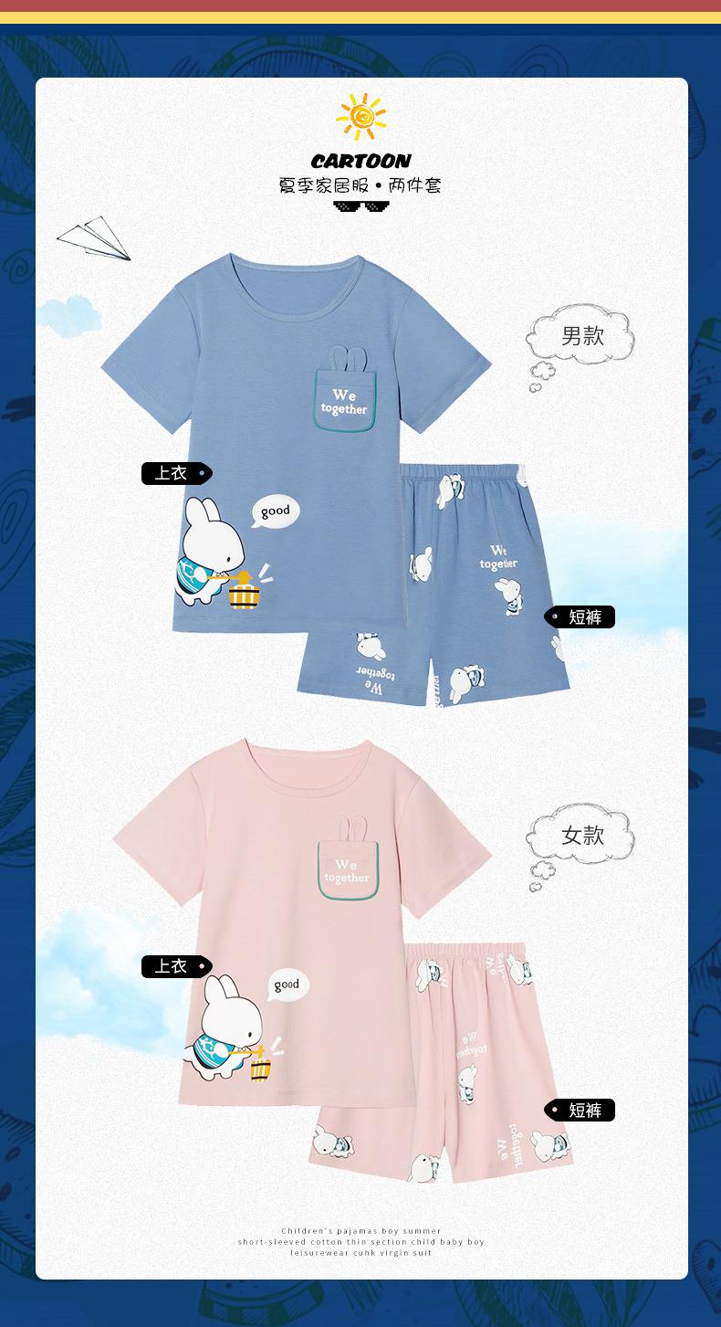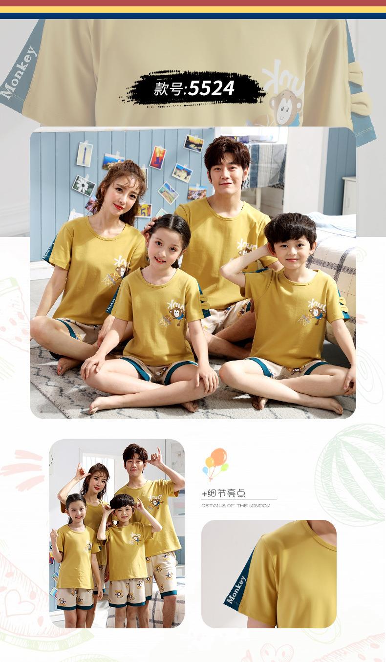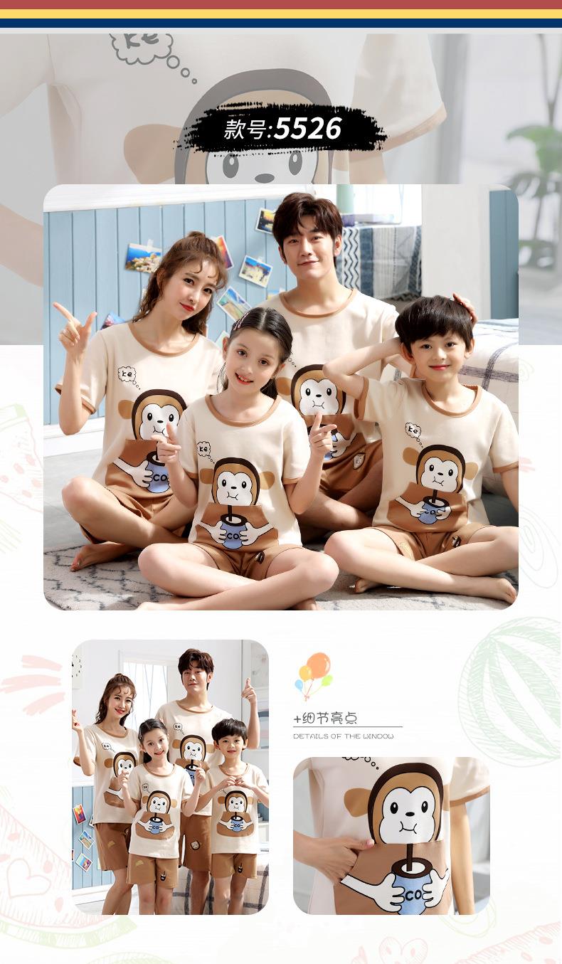 亲子睡衣夏季短袖纯棉薄款一家三口家庭装男孩女童睡衣儿童家居服
