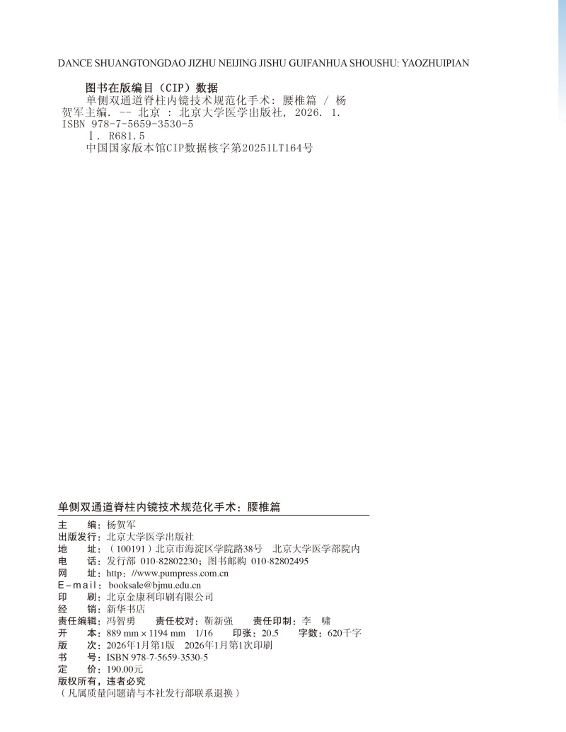 单侧双通道脊柱内镜技术规范化手术:腰椎篇 杨贺军 系统构建标准化操作体系 融合真实病例经验与精准影响解析 北京大学医学出版社