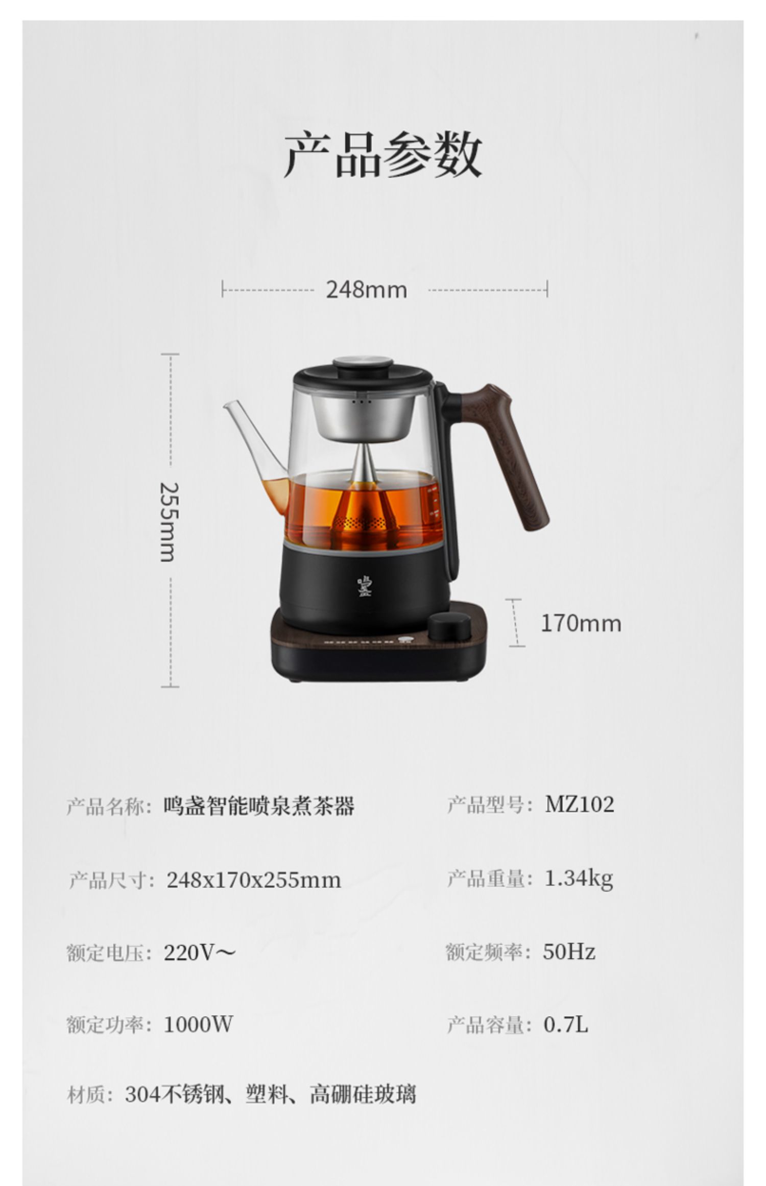 鸣盏智能喷泉煮茶器MZ102【伊藤优选301692】