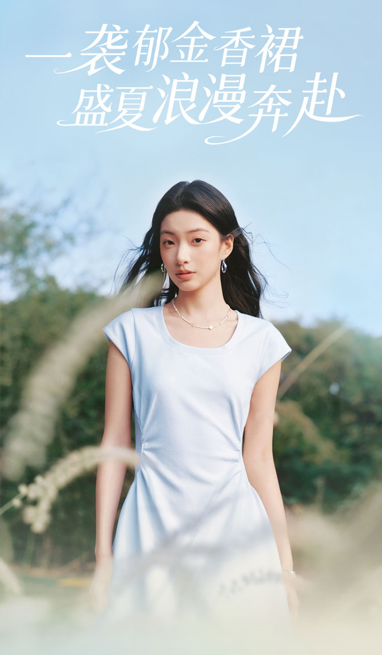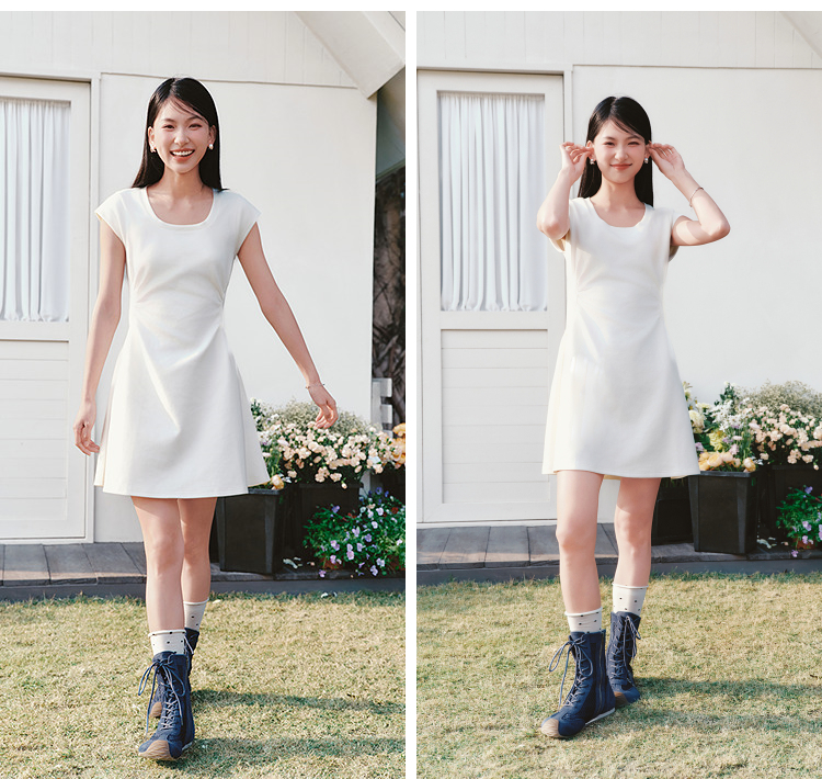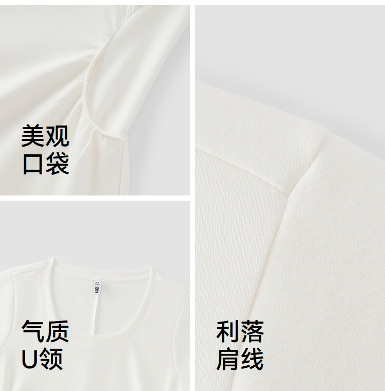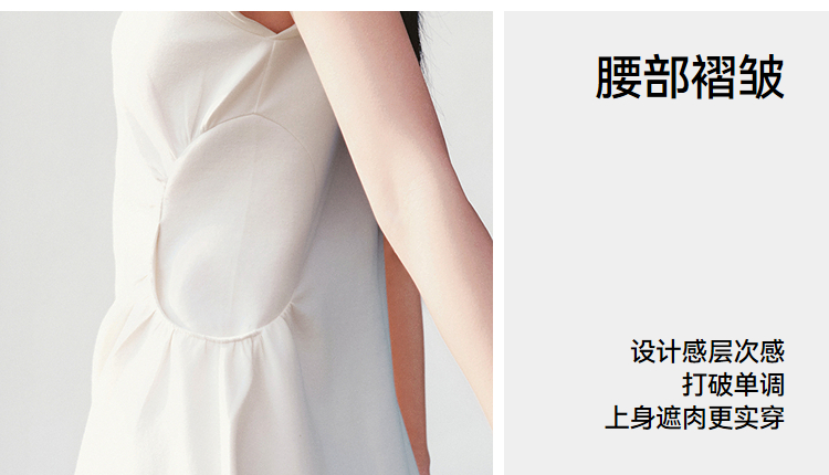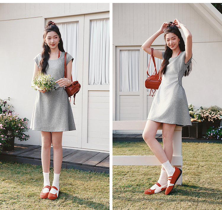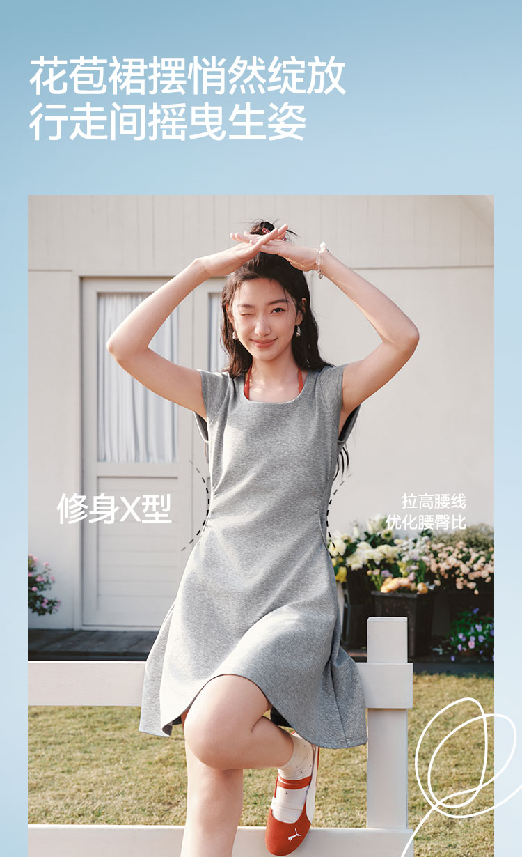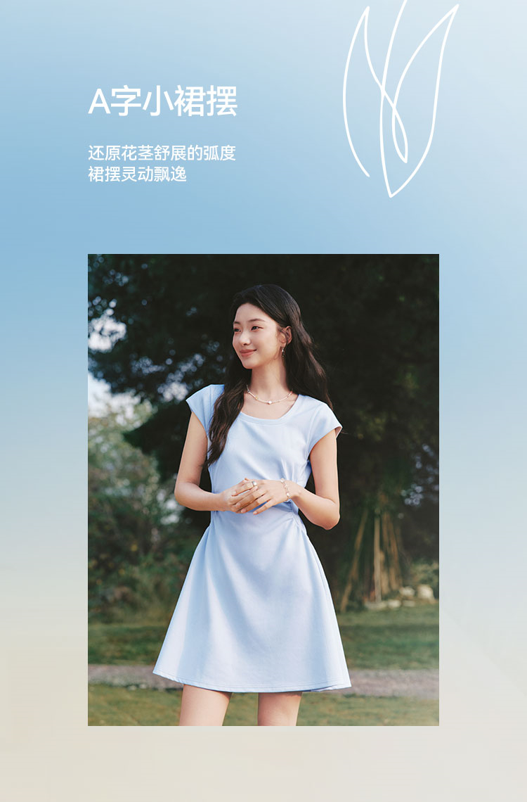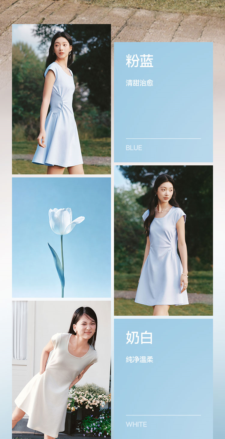 森马连衣裙女夏季U领纯色褶皱短袖短裙2026新款简约风设计感裙子