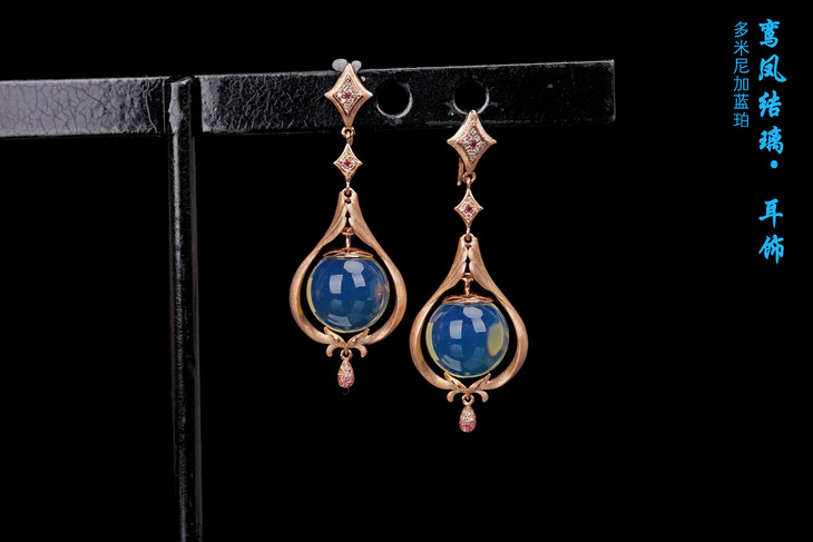 品名:鸾凤结缡·蓝珀耳饰