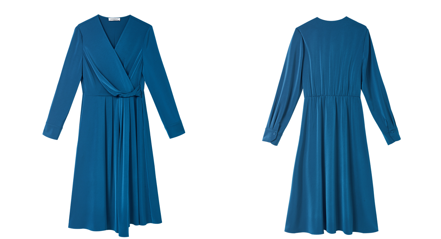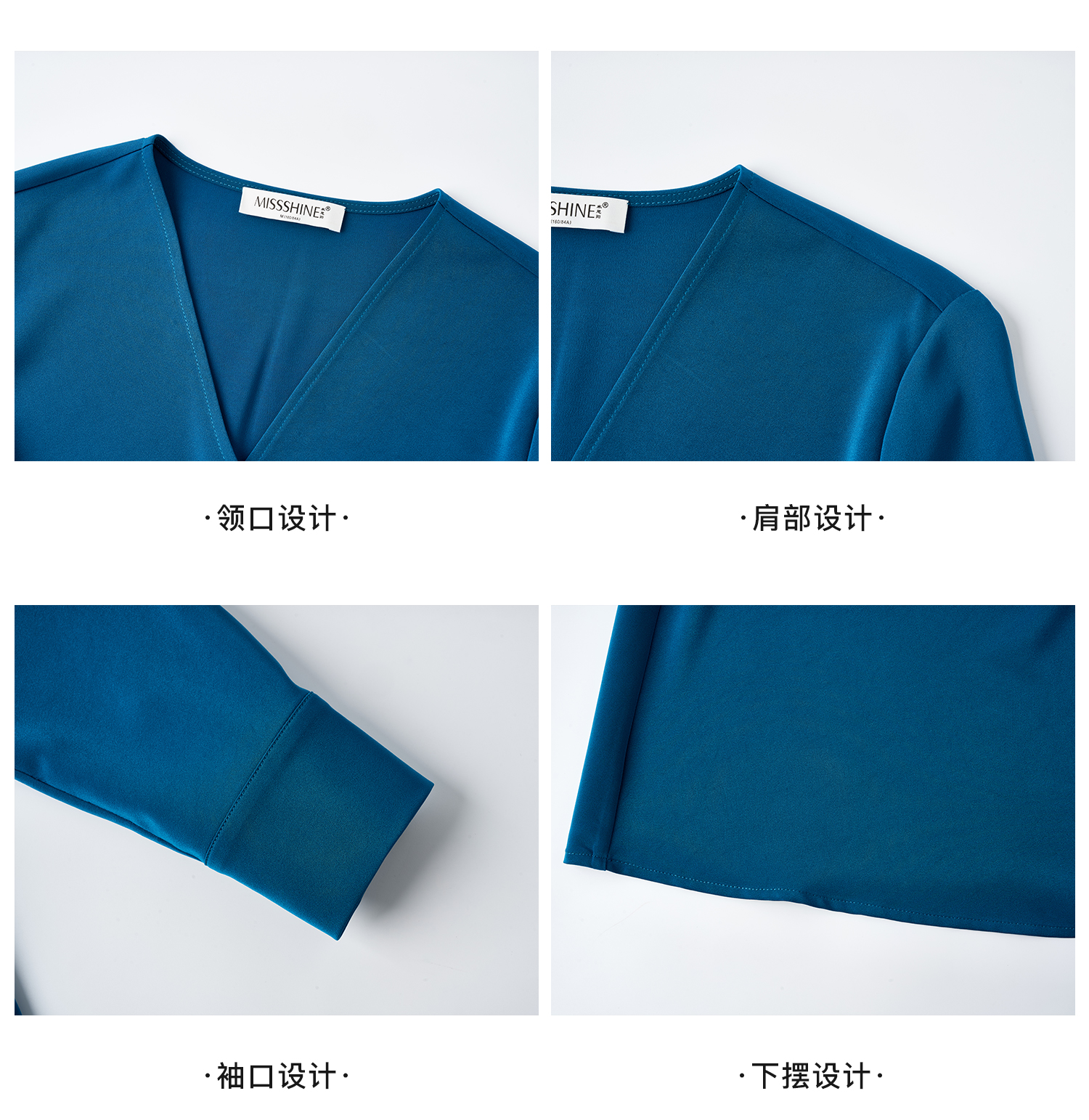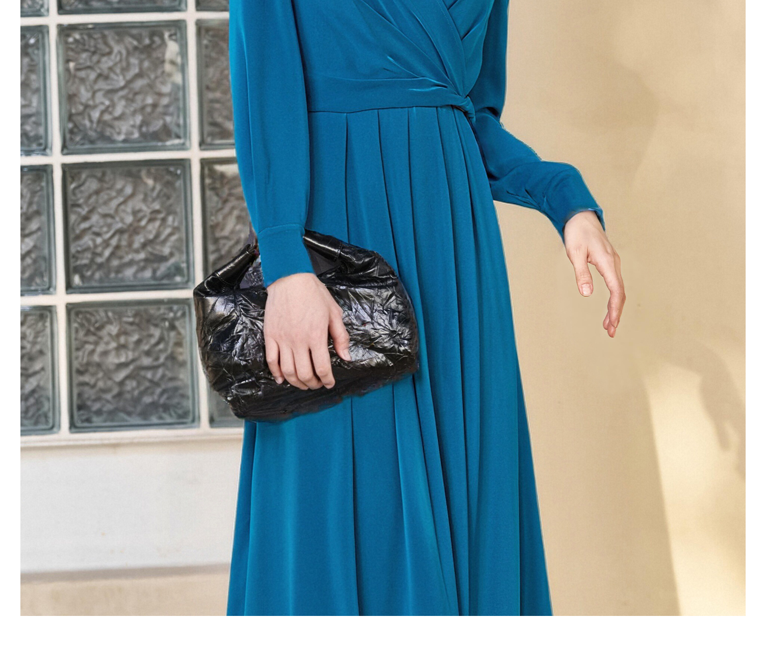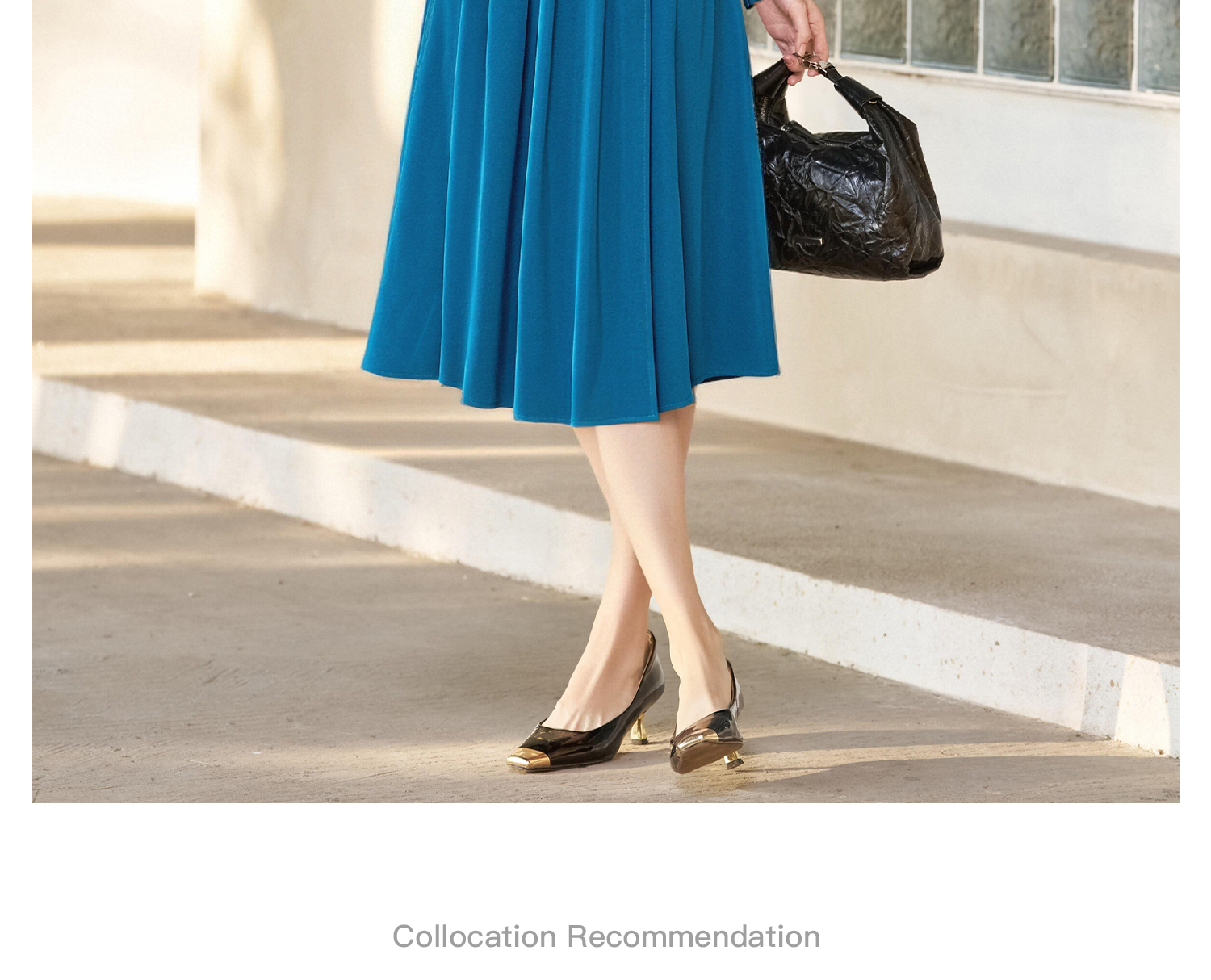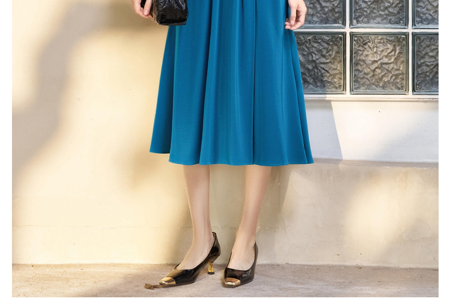 米思阳2026春季知性优雅风V领褶皱连衣裙收腰显瘦中长款大摆裙女4315