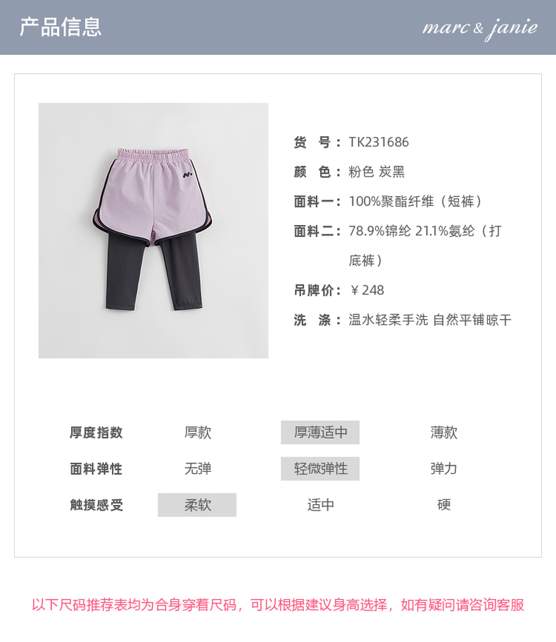 【假两件】马克珍妮秋装新款 女童弹力运动裤瑜伽裤231686