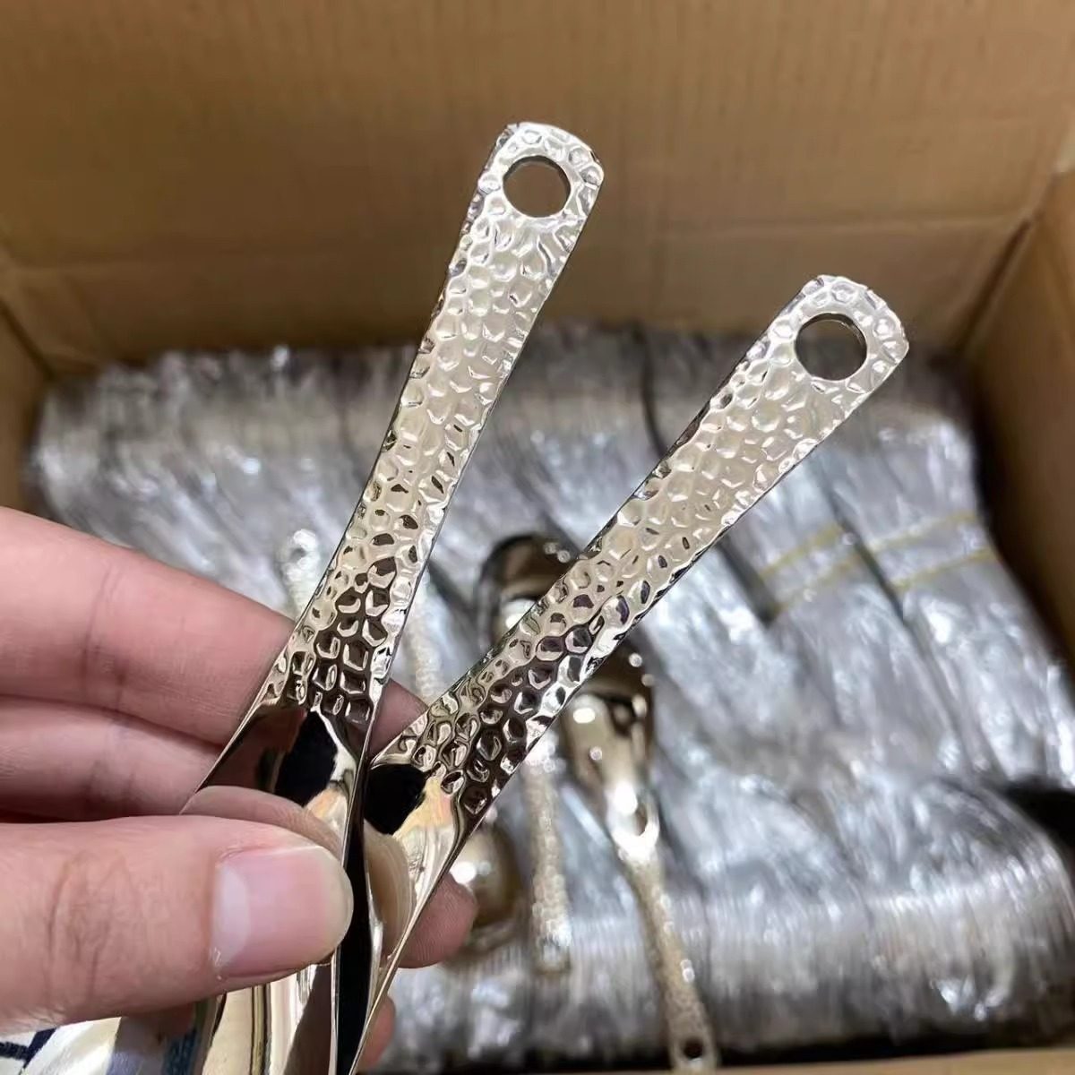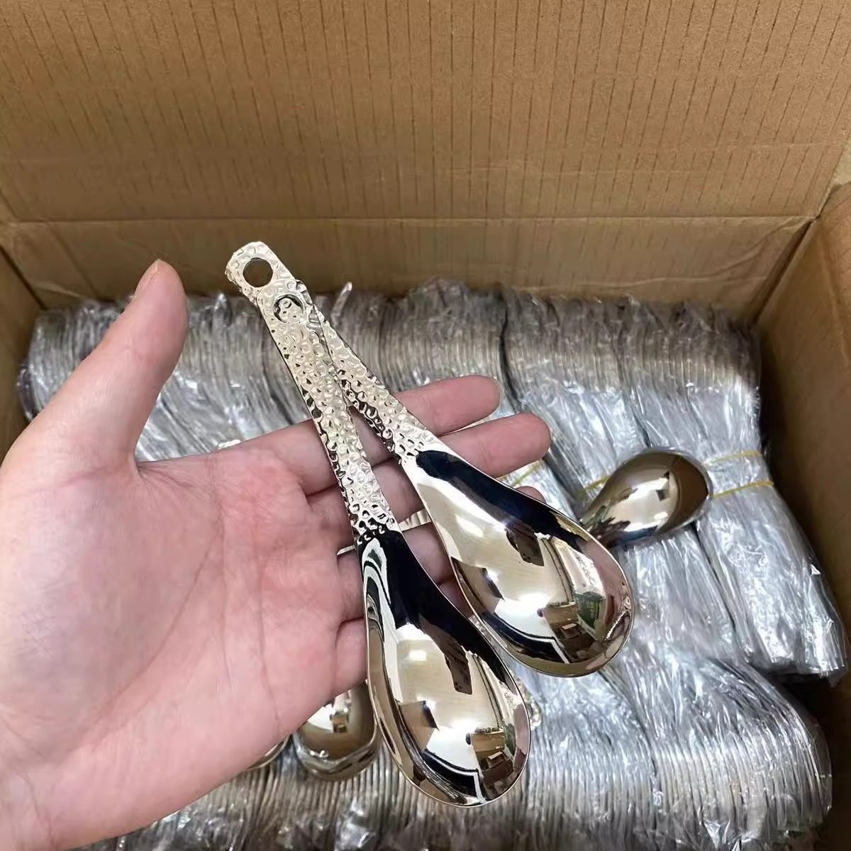 勺风家用410用餐勺甜品简约勺家勺高颜值不锈钢吃饭勺餐具锤纹ins