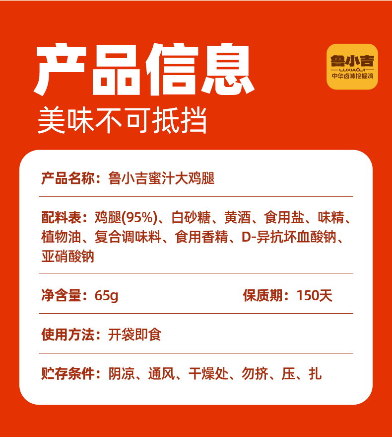[新品上新]鲁小吉蜜汁大鸡腿65g/根 蜜汁口味卤味熟食山东特产即食休闲零食