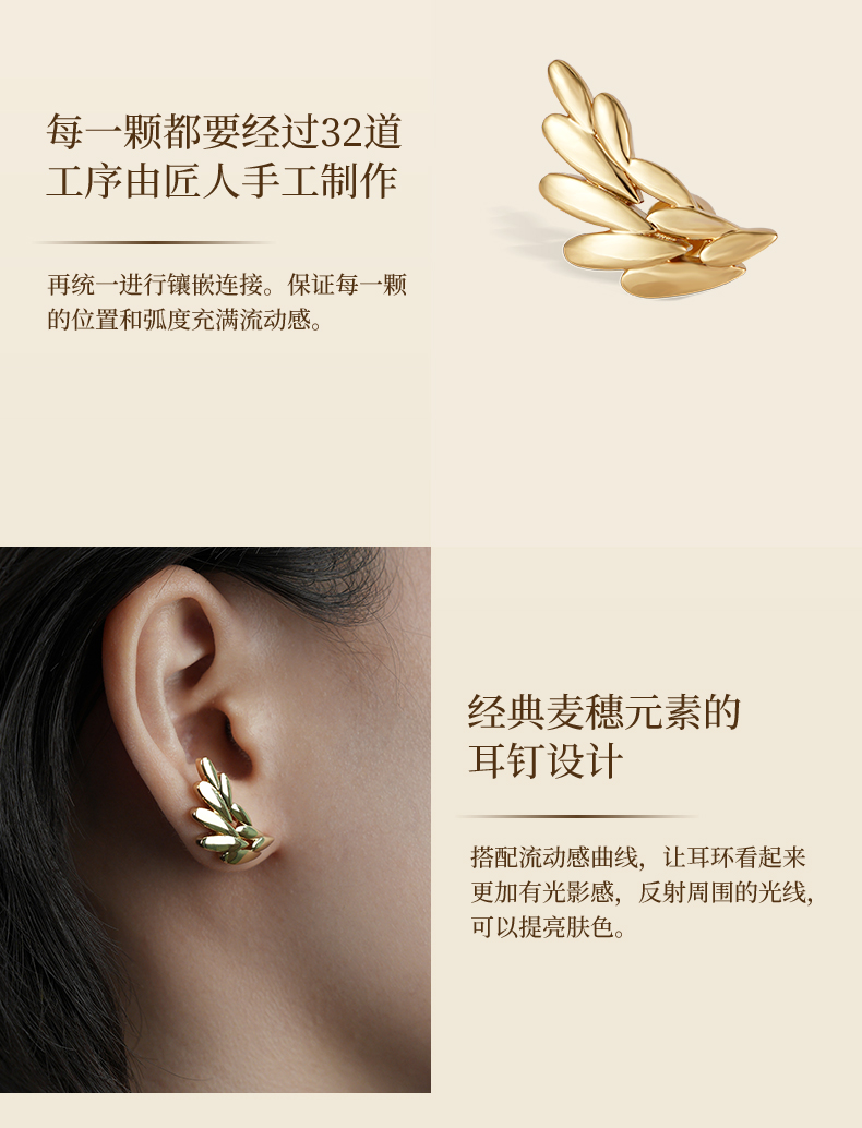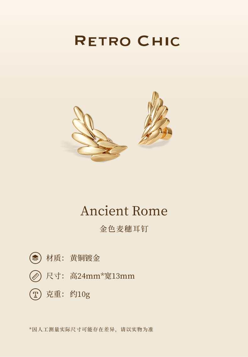 Retro Chic意大利复古时尚首饰 金/银色麦穗耳钉