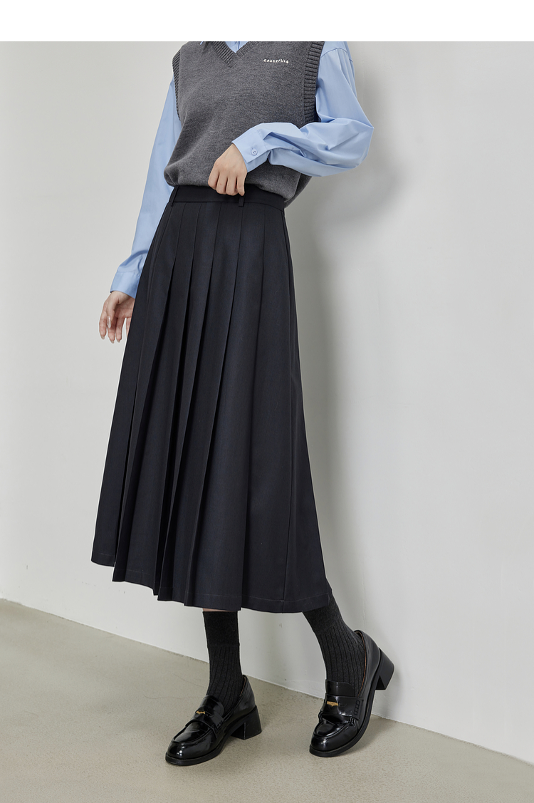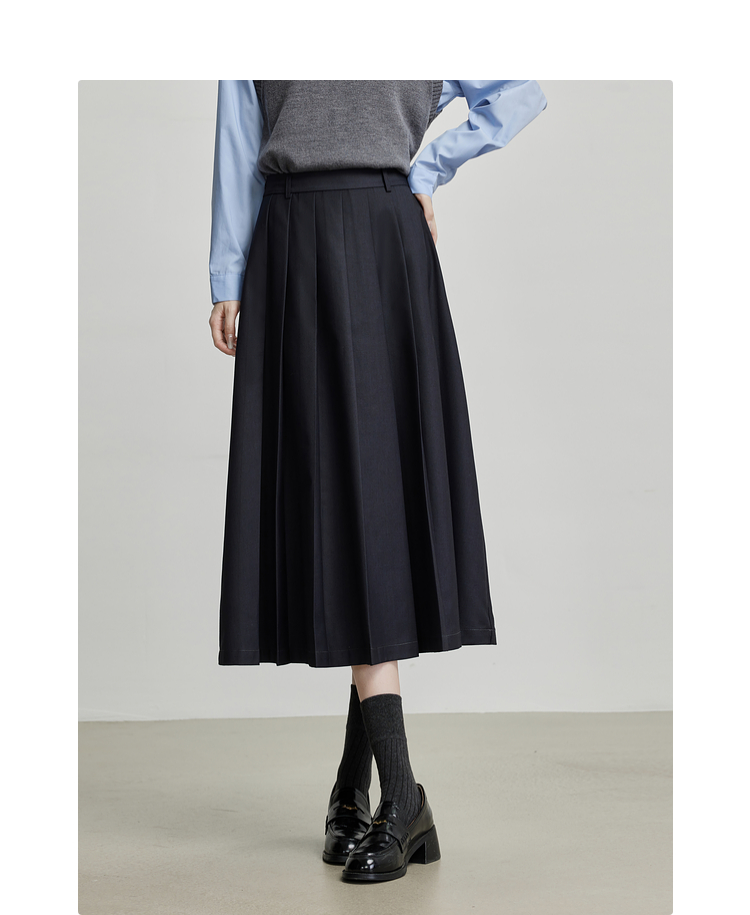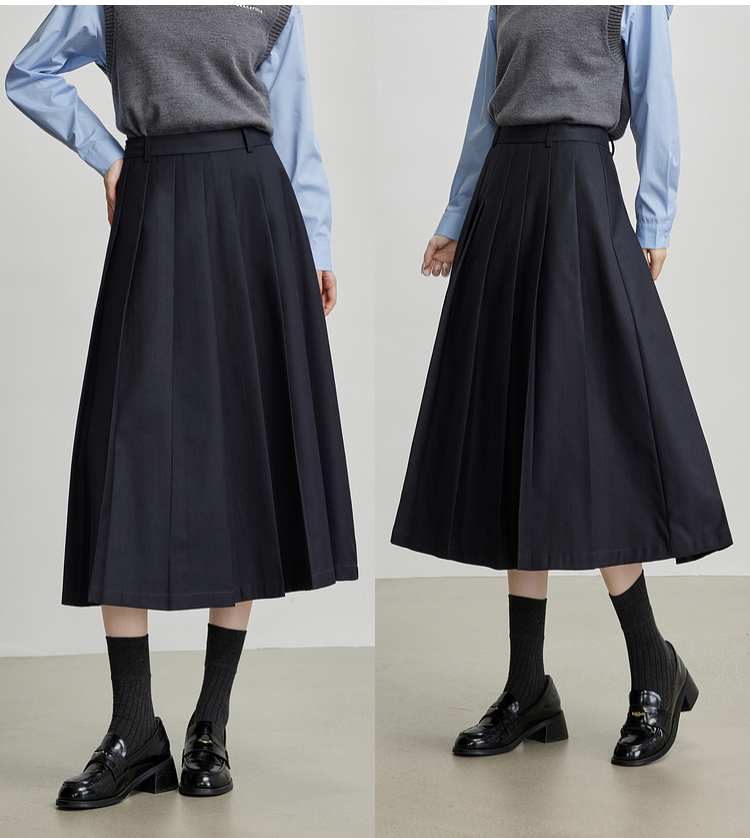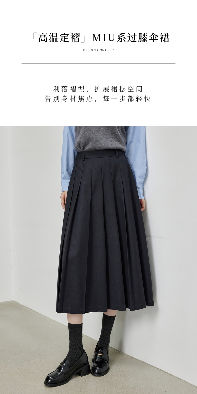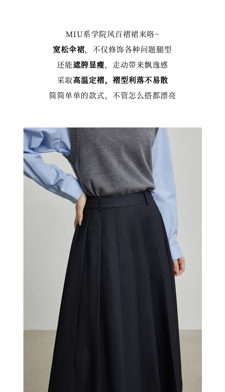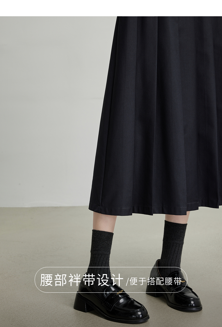 【09/03新品】熙世界通勤百褶半身裙女2025秋装新款学院风中长款A字伞裙西装裙