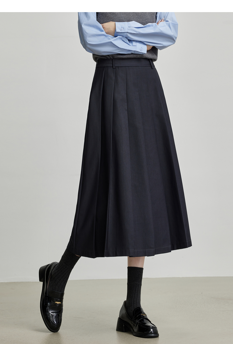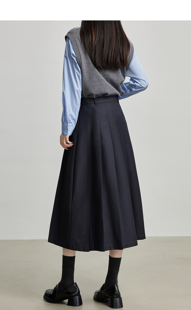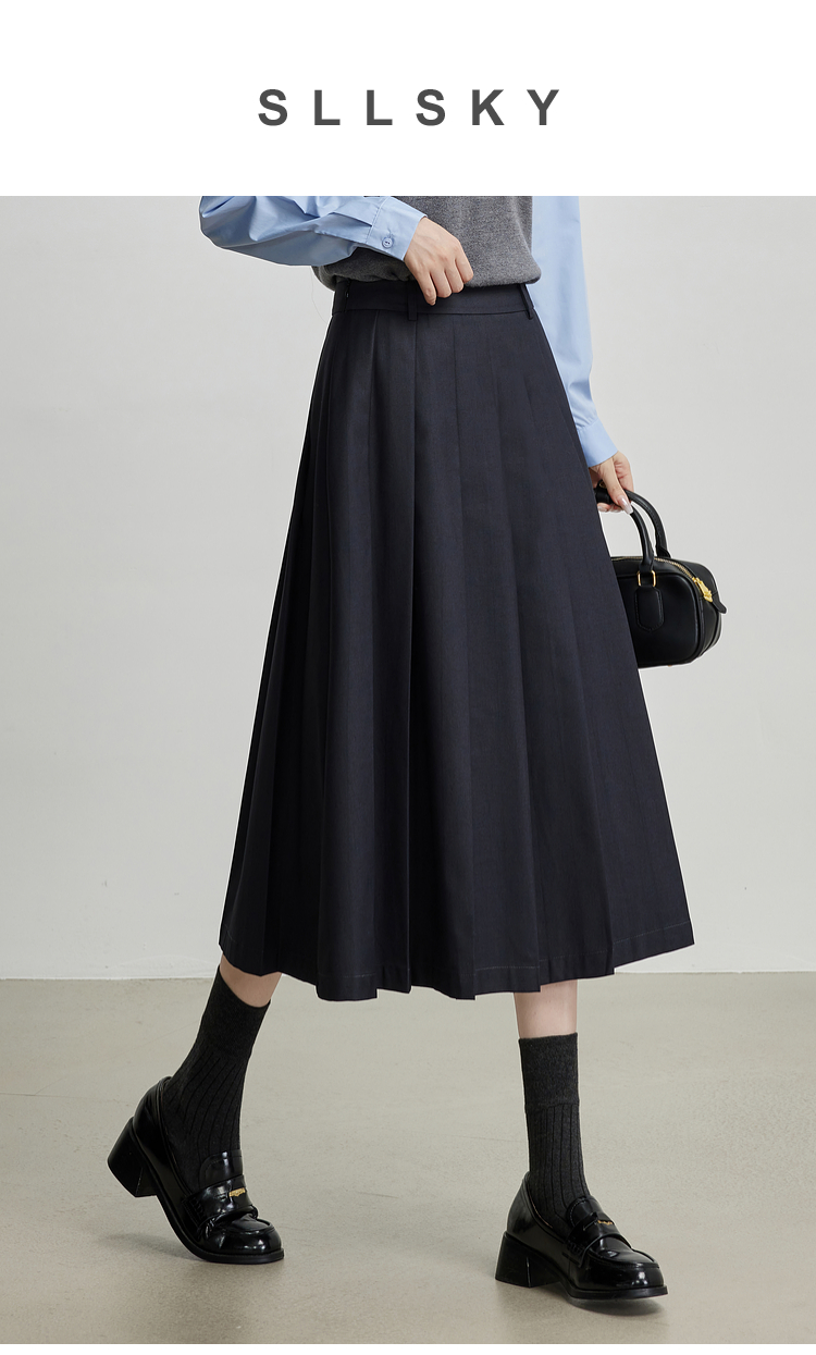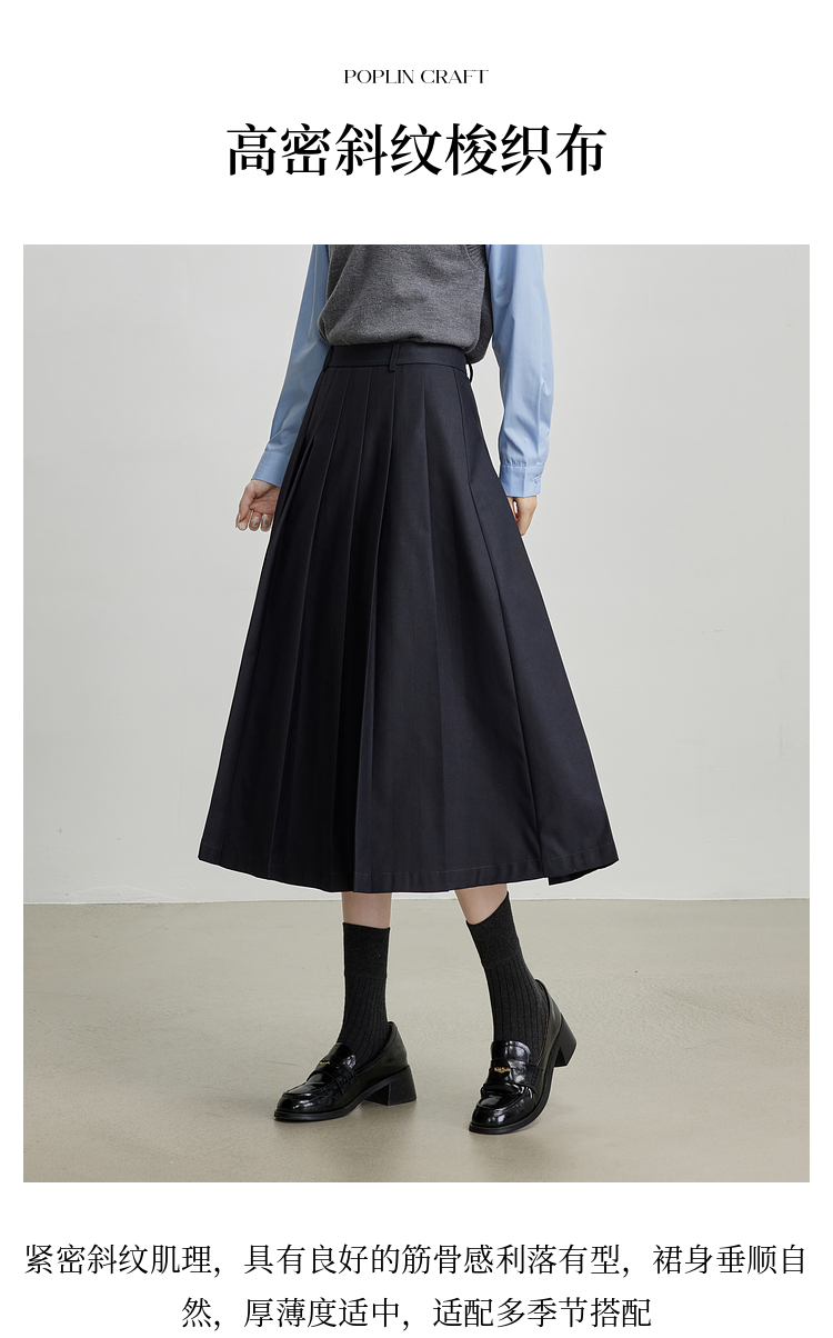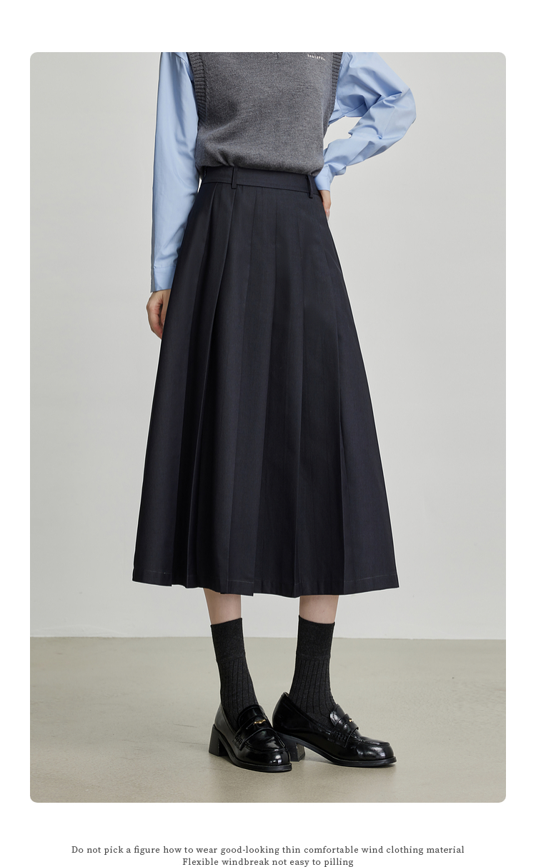 【09/03新品】熙世界通勤百褶半身裙女2025秋装新款学院风中长款A字伞裙西装裙