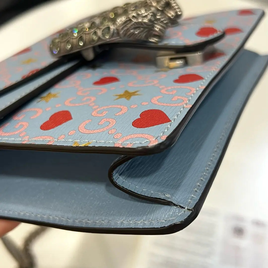 【商品详情】正品二手 GUCCI 酒神 小号 粉色拼爱心 斜挎包💗 99新 20×14。爱心设计 少女感十足 日常搭配利器