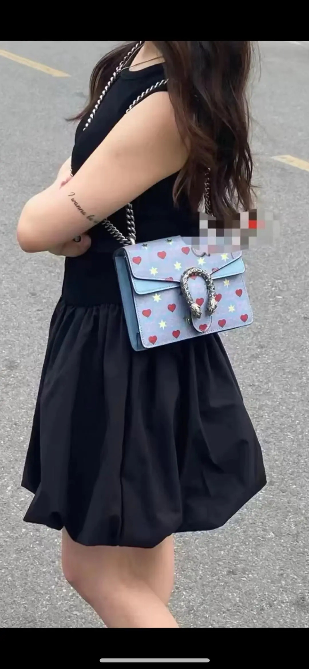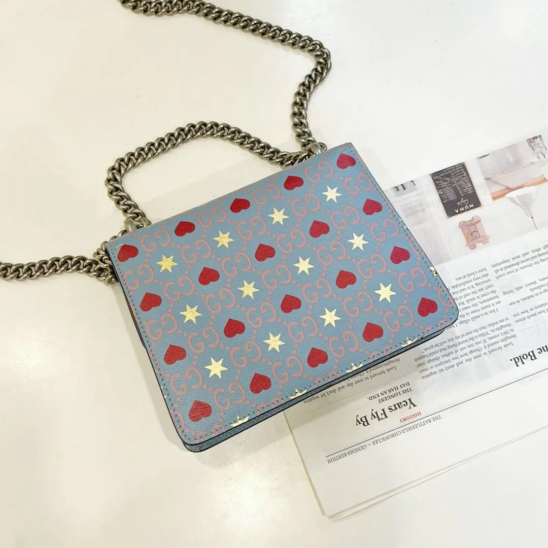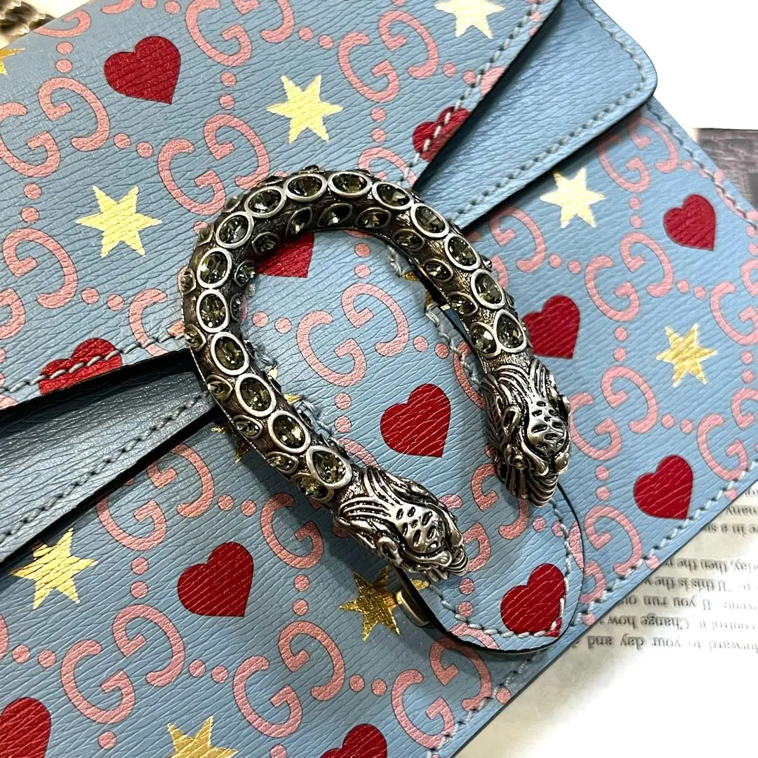 GUCCI 酒神 小号 粉色拼爱心 斜挎包