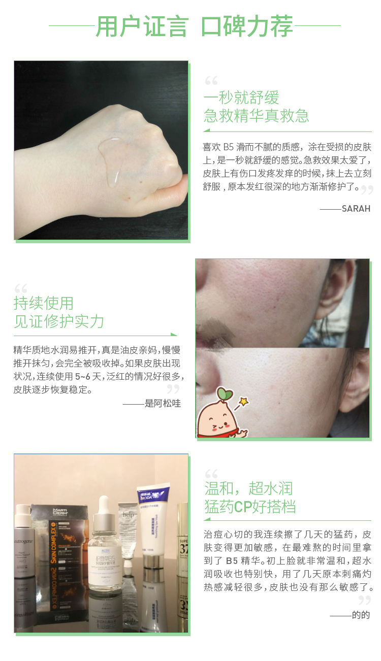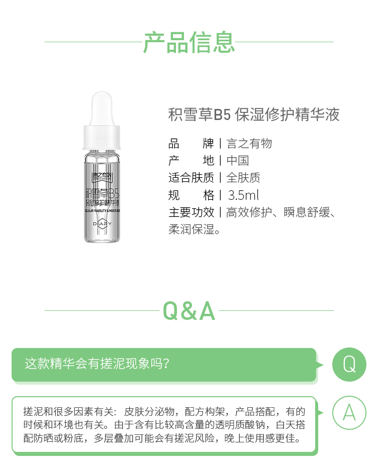 【U先试用】言之有物积雪草B5保湿补水玻尿酸面部精华液3.5mlJPY带授权招加盟代理