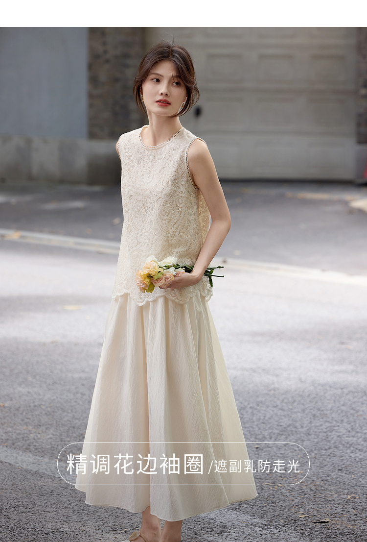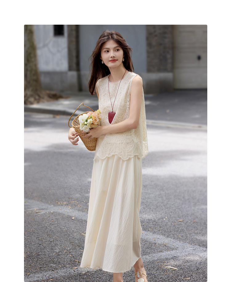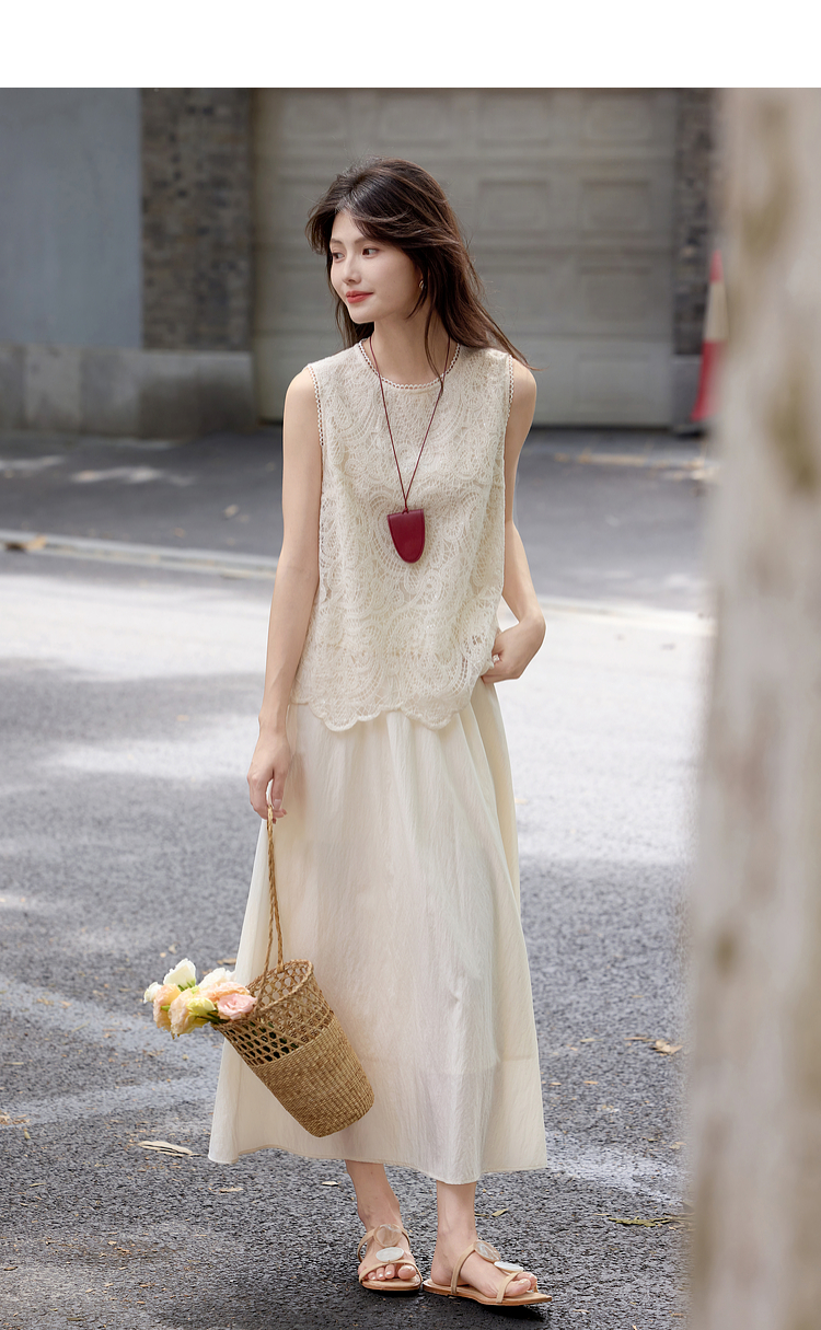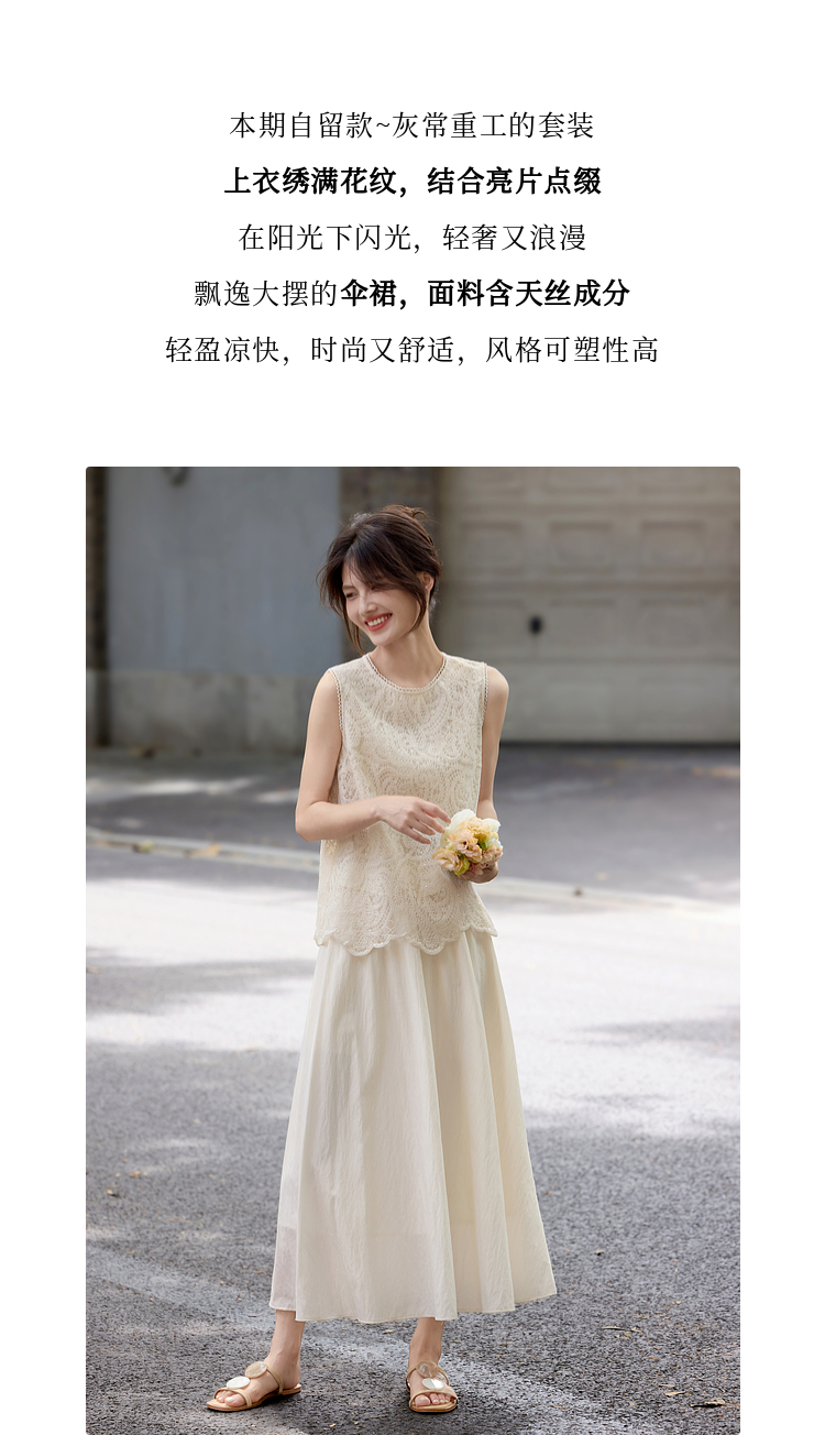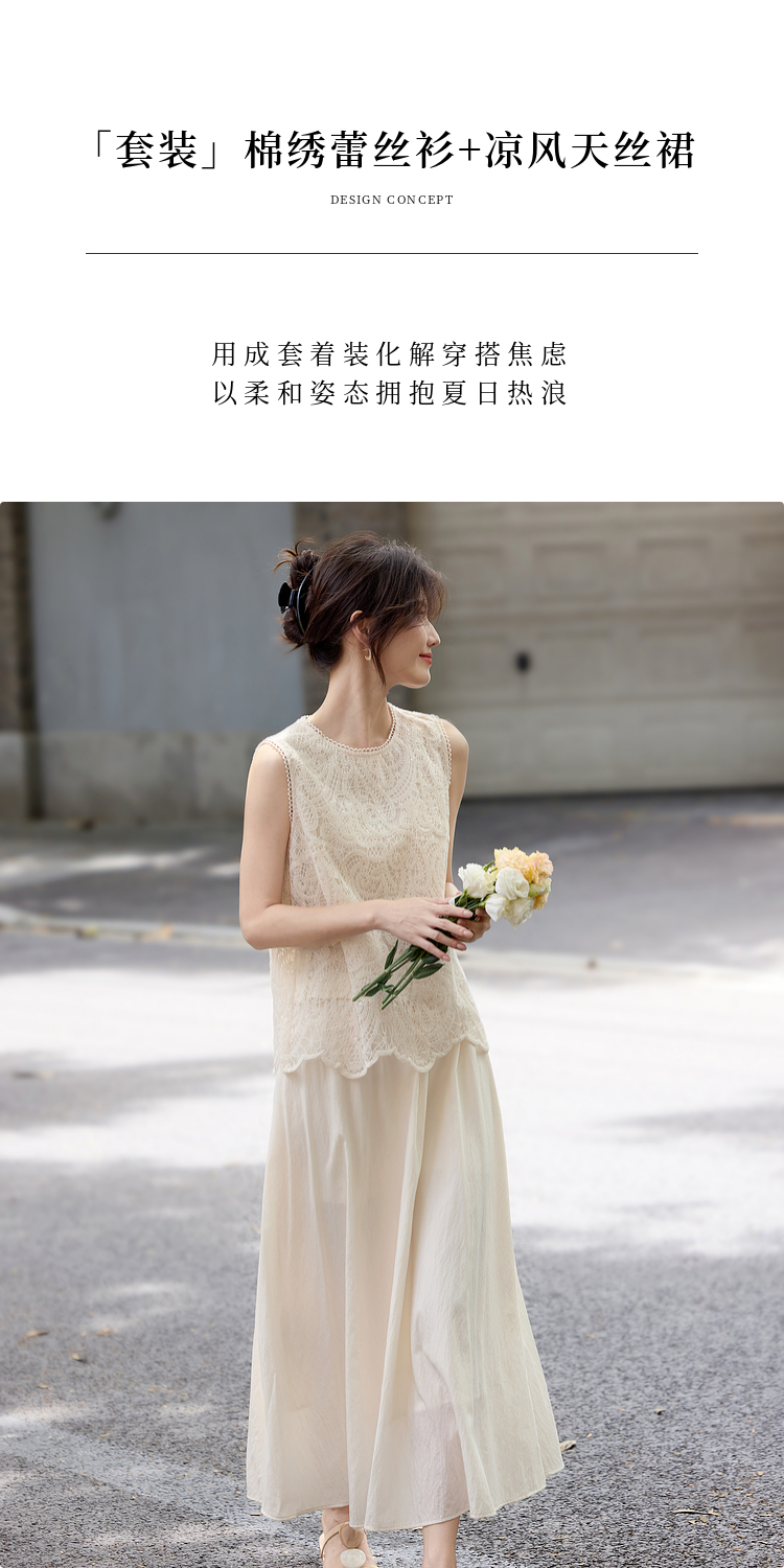 【08/06新品】熙世界法式优雅小资套装女2025夏日新款蕾丝背心天丝半身裙两件套