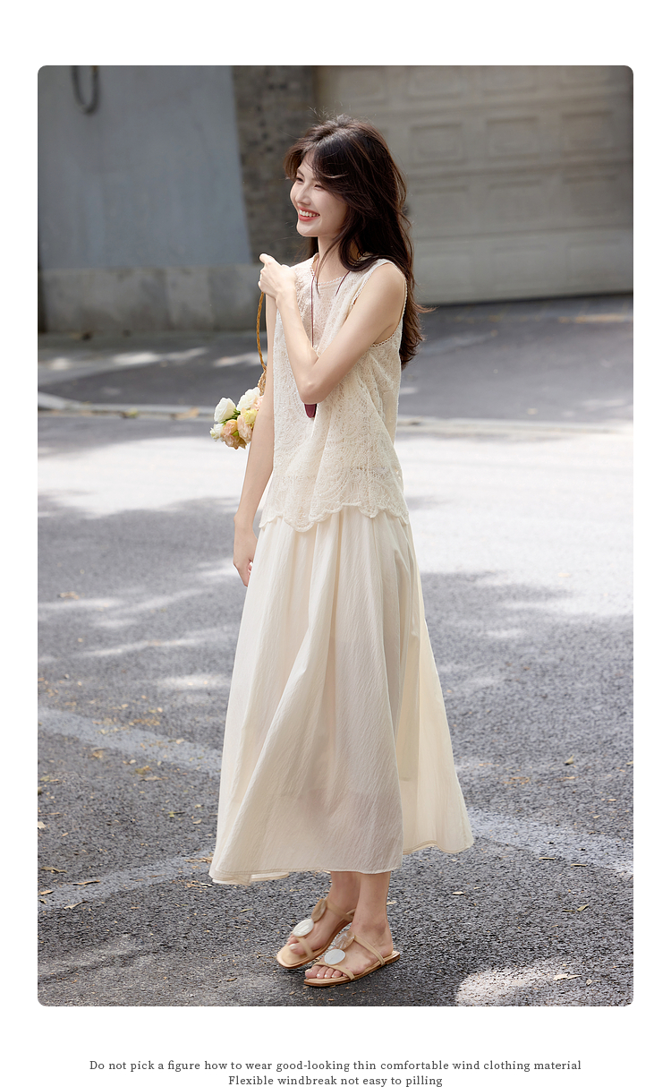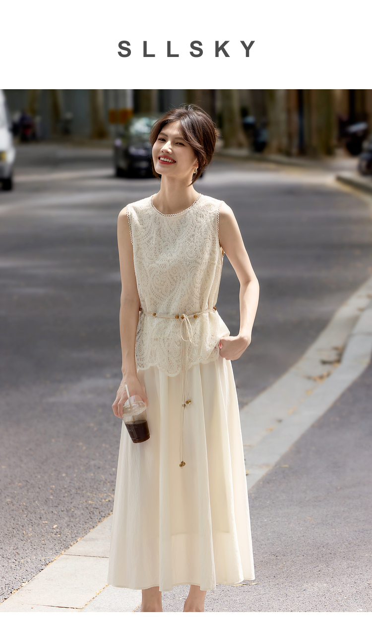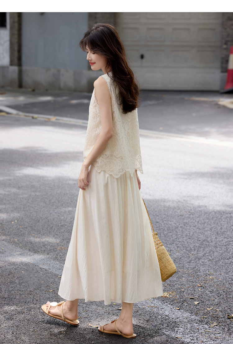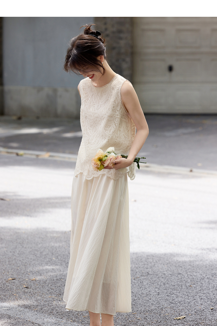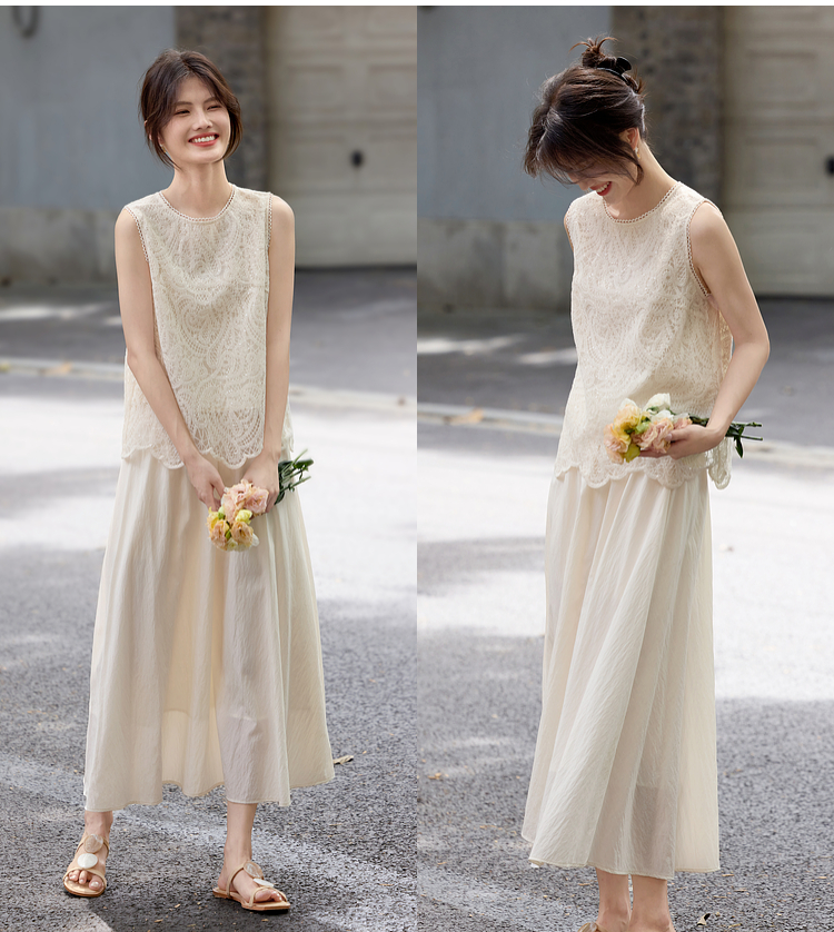 【08/06新品】熙世界法式优雅小资套装女2025夏日新款蕾丝背心天丝半身裙两件套
