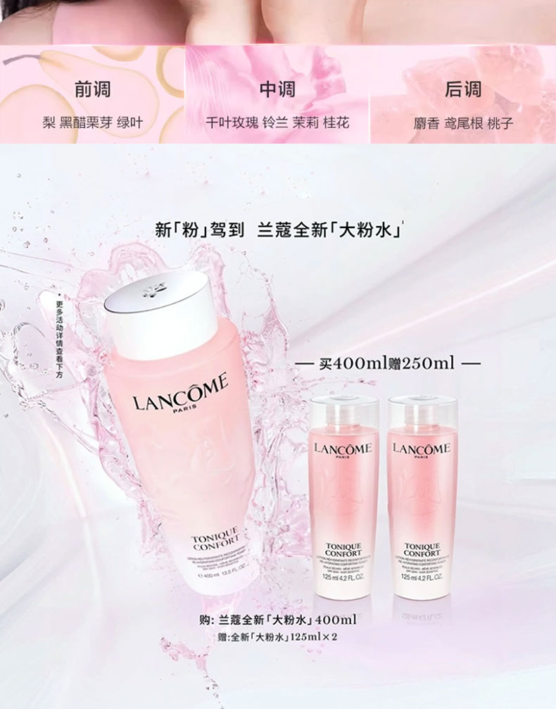 【全球购A义乌】H专享买一送一LANCOME/兰蔻大粉水柔肤补水400ml