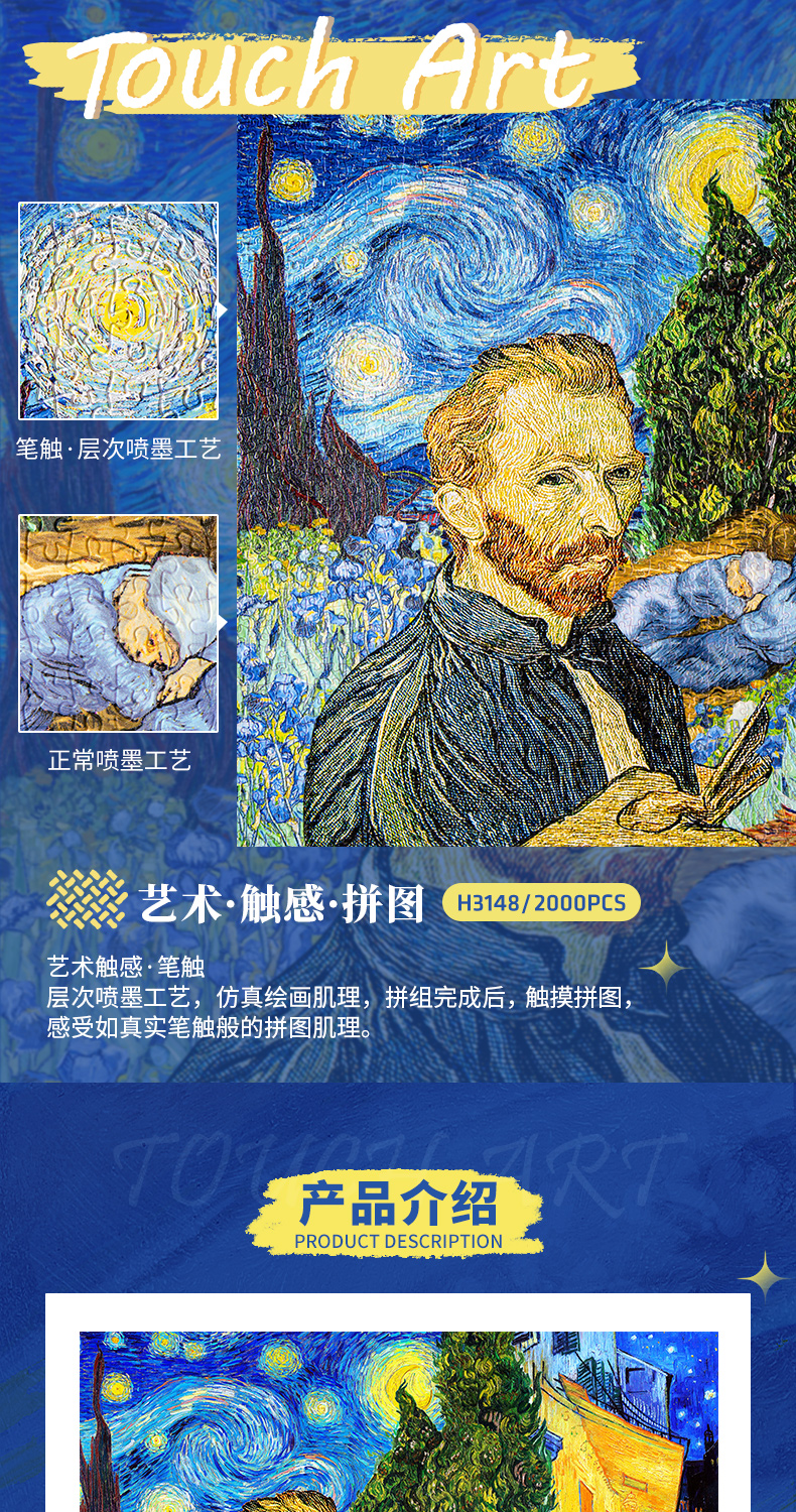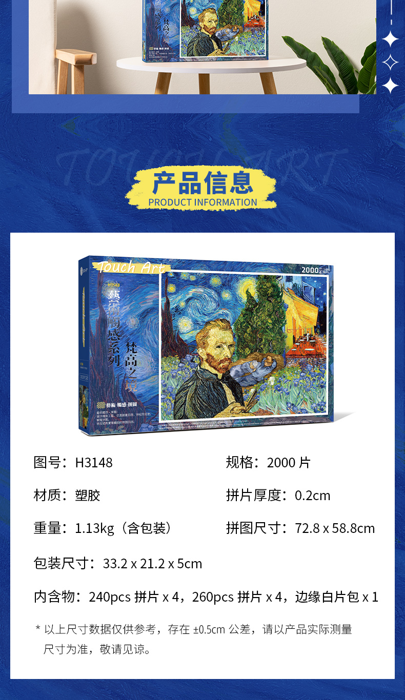 【折扣商品 不退不换】2000片平面拼图塑料拼图H3148 艺术触感系列-梵高之境