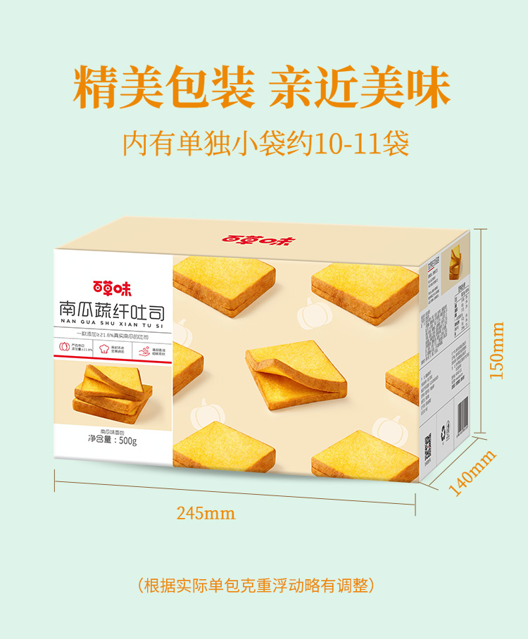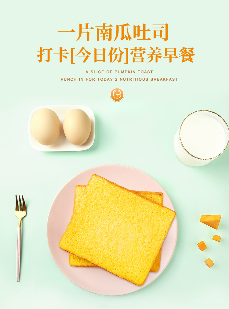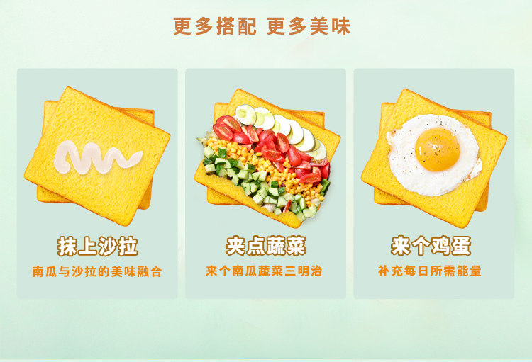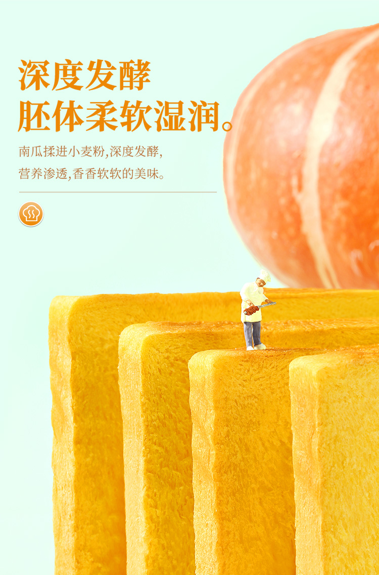 【包邮】南瓜蔬纤吐司500g 含有膳食纤维 充饥饱腹 南瓜紫薯纤维吐司营养养胃早餐