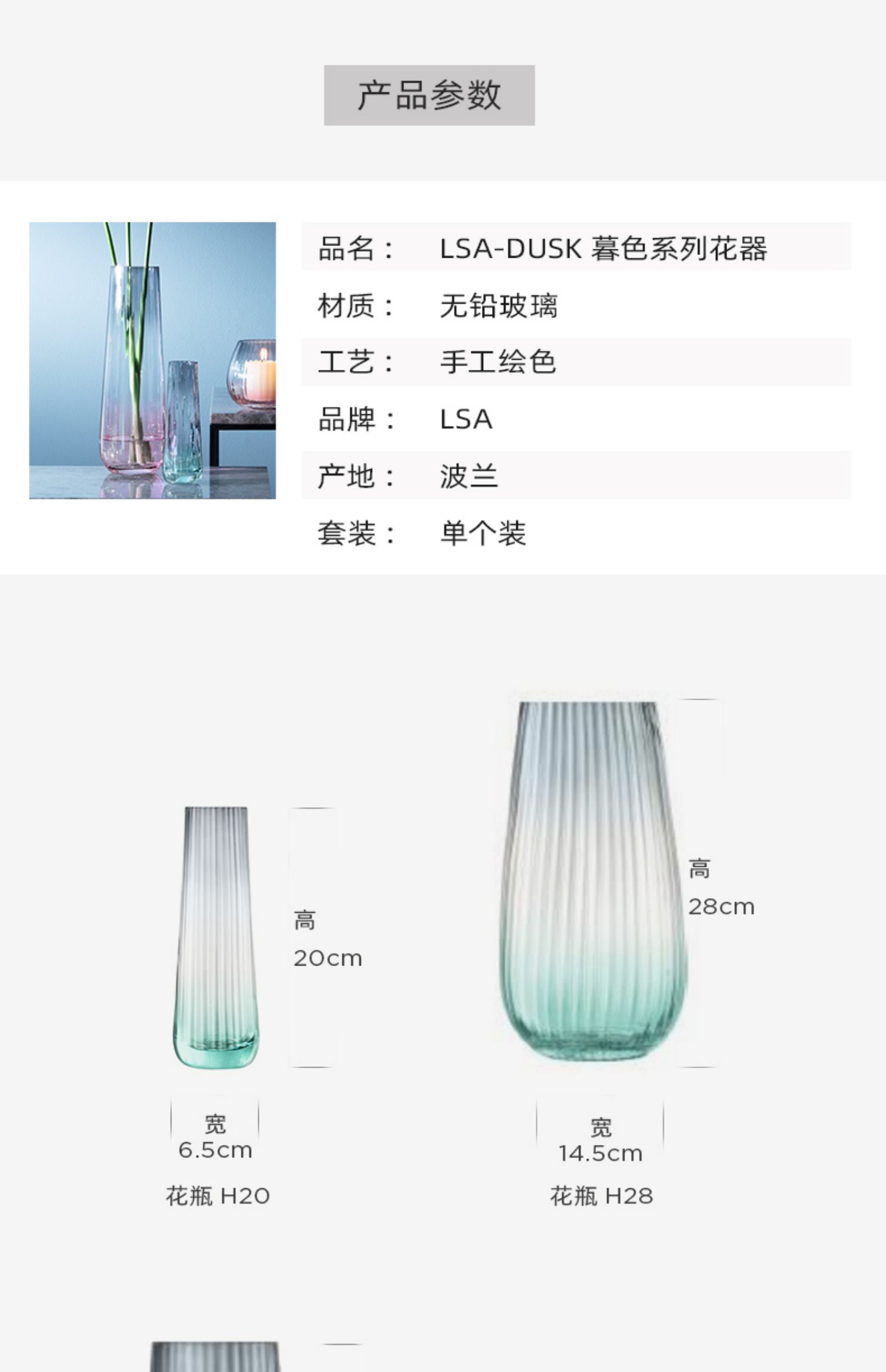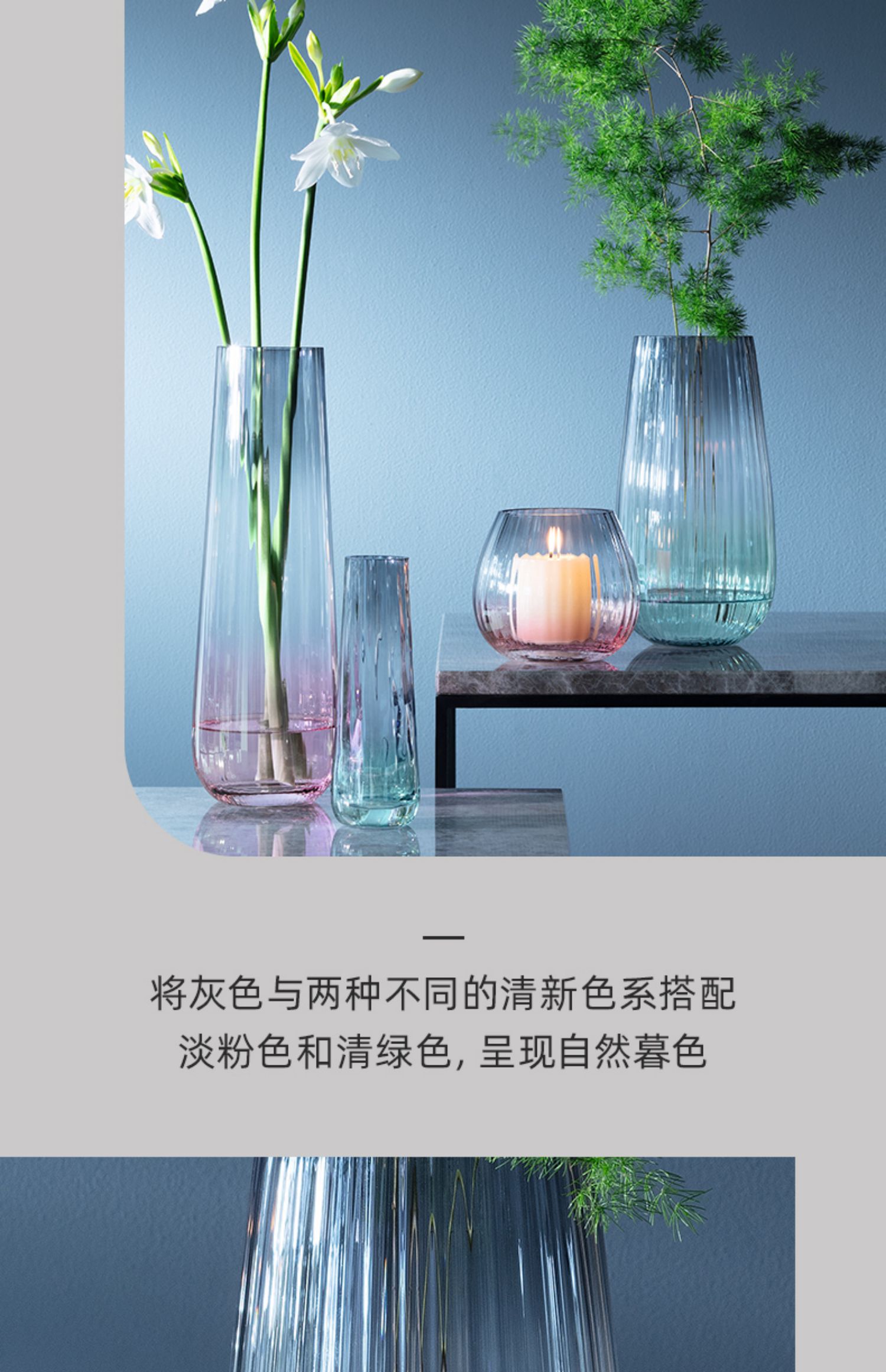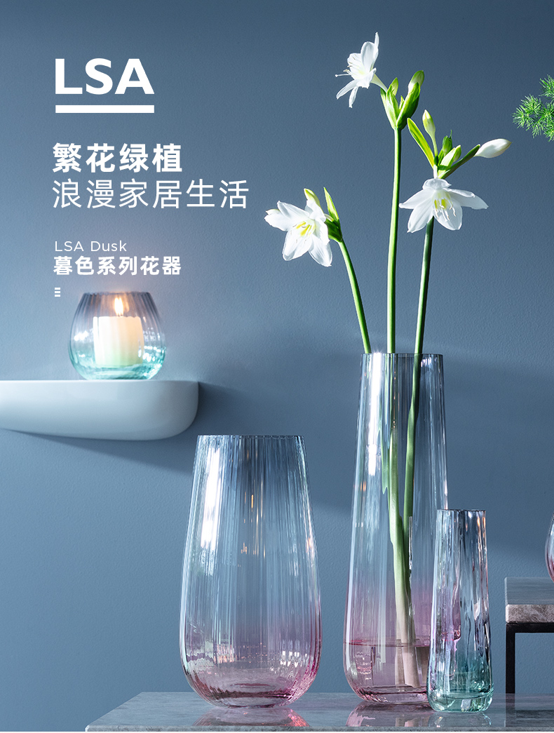lsa花瓶Dusk手工渐变玻璃简约透明客厅欧式大号鲜花插花摆件