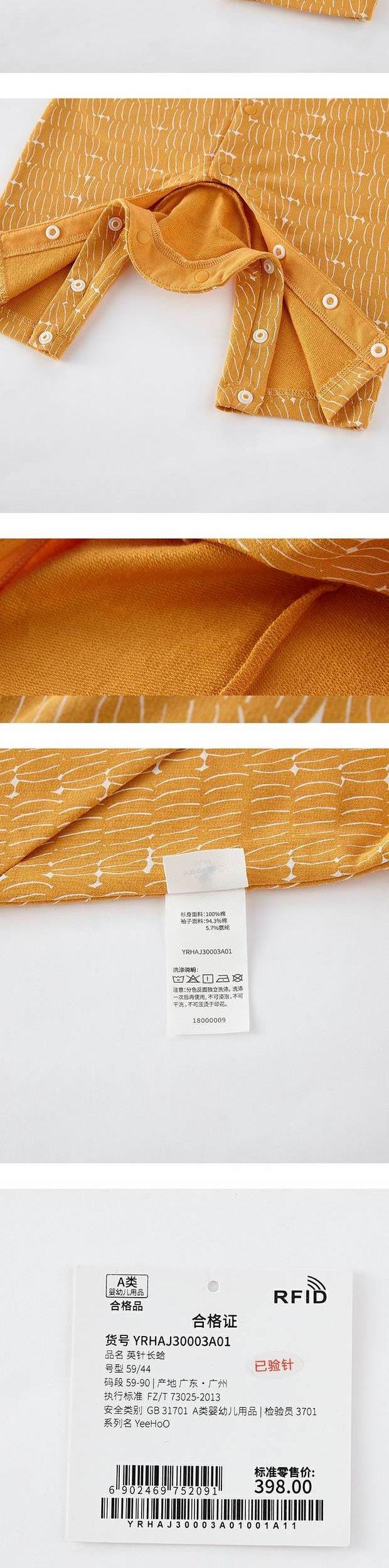 英氏-童衣类(秋)D00英针长蛤, 姜橘黄, 59CM