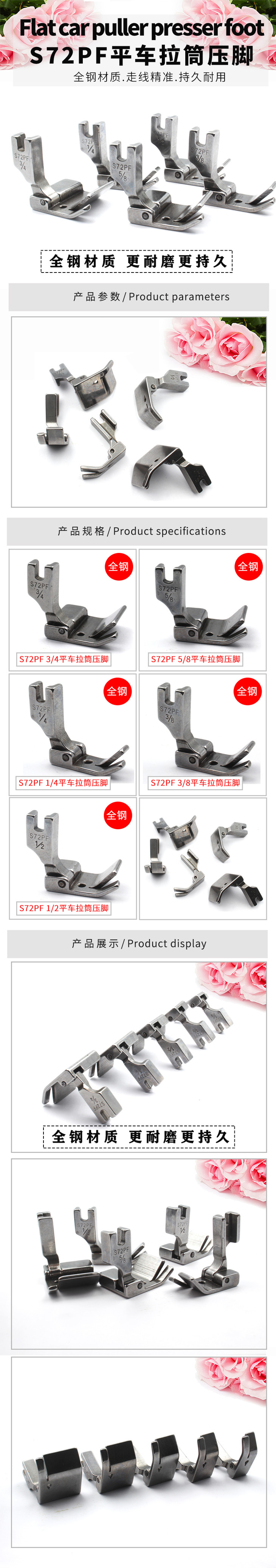 S72PF平车拉筒压脚 3611全钢材质下摆筒卷边包边加宽靠边压脚 缝纫机配件