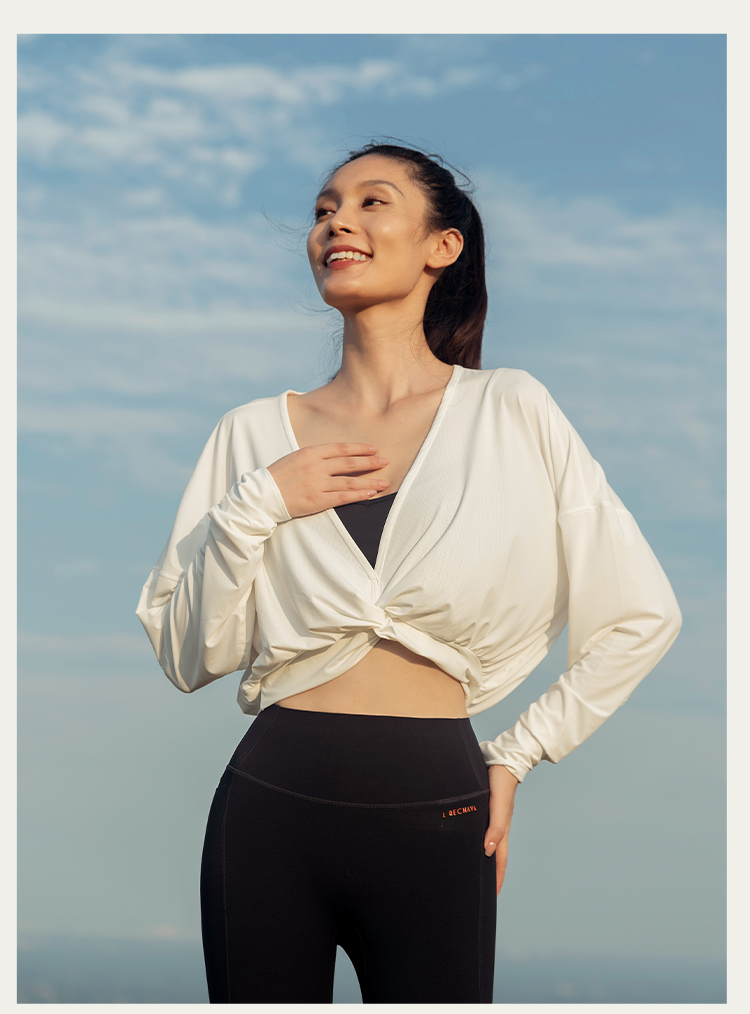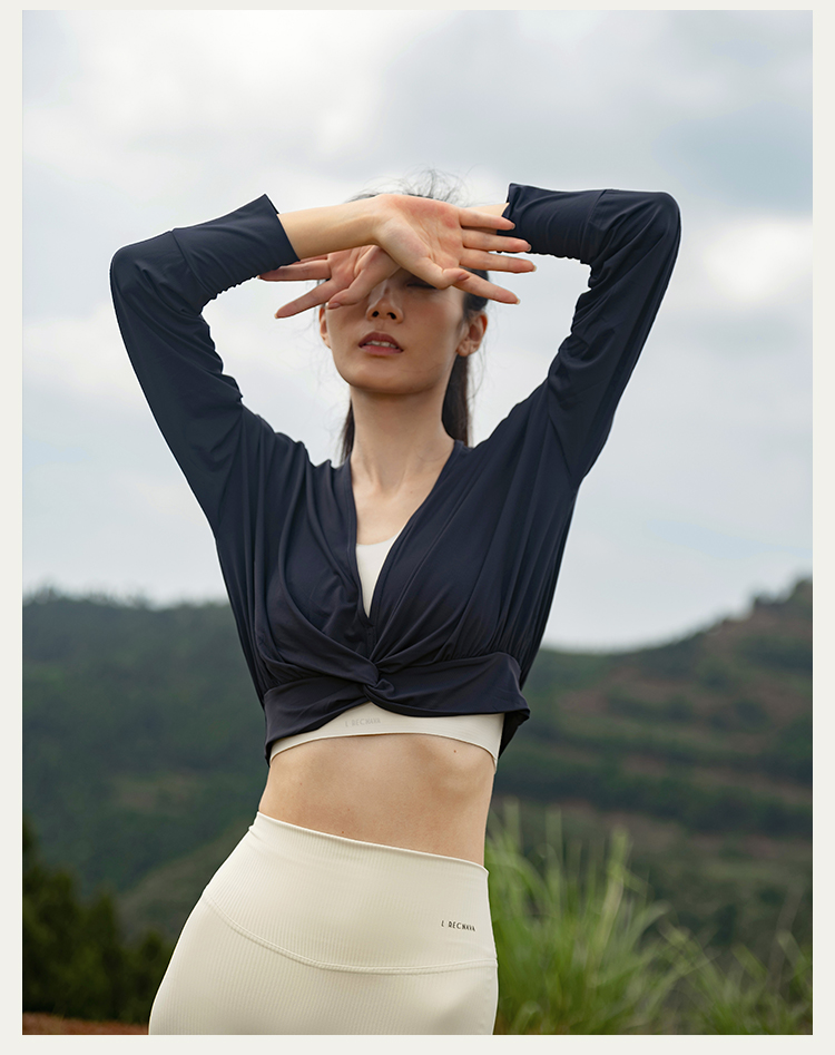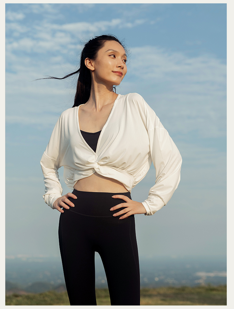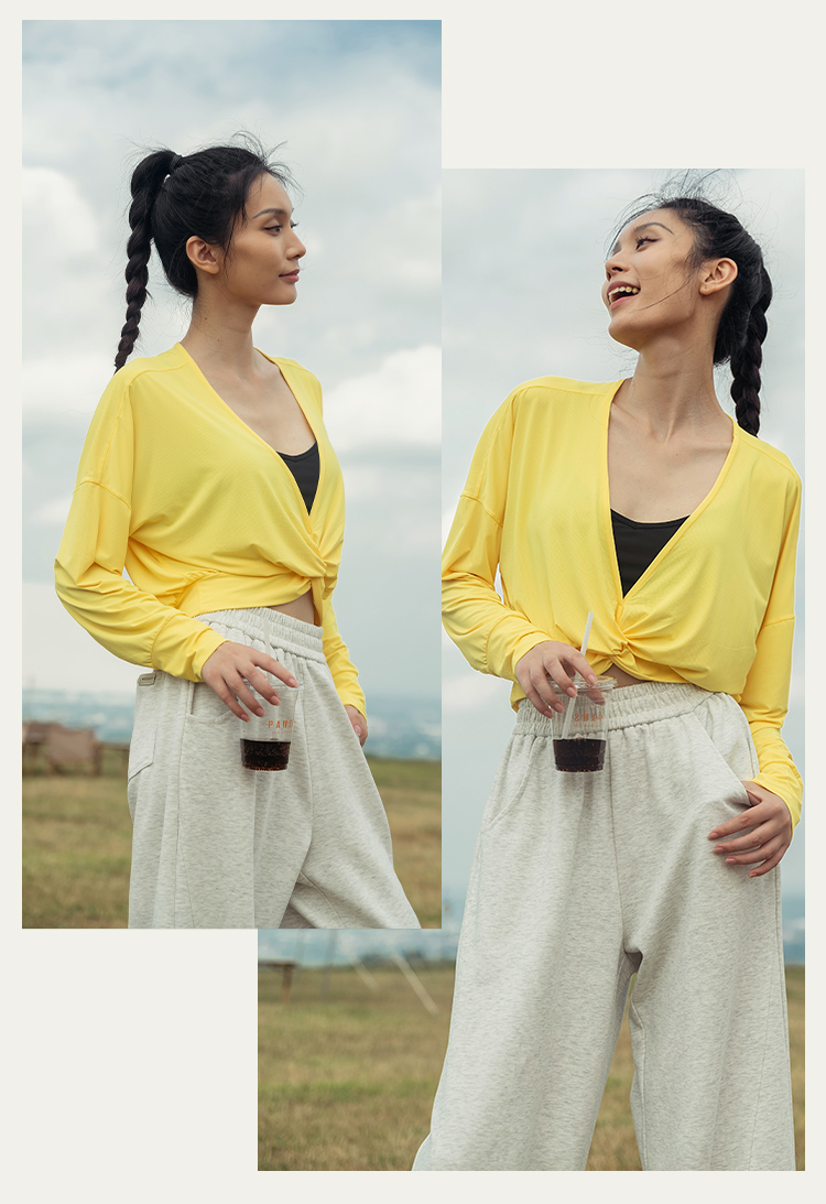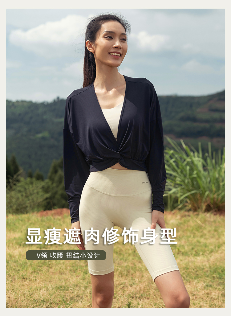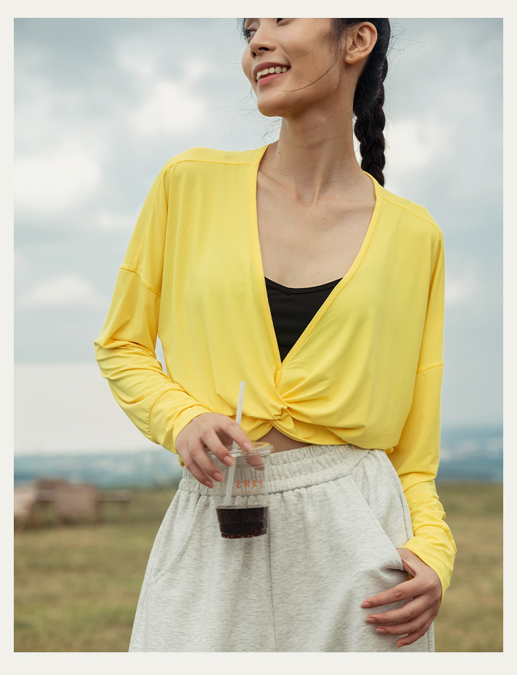 【凉感面料】V领 扭结 遮肉 显瘦 轻薄清爽 长袖罩衫上衣