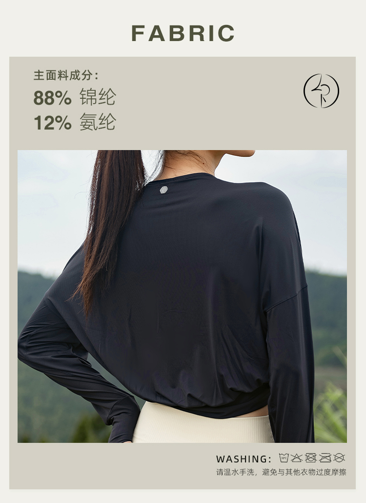 【裸感】弹力修身健身瑜伽服女长袖带胸垫长恤