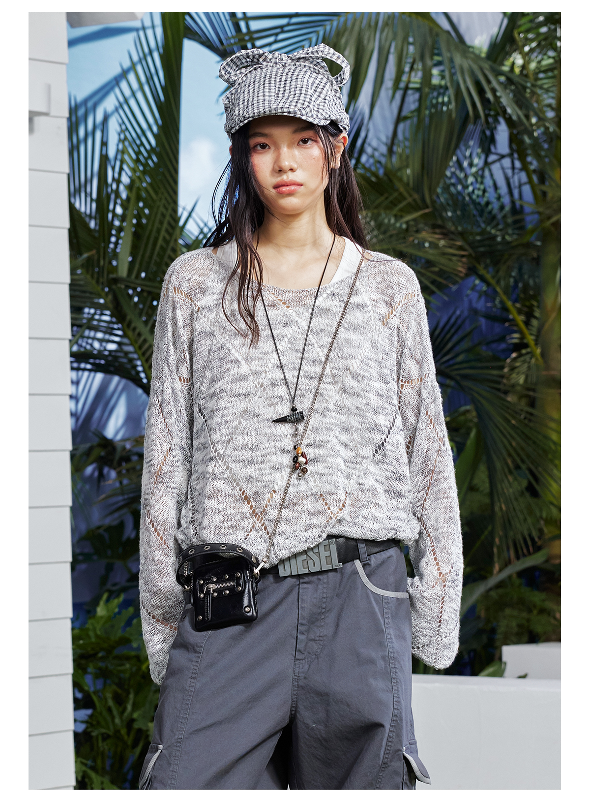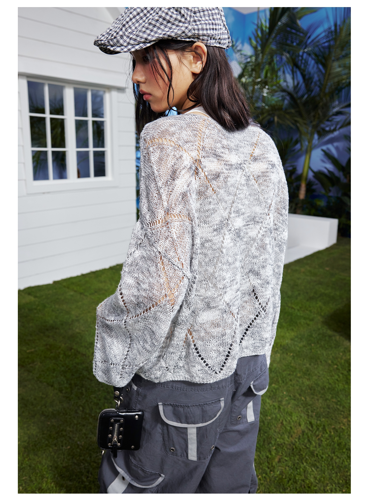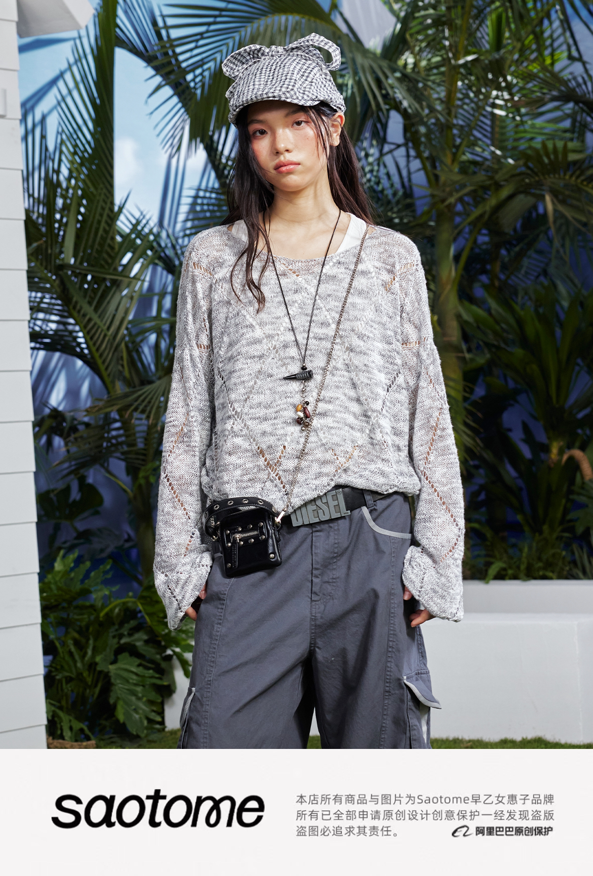 早乙女惠子saotome/STMMY222281/菱形镂空毛织罩衫