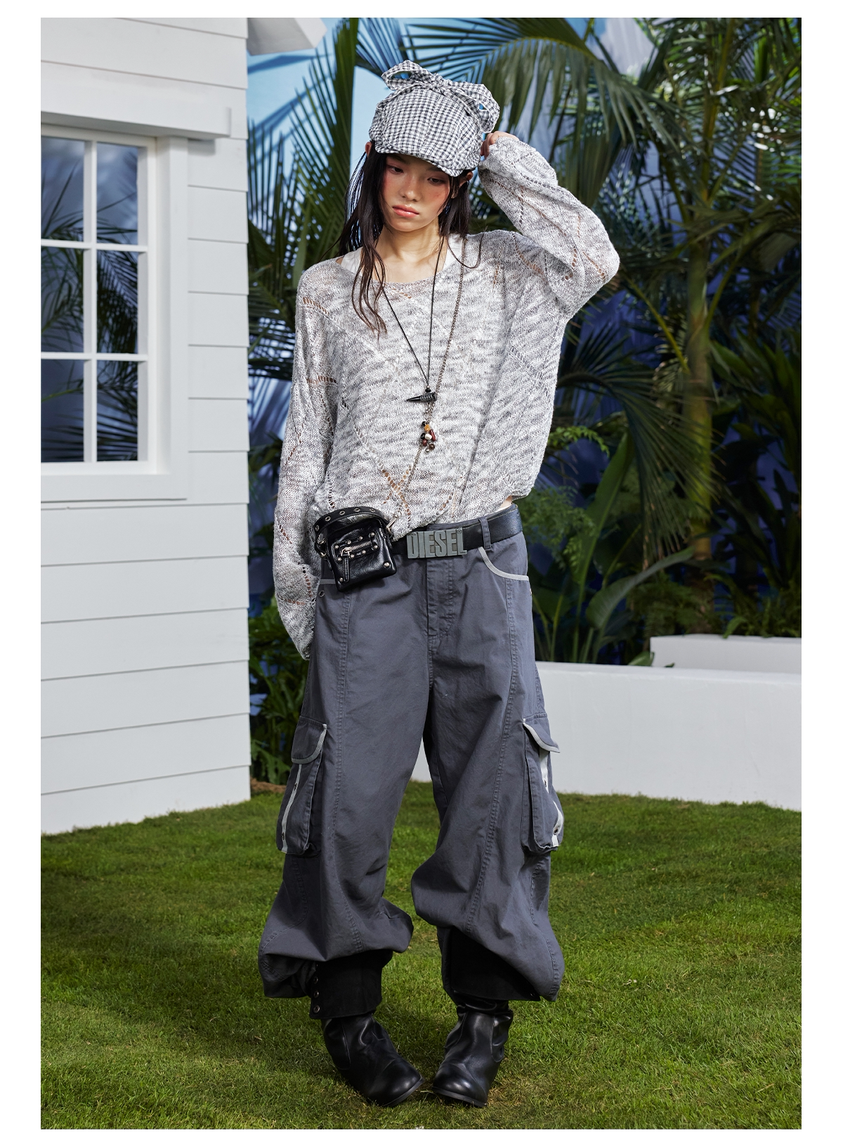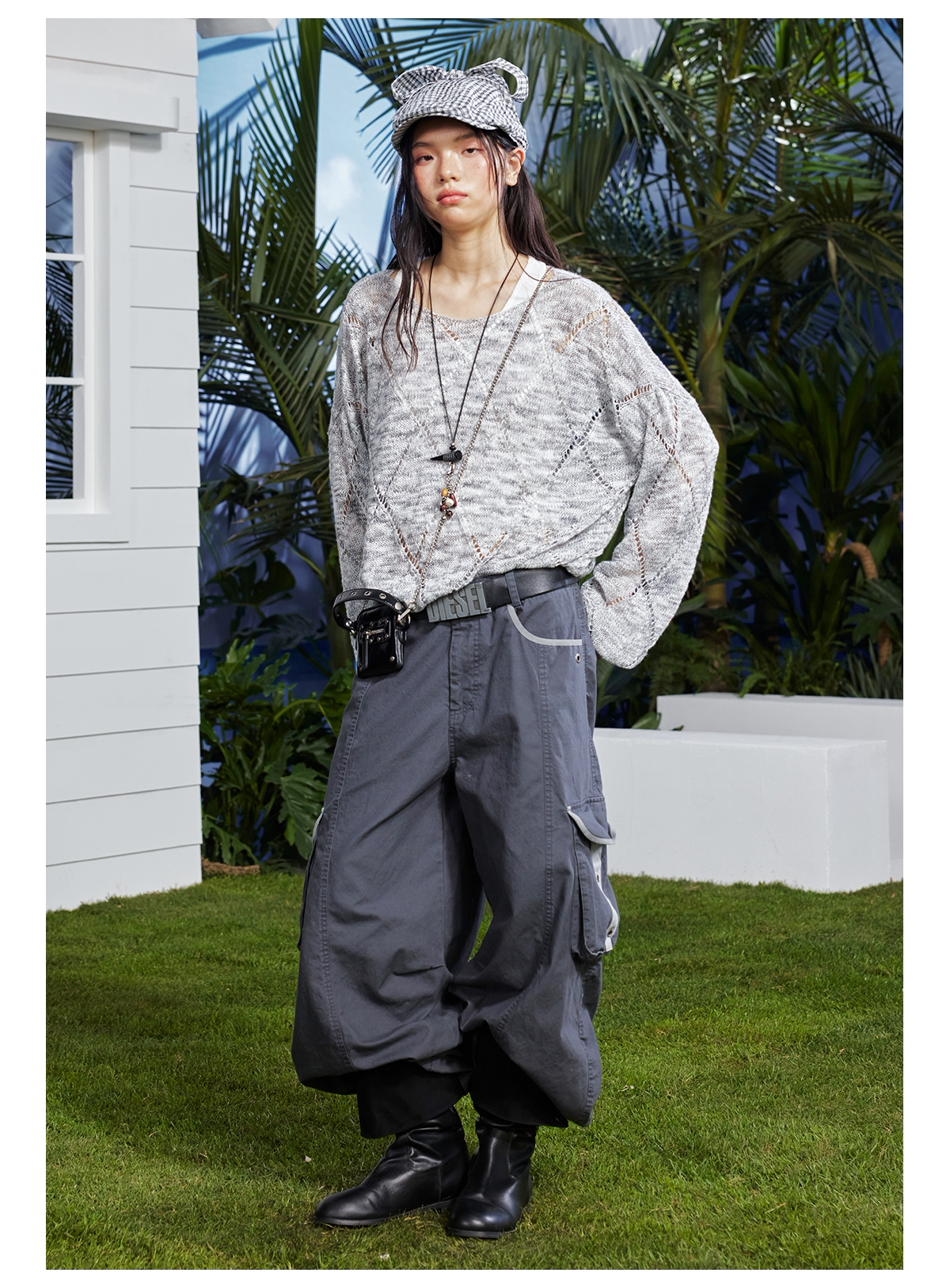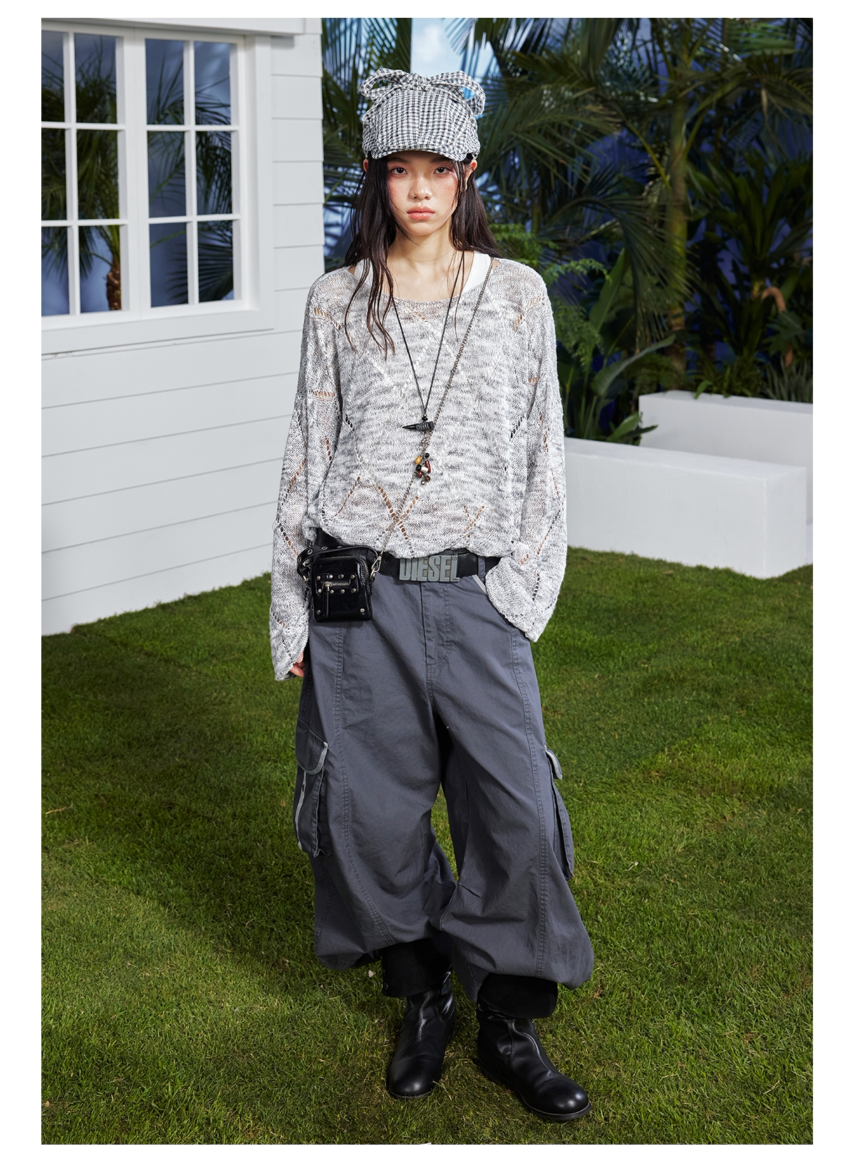 早乙女惠子saotome/STMMY222281/菱形镂空毛织罩衫