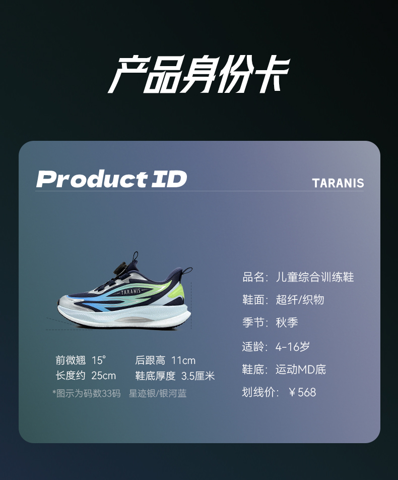 【稳跑少年团】泰兰尼斯儿童综训鞋2025秋季新款女童跑步鞋中大童校园体考运动鞋 T01D5C8009