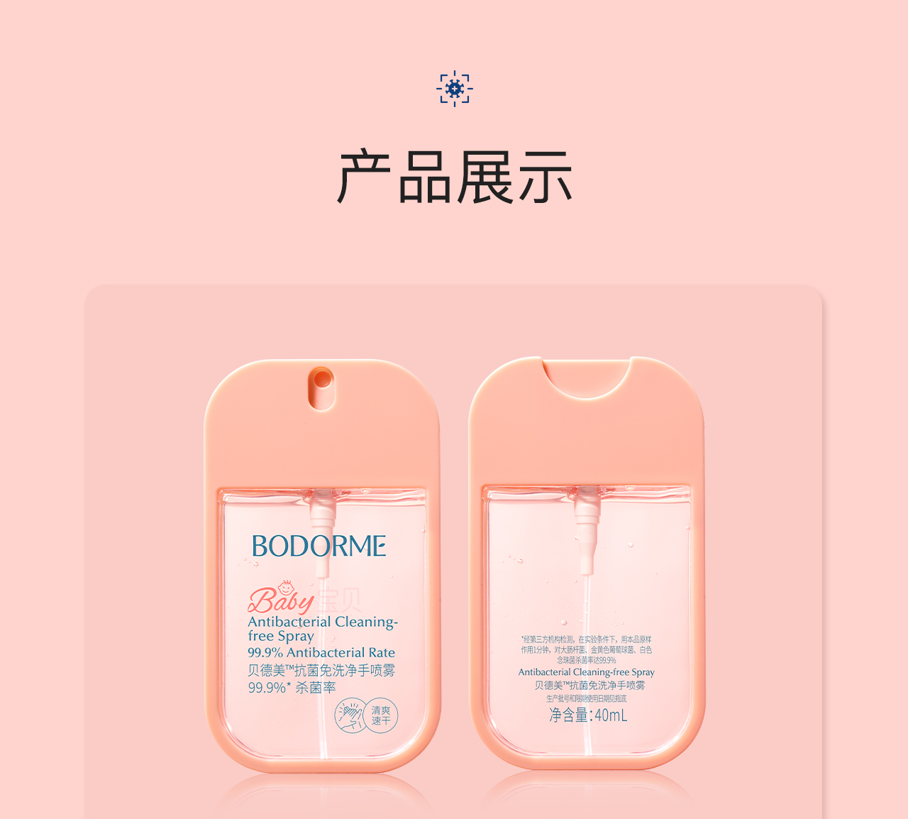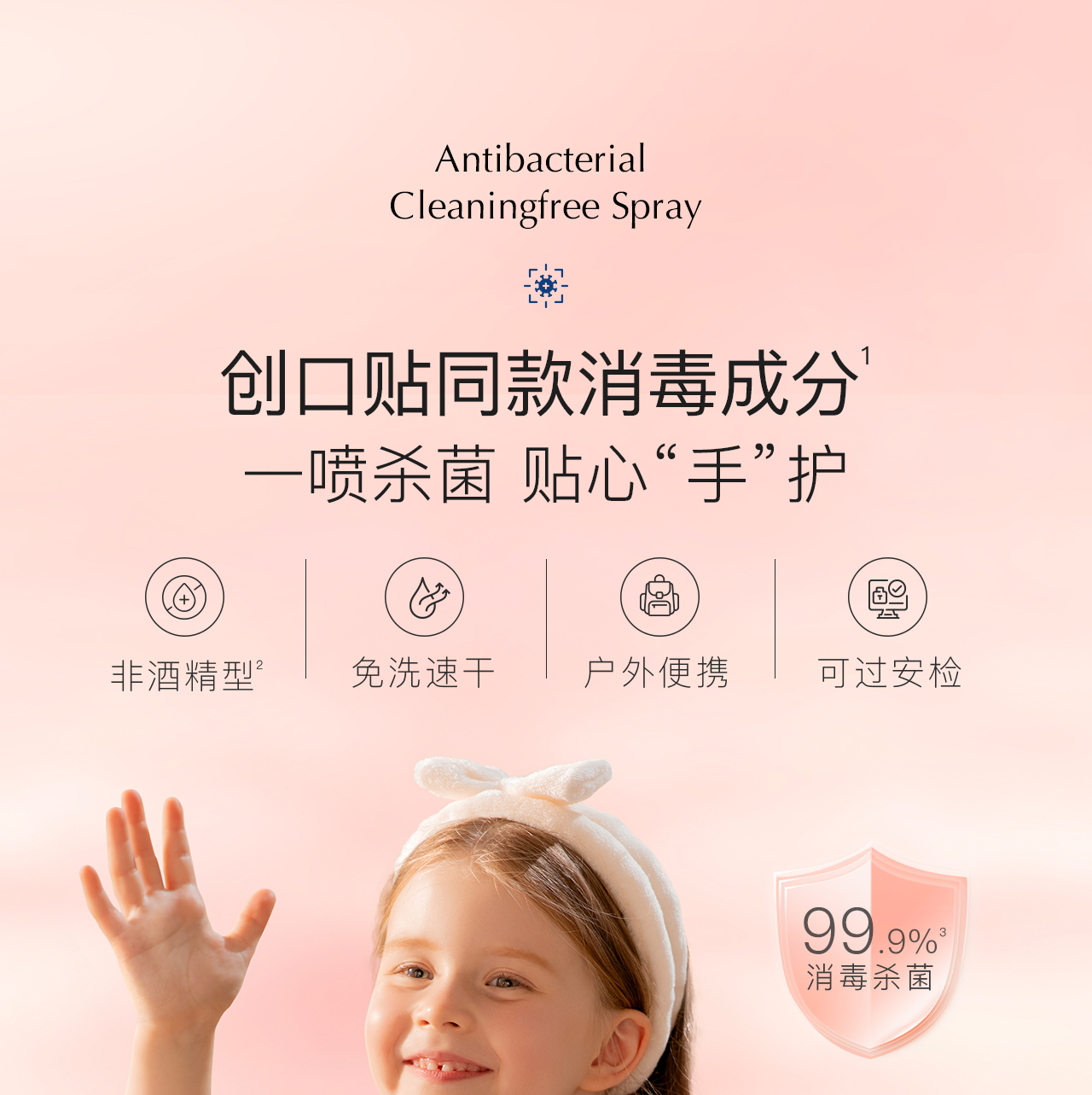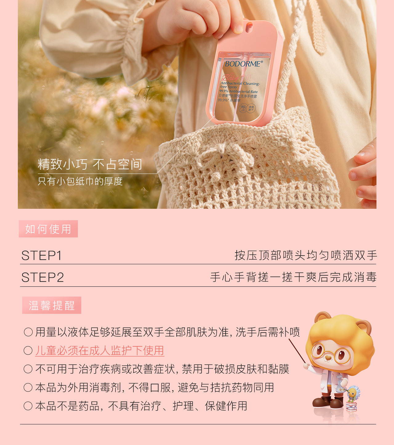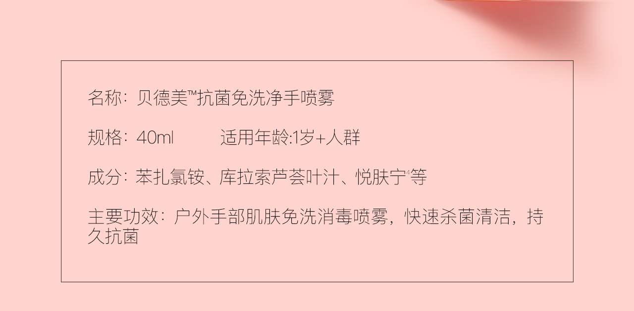 【云优选】贝德美儿童免洗手液户外出行便携式抗菌洗手喷雾婴幼儿专用洗手液