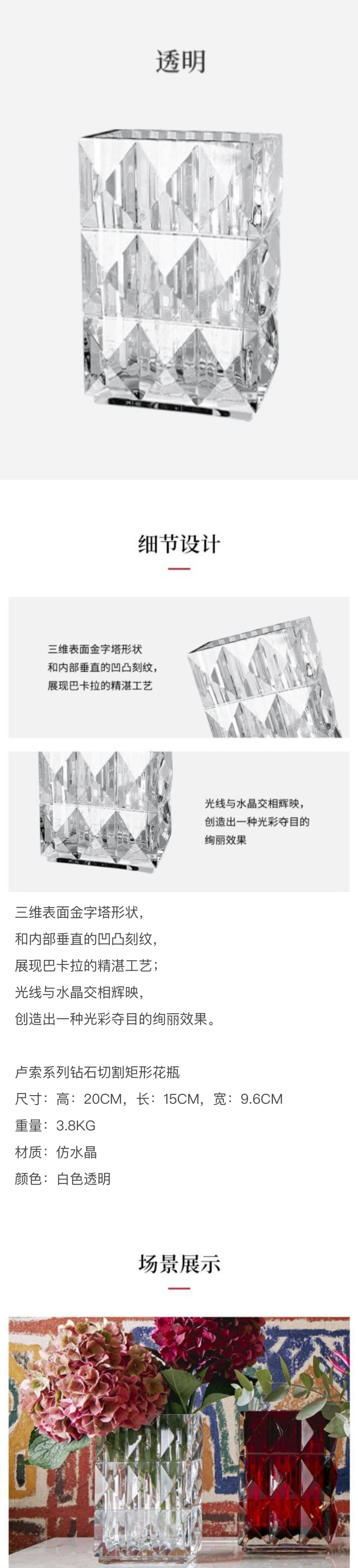 方形玻璃花瓶 1个(仅花瓶)