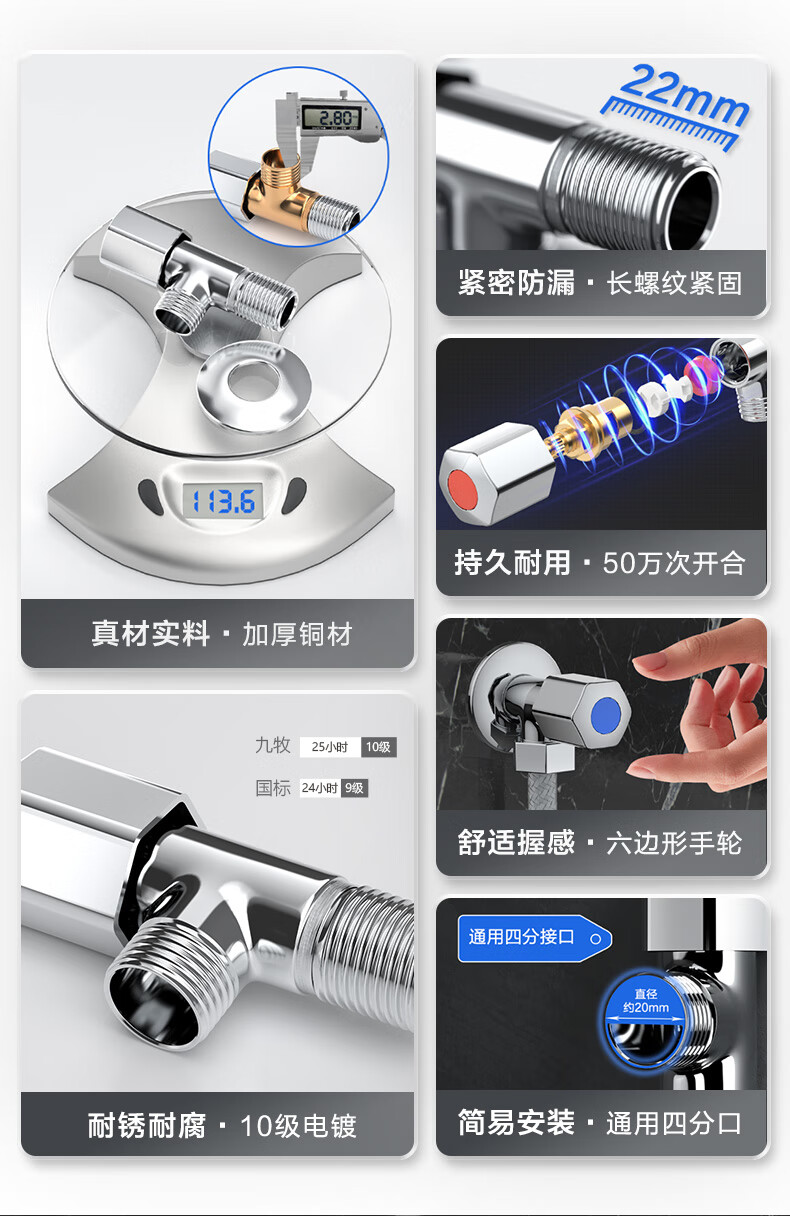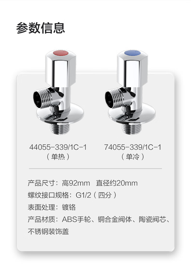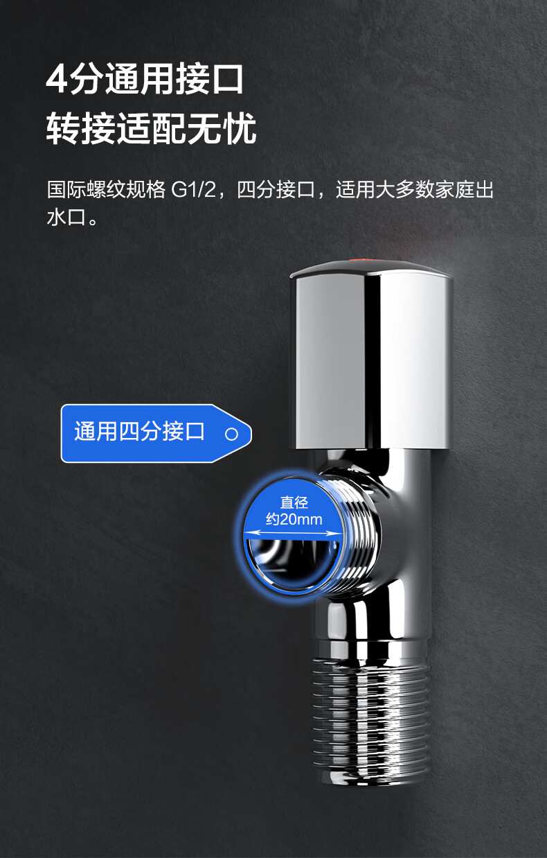 九牧(JOMOO)角阀加厚防爆黄铜三角阀4分 冷热水通用止水阀八字阀 单热44055-339/1C-1